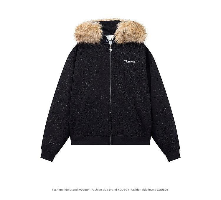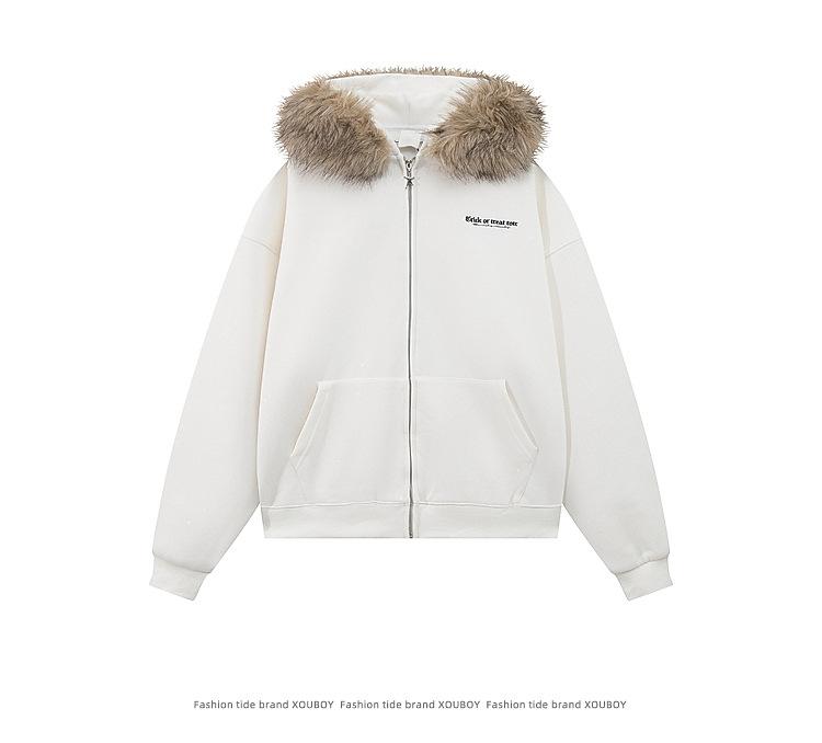 Suéter Gipsófila Retro Americano con Cuello de Suéter y Suéter para Hombre y Mujer con Chaqueta con Capucha Gruesa Holgada para Pareja con Forro Polar de Invierno
