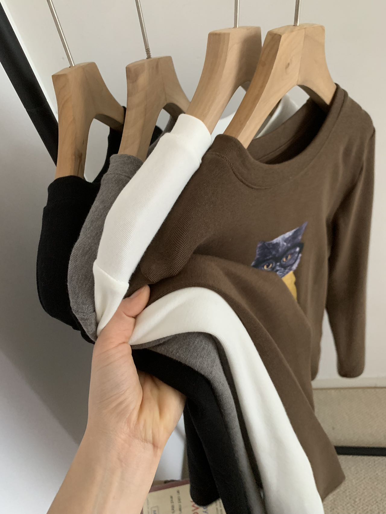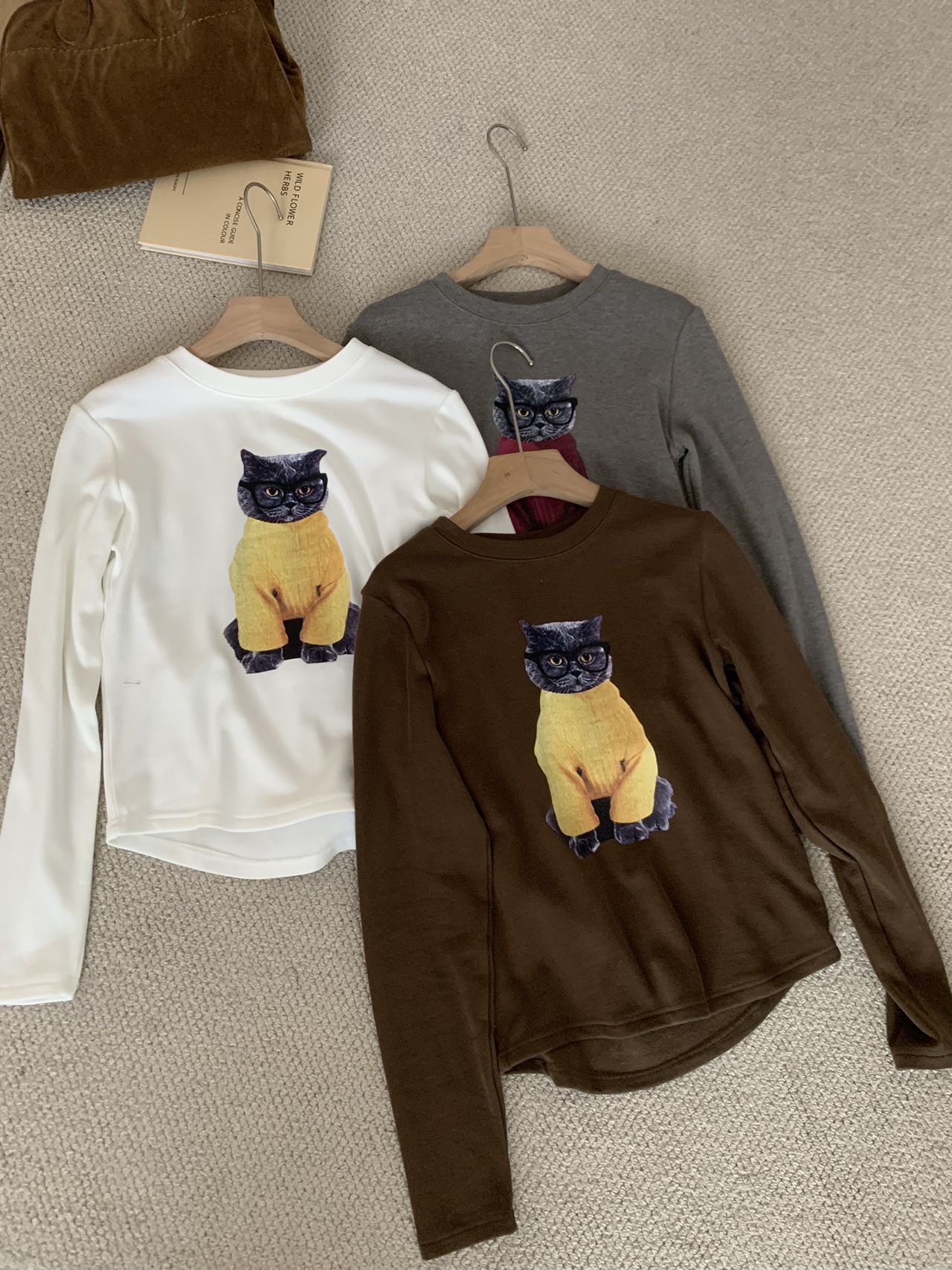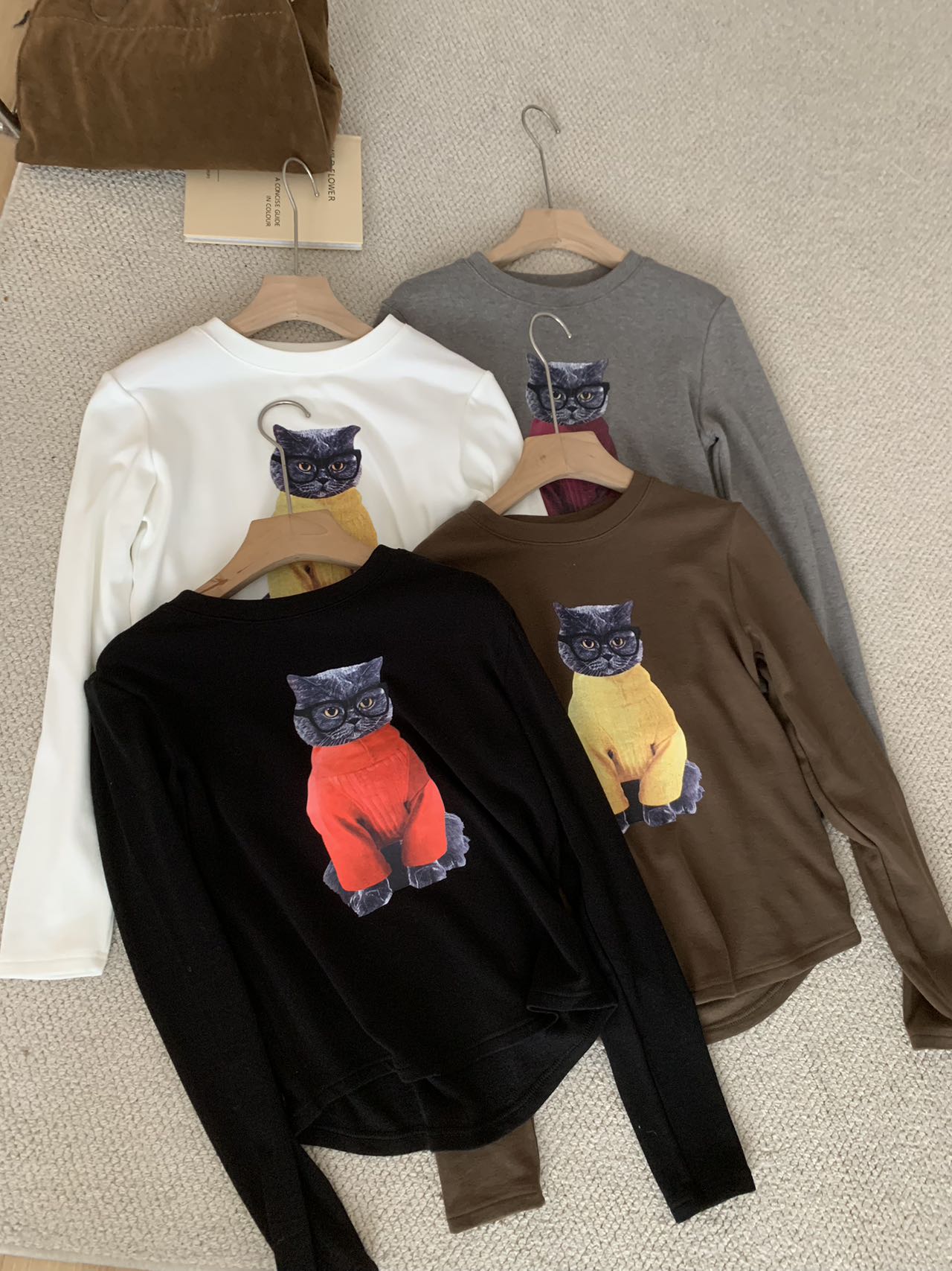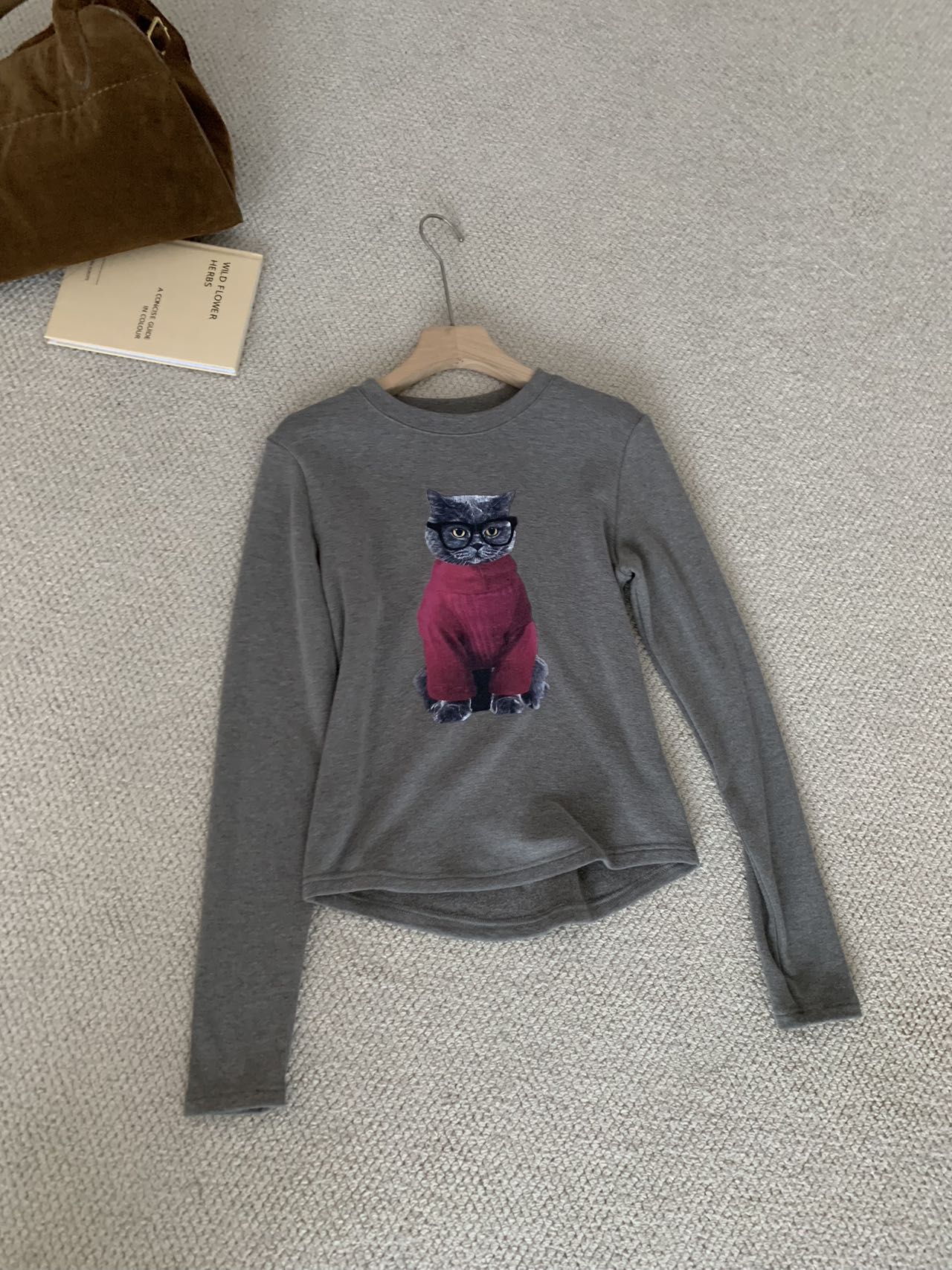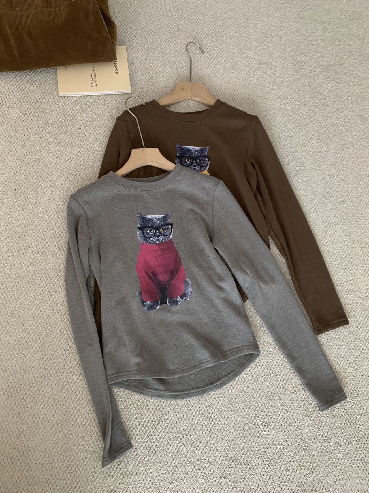 2025 Nuevo Invierno Estilo Coreano Cuello Redondo Terciopelo de Gato Manga Larga Camiseta Base Cálida Interior para Mujer