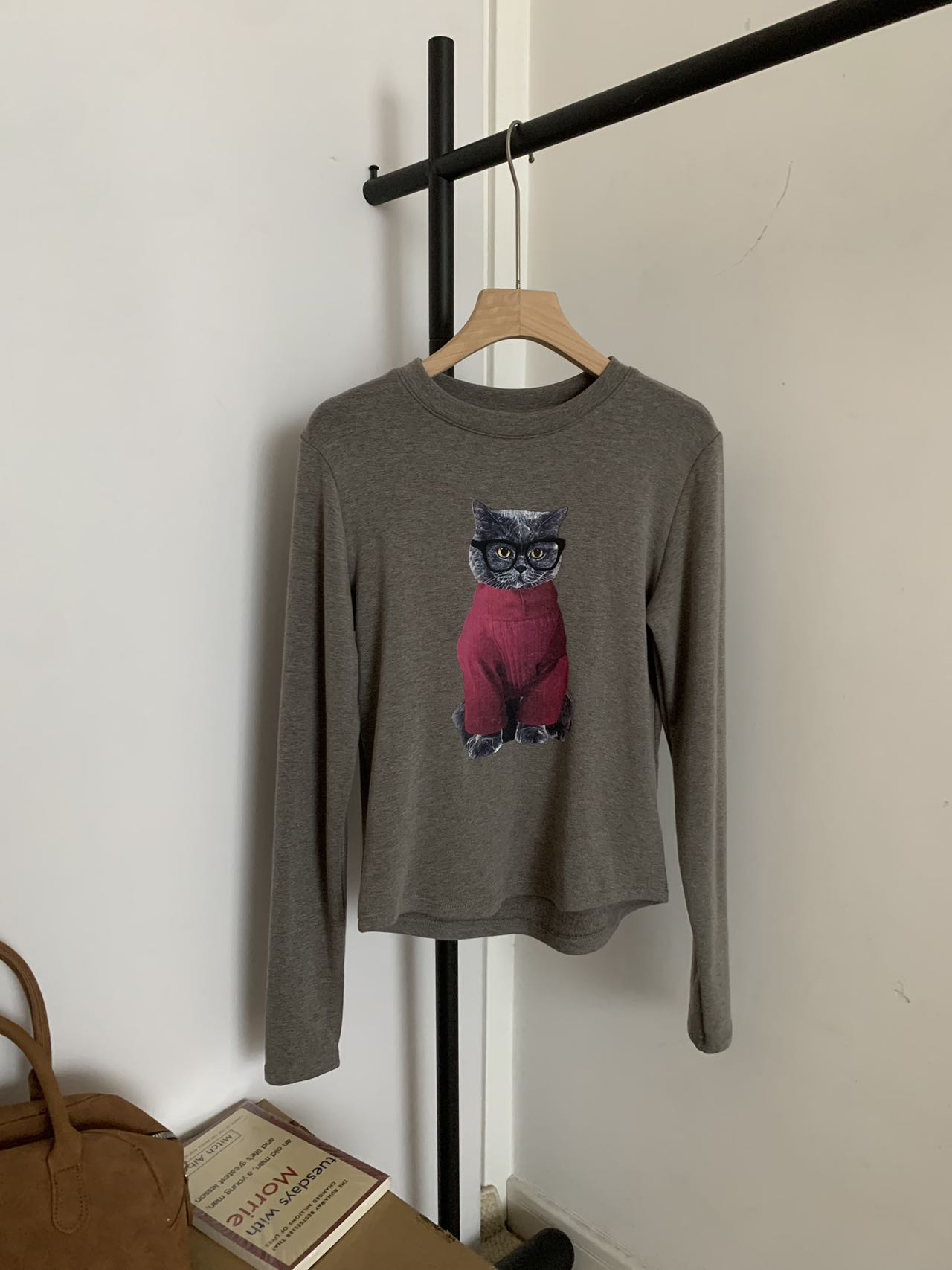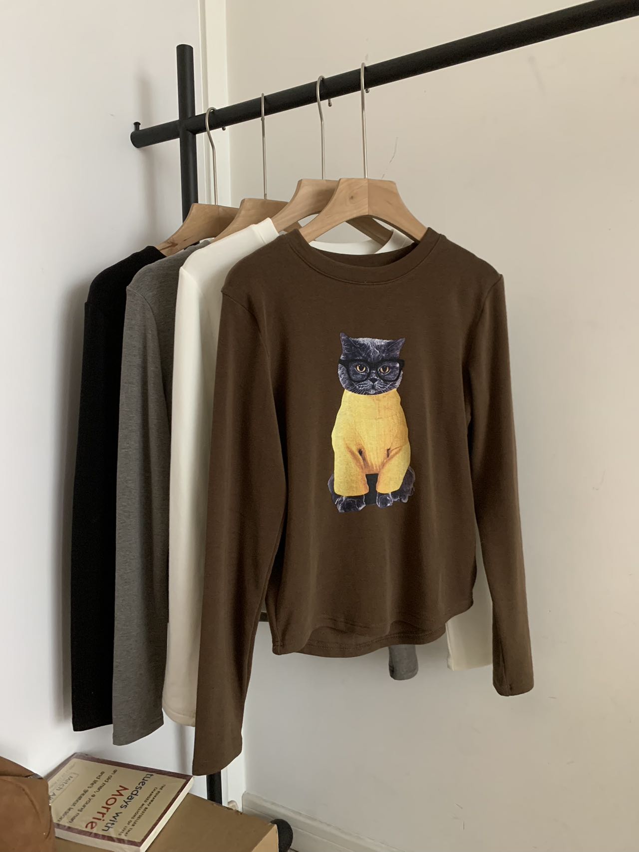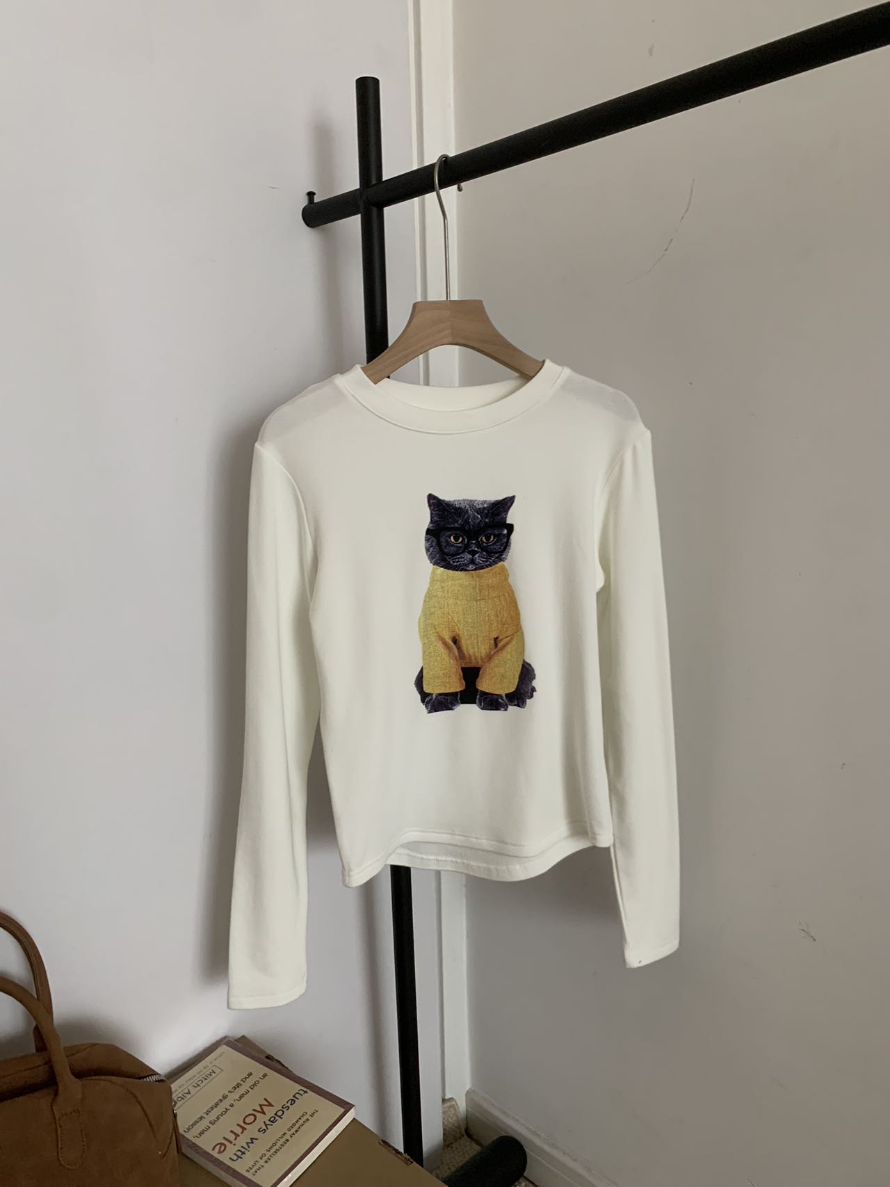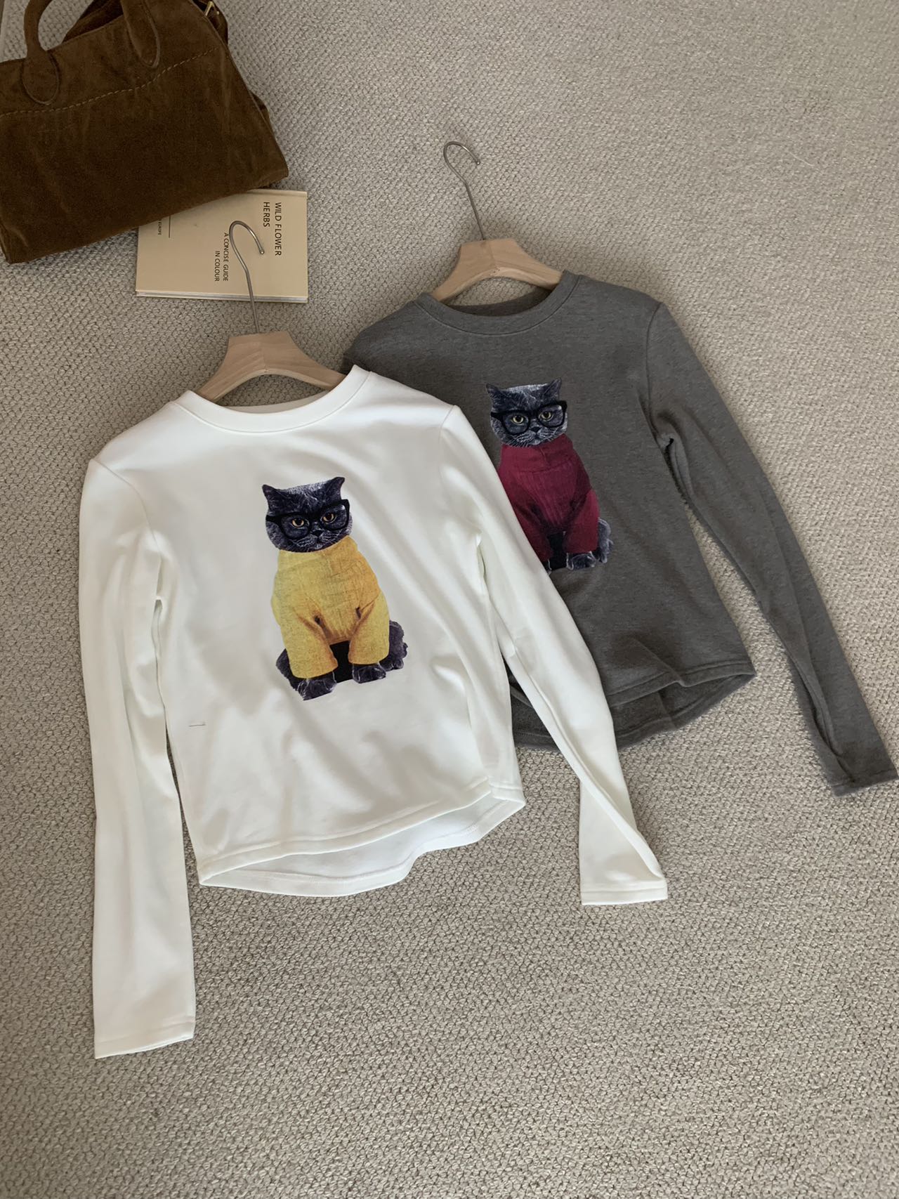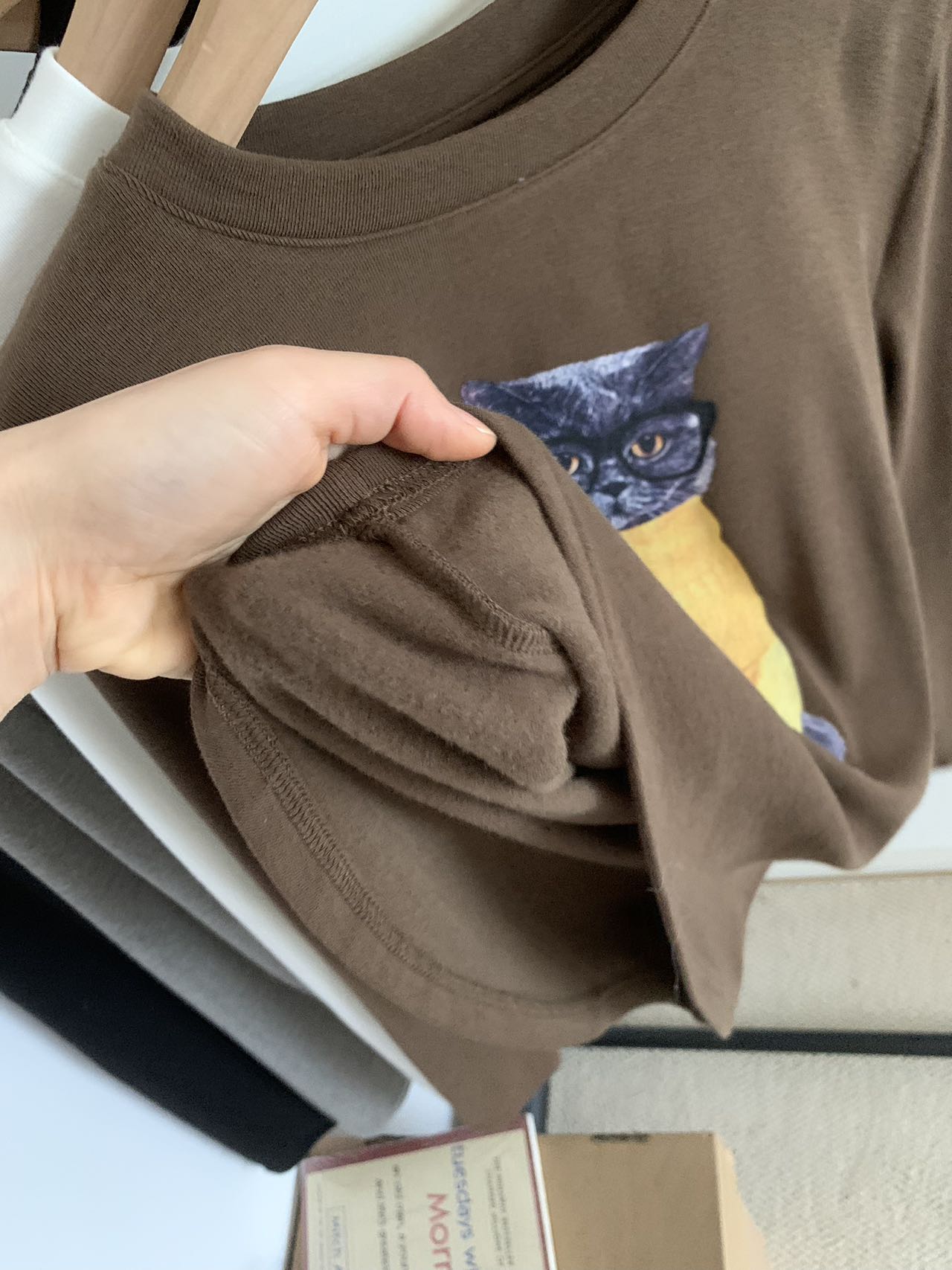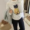 2025 Nuevo Invierno Estilo Coreano Cuello Redondo Terciopelo de Gato Manga Larga Camiseta Base Cálida Interior para Mujer