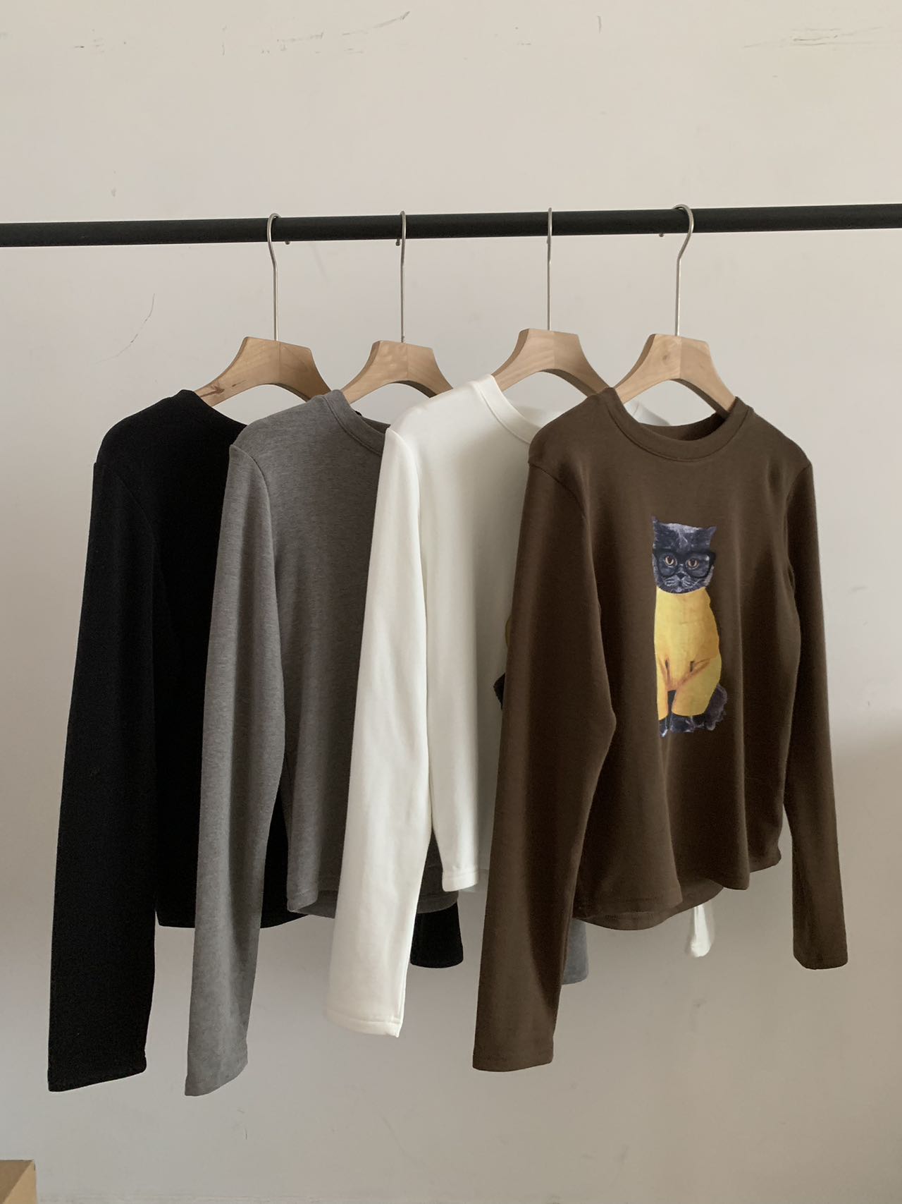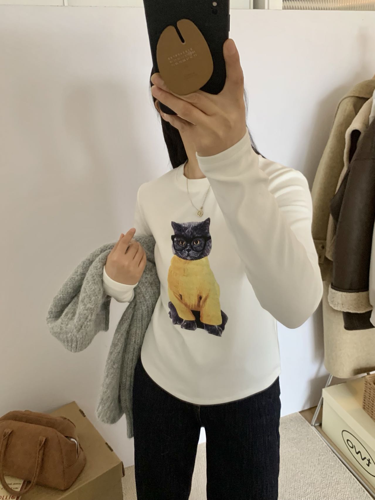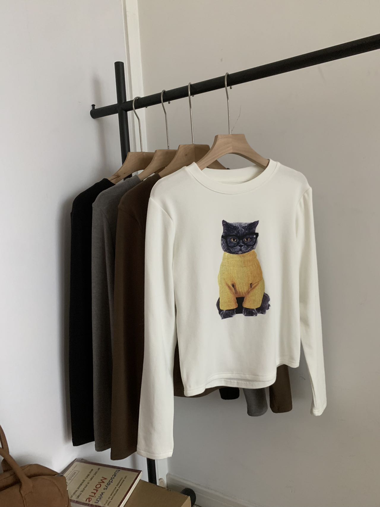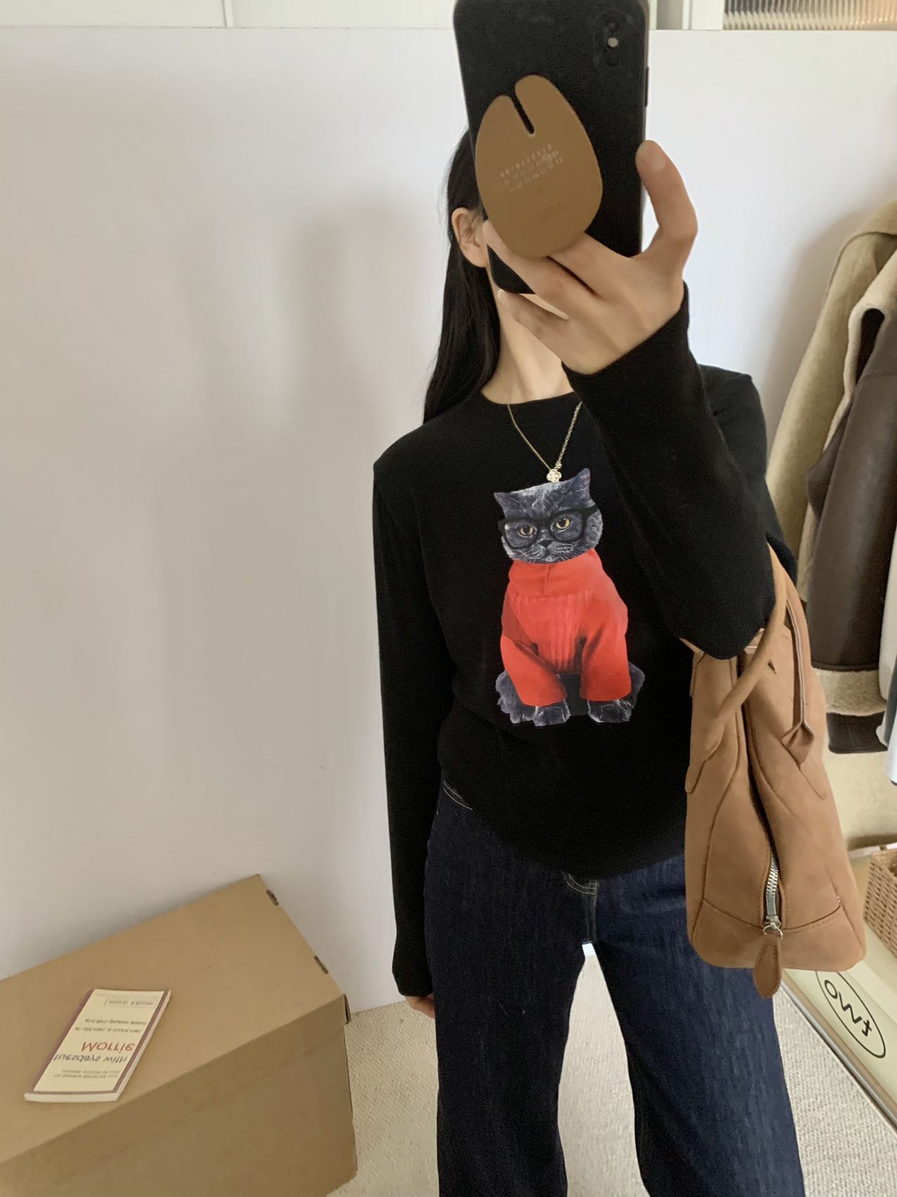 2025 Nuevo Invierno Estilo Coreano Cuello Redondo Terciopelo de Gato Manga Larga Camiseta Base Cálida Interior para Mujer