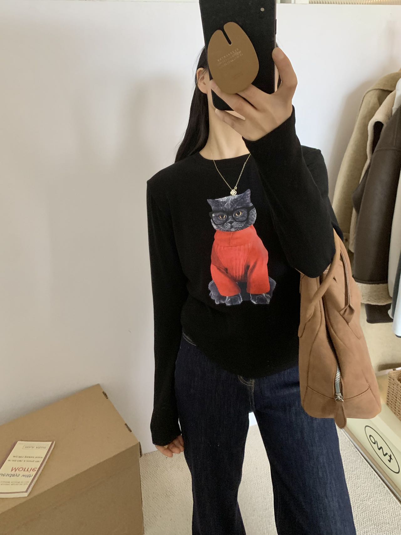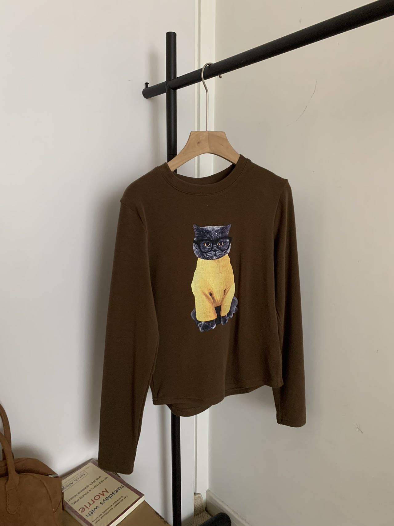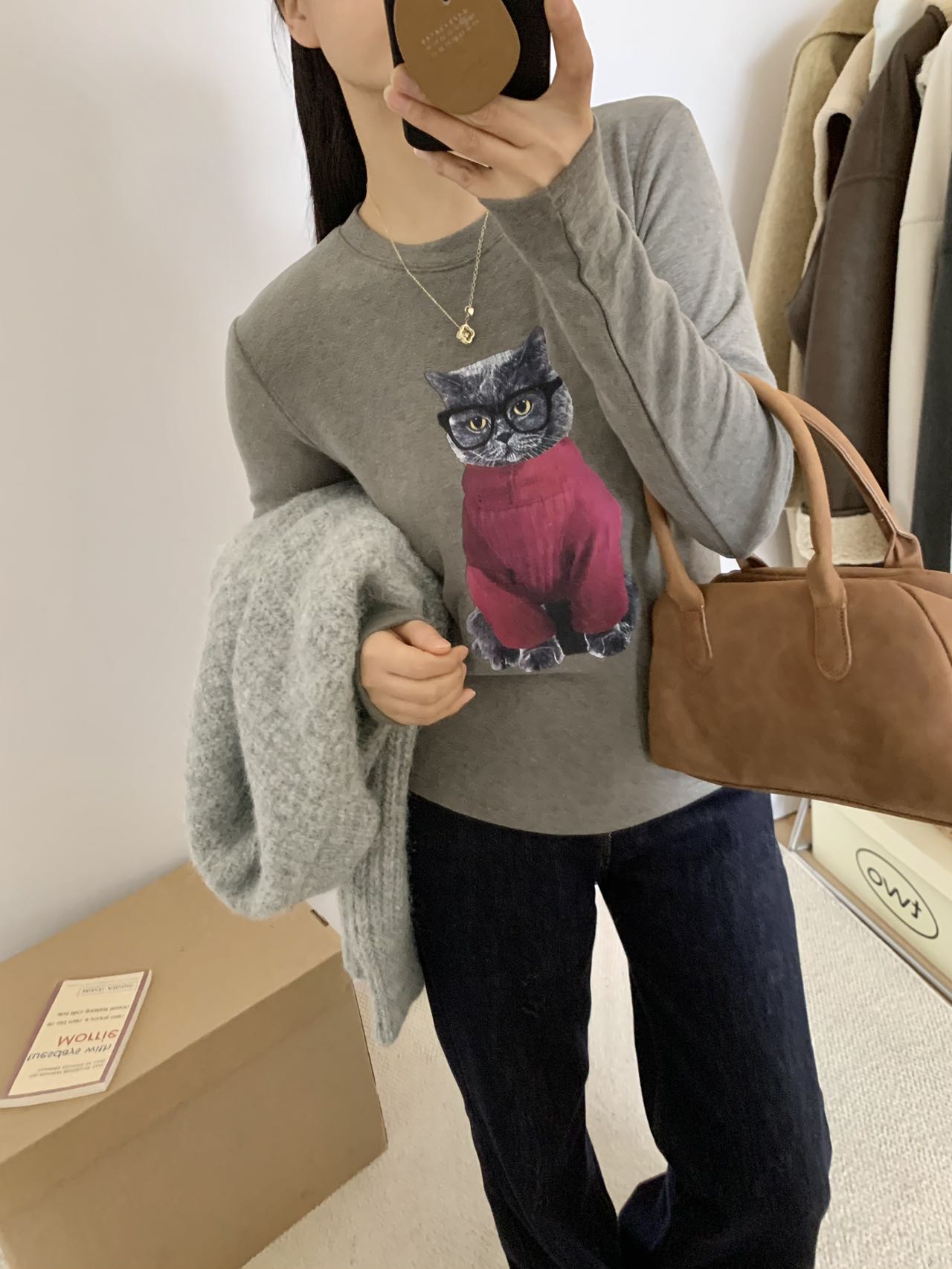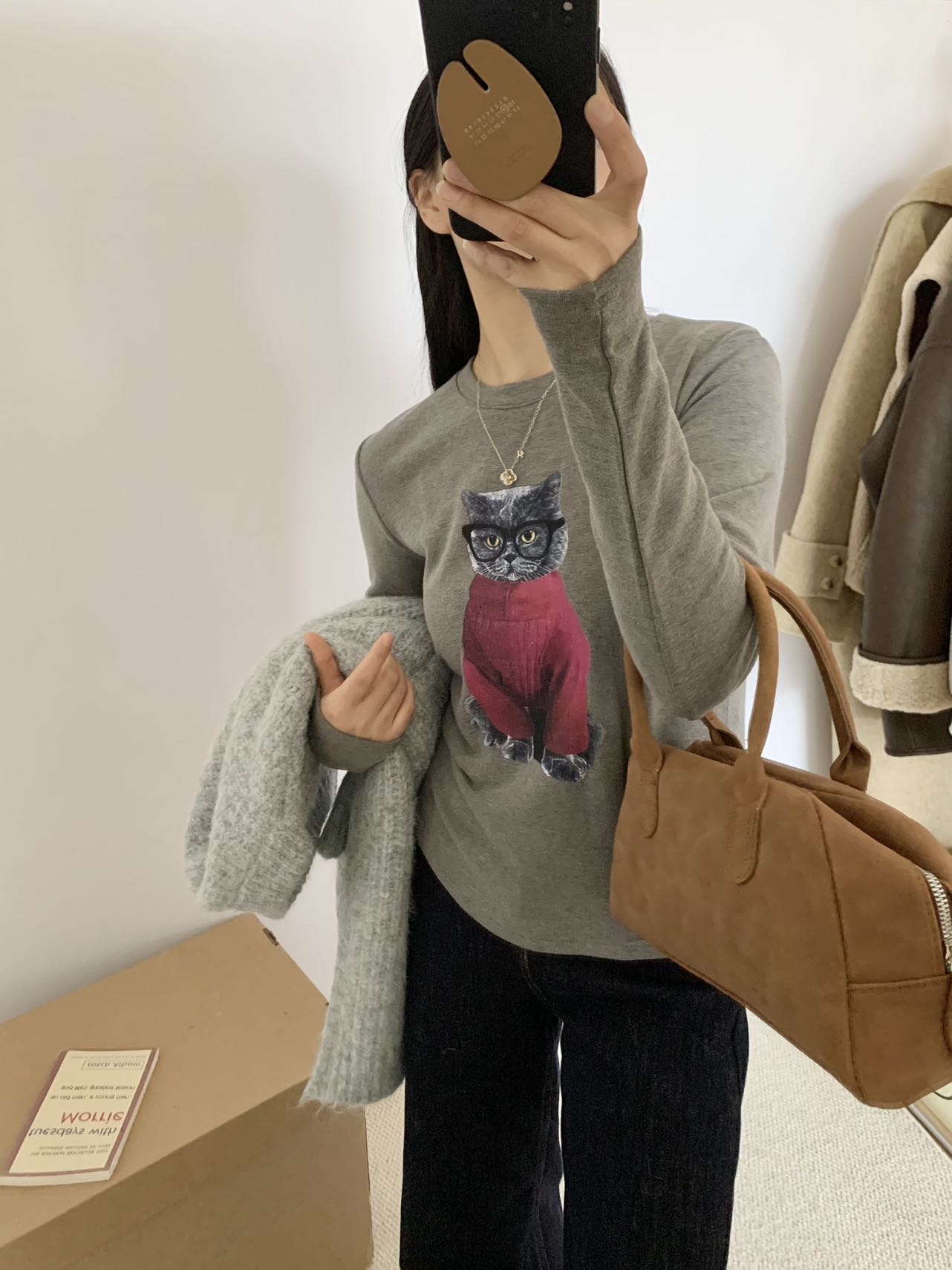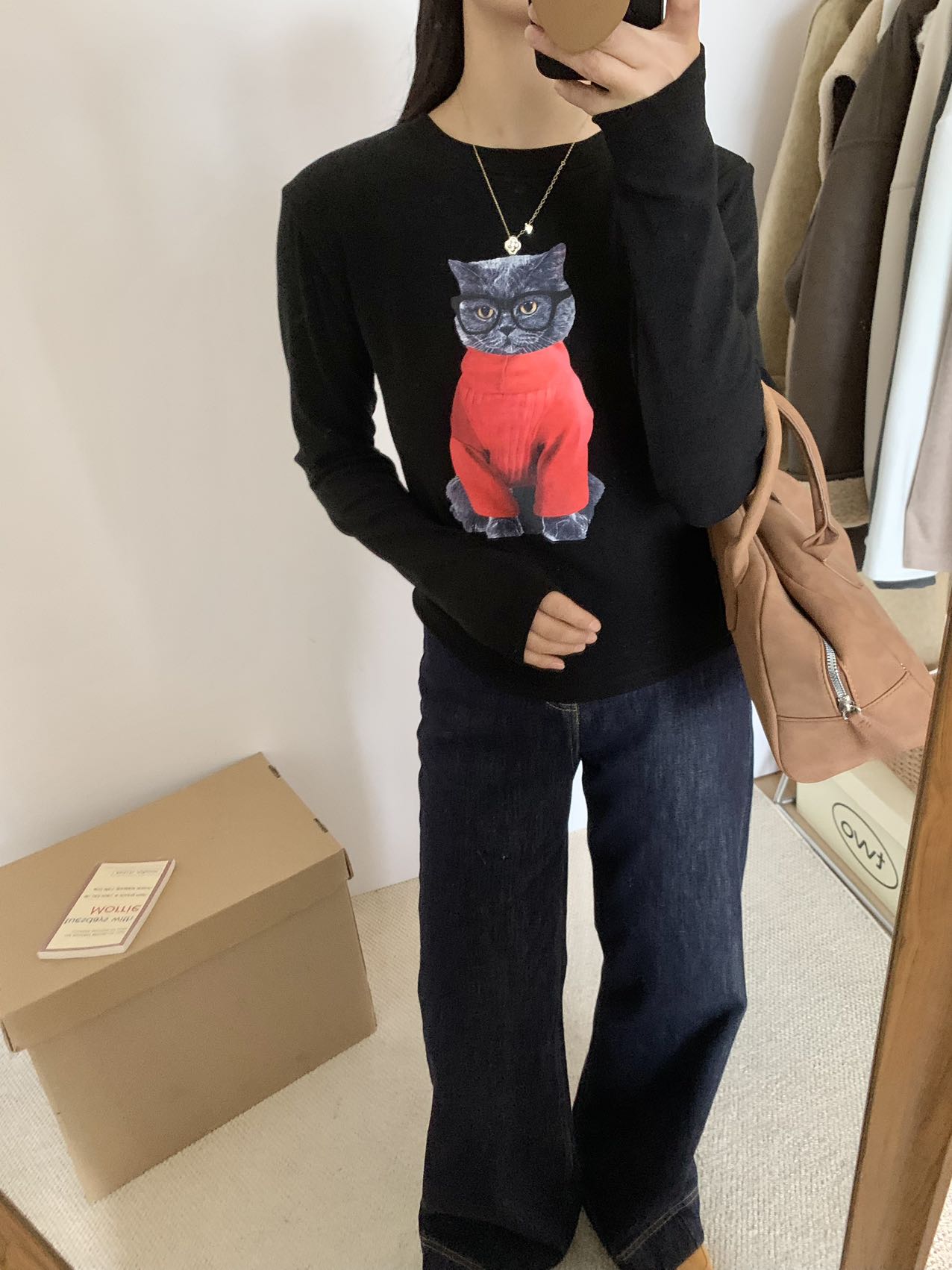2025 Nuevo Invierno Estilo Coreano Cuello Redondo Terciopelo de Gato Manga Larga Camiseta Base Cálida Interior para Mujer