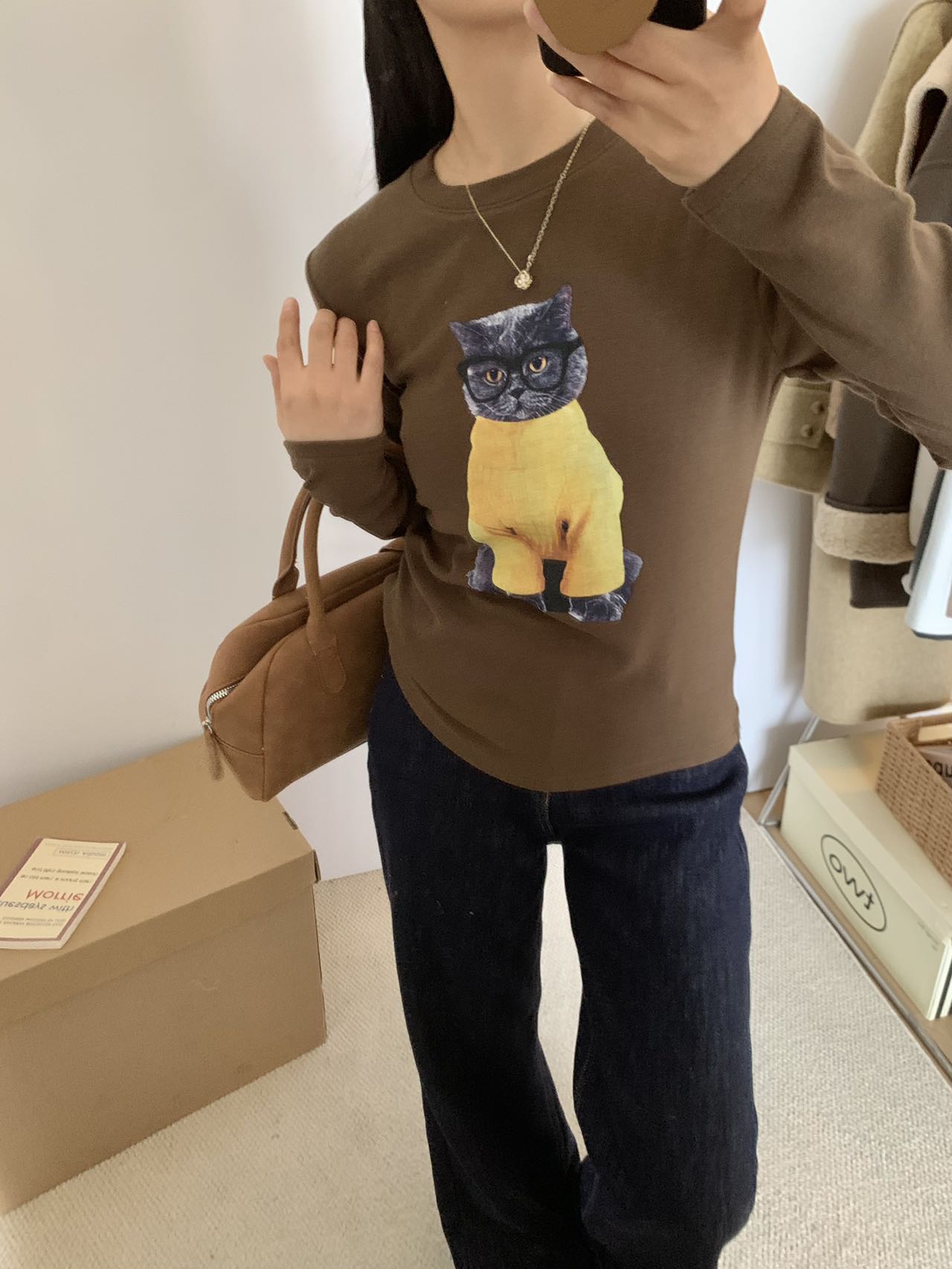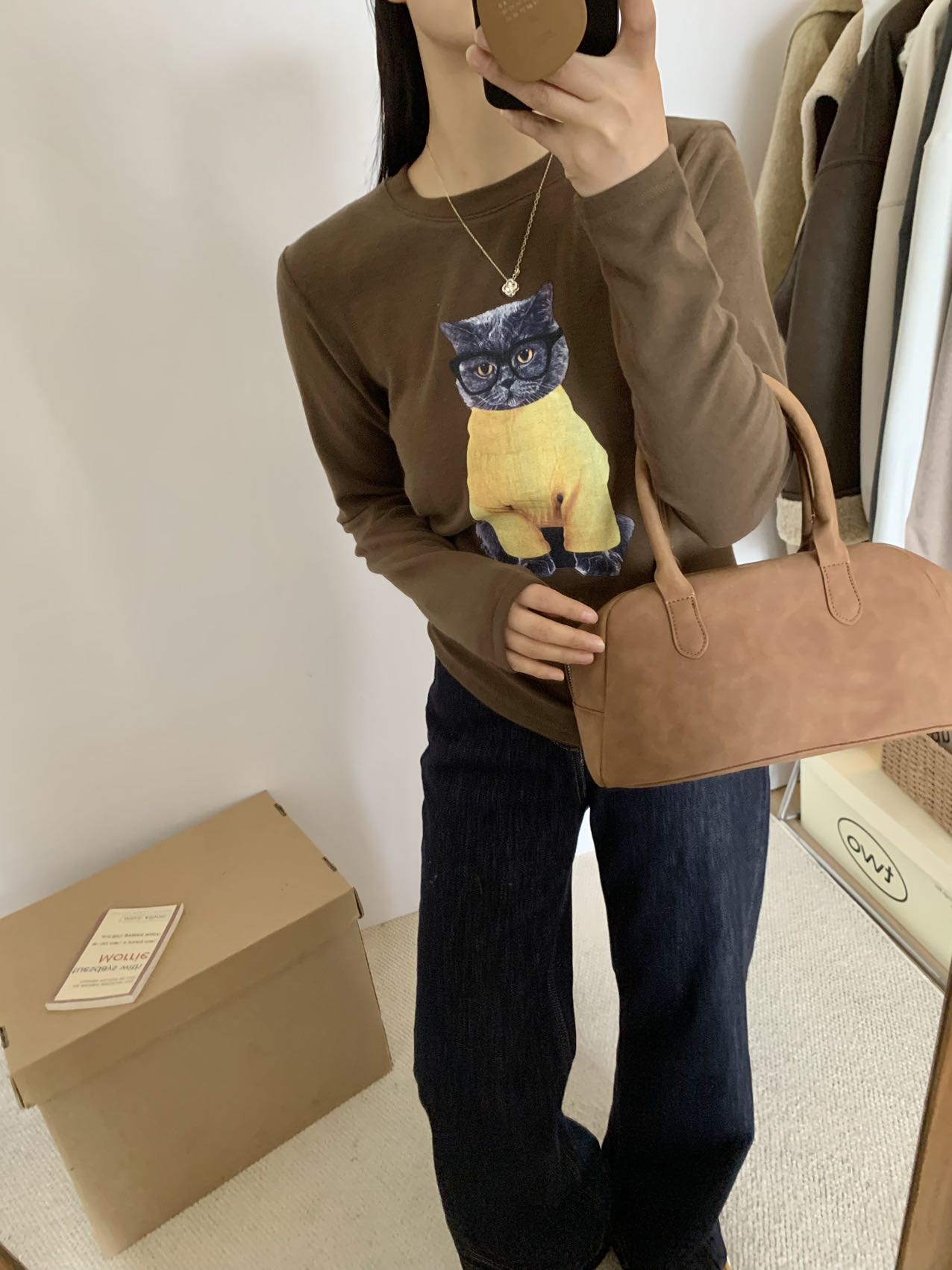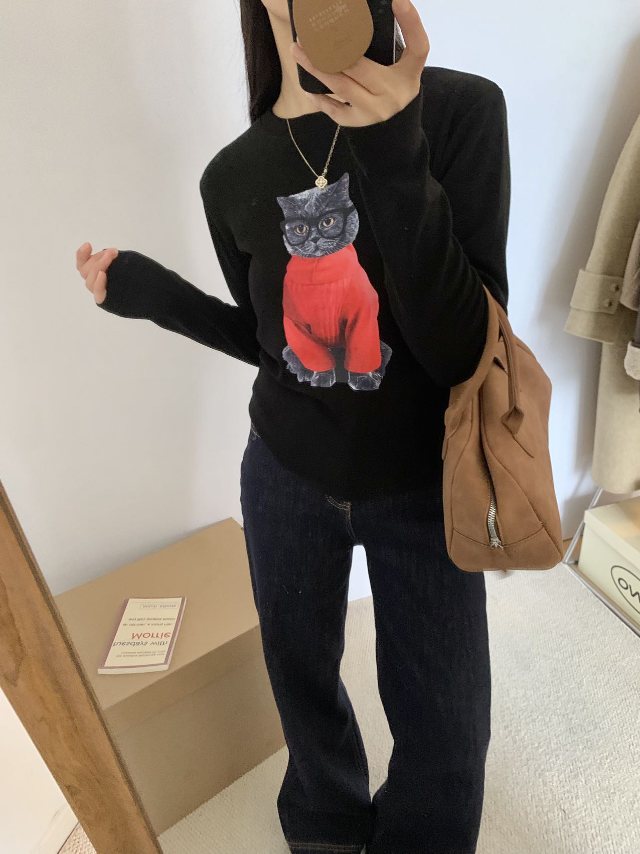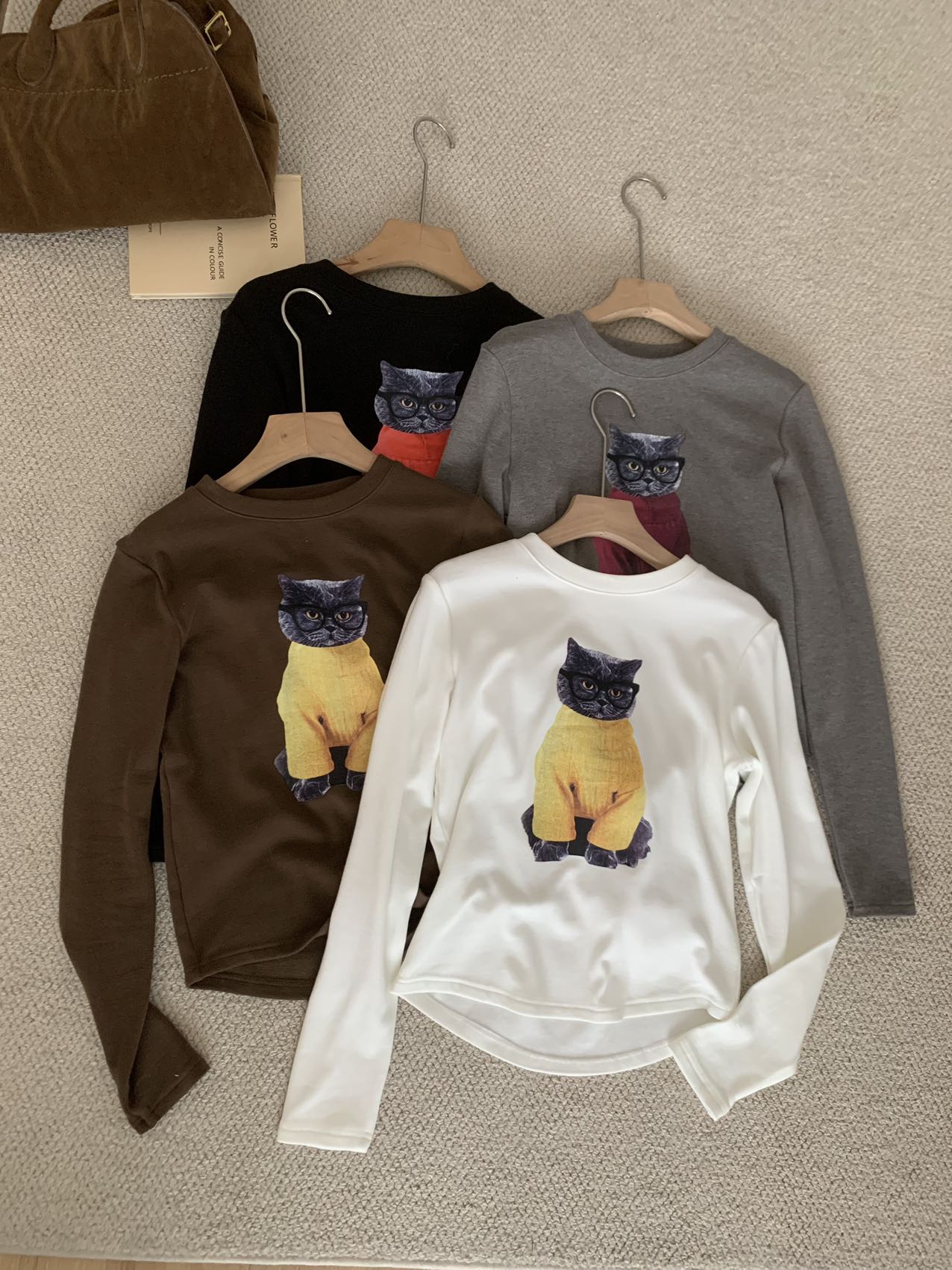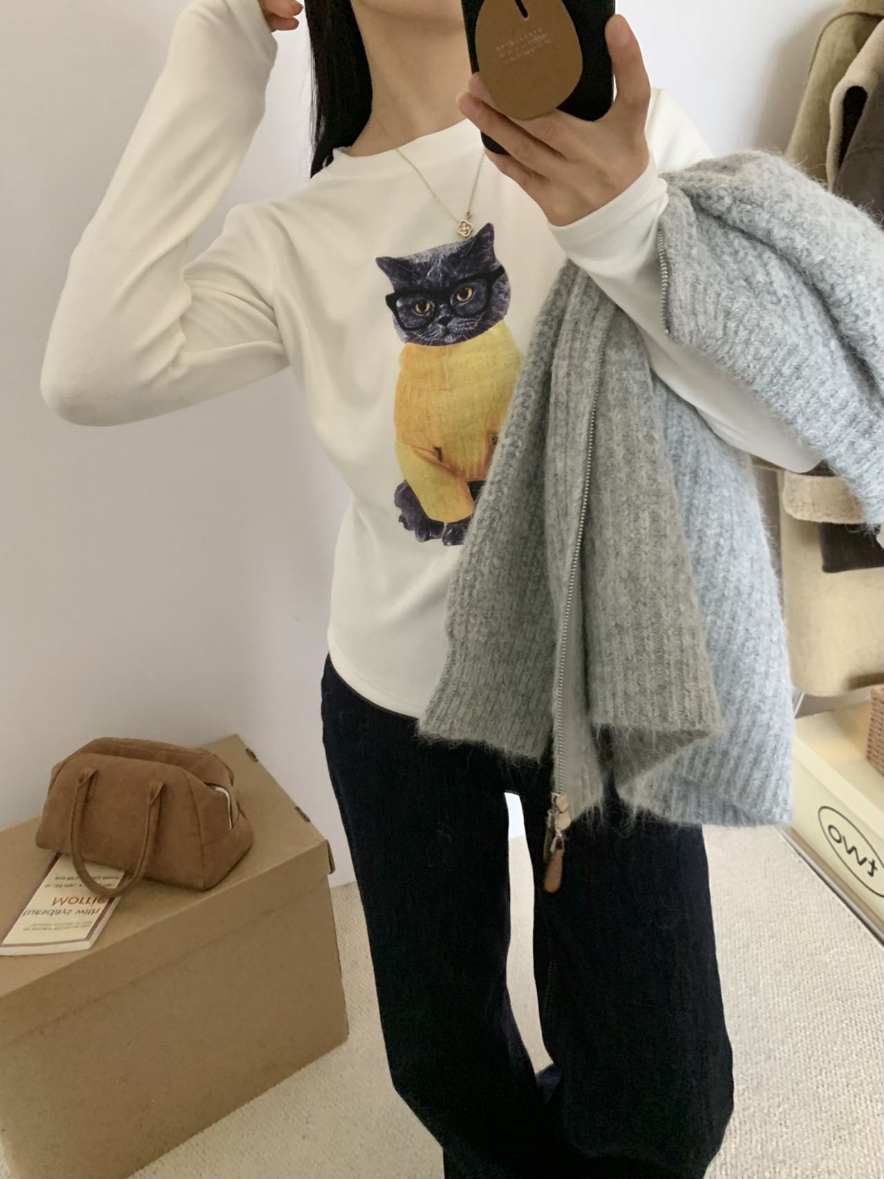 2025 Nuevo Invierno Estilo Coreano Cuello Redondo Terciopelo de Gato Manga Larga Camiseta Base Cálida Interior para Mujer