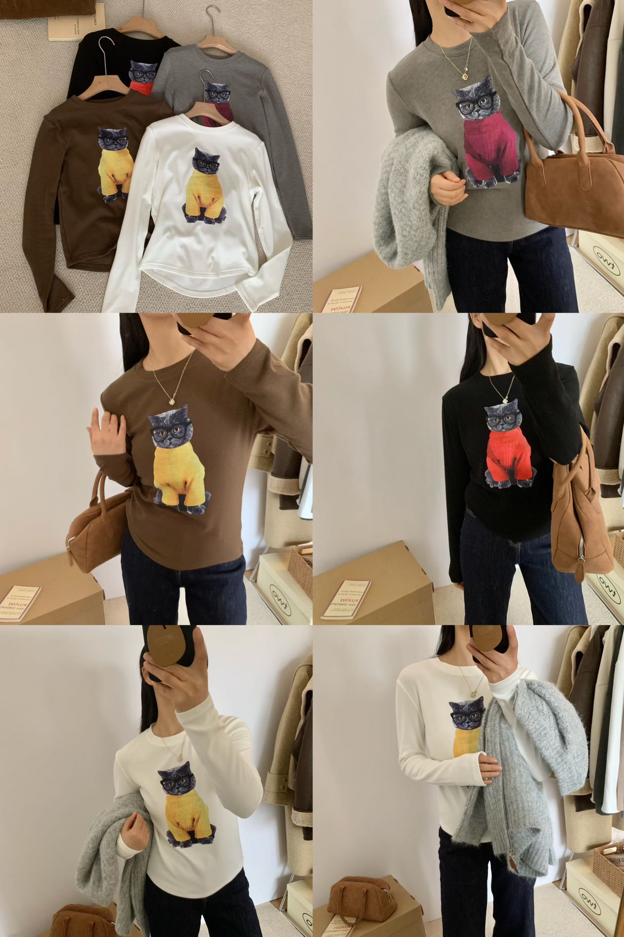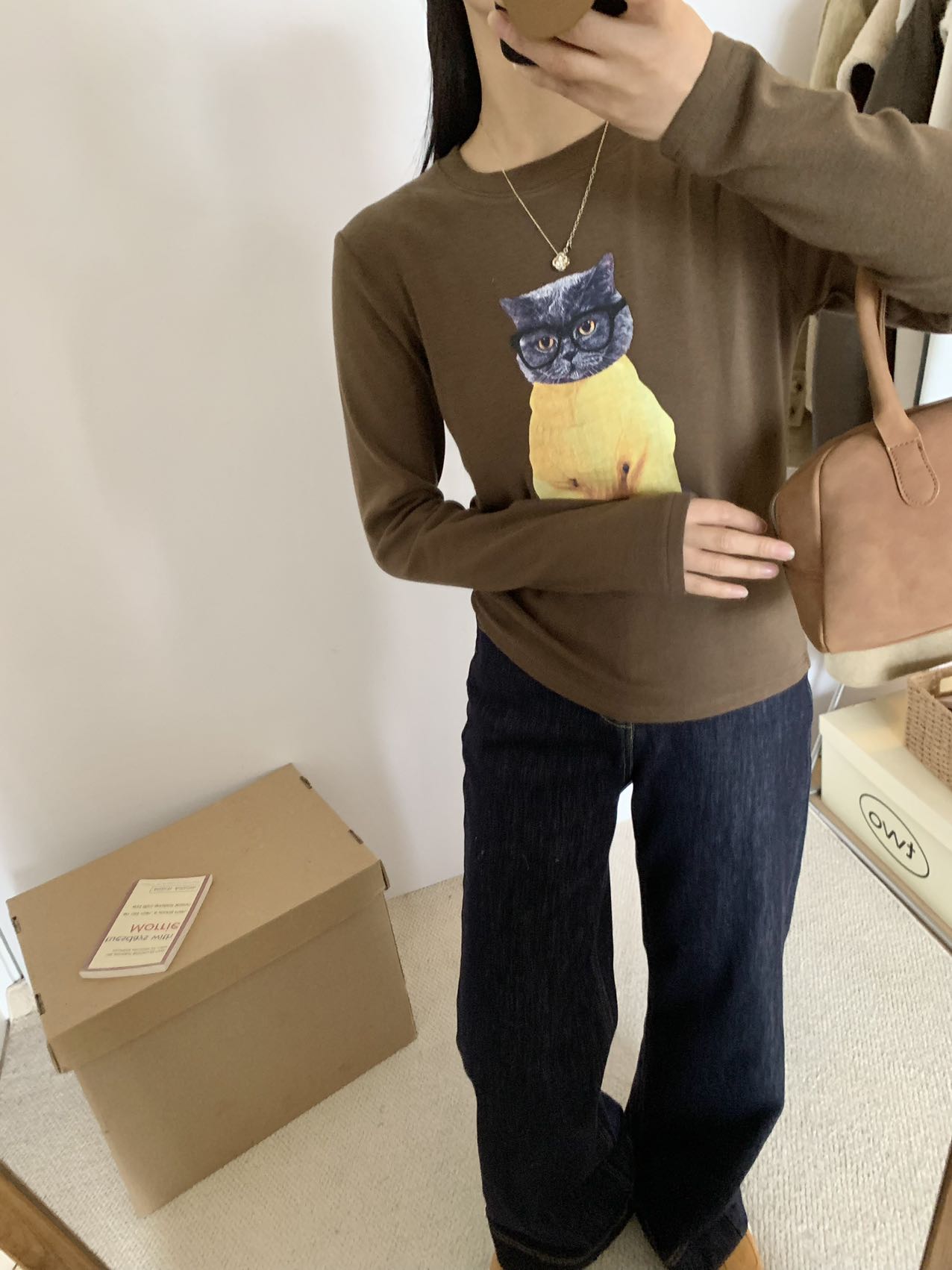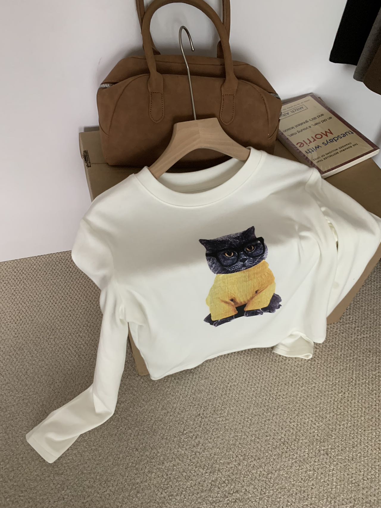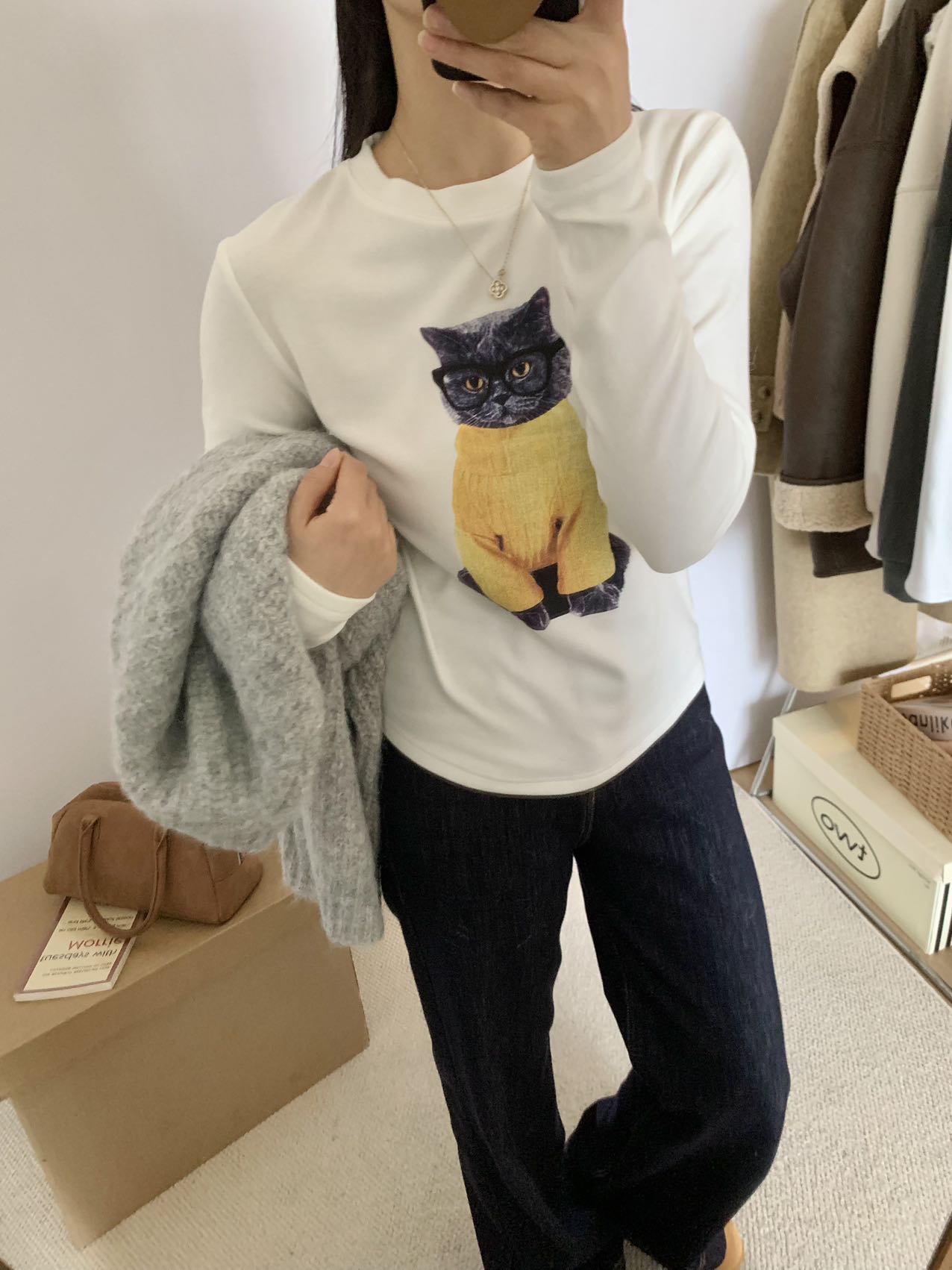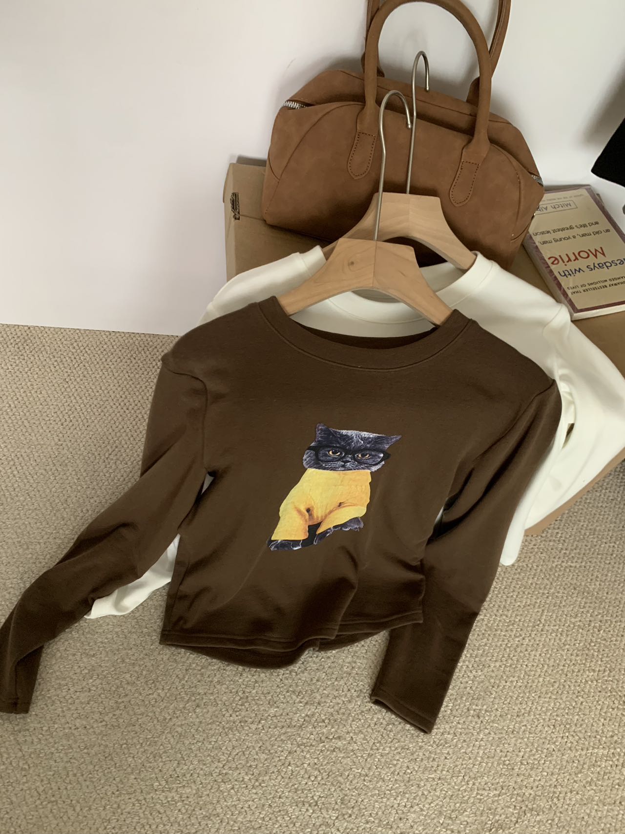 2025 Nuevo Invierno Estilo Coreano Cuello Redondo Terciopelo de Gato Manga Larga Camiseta Base Cálida Interior para Mujer