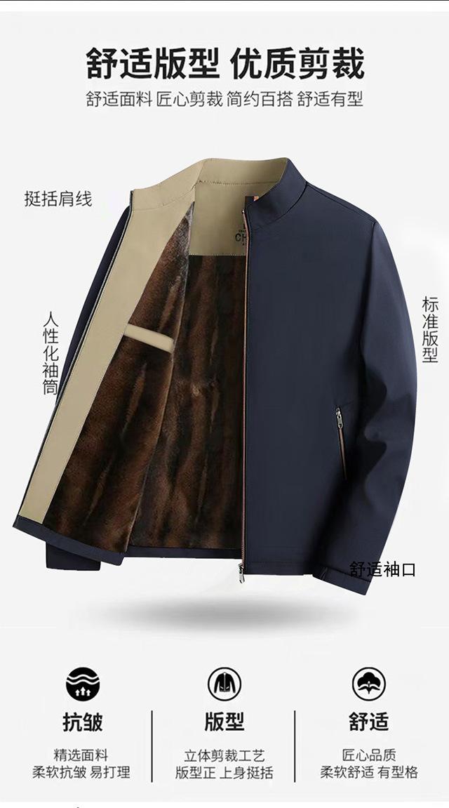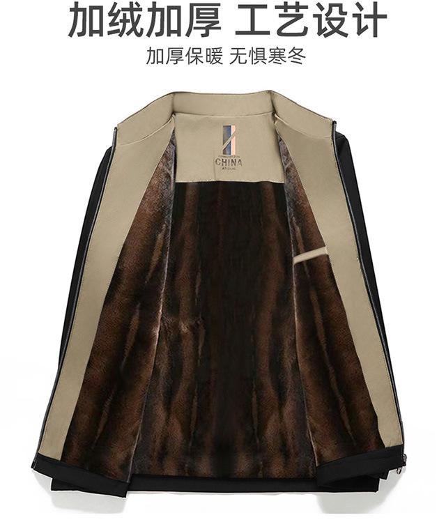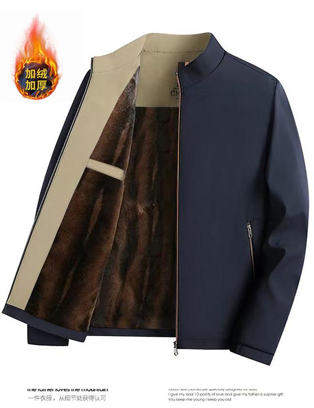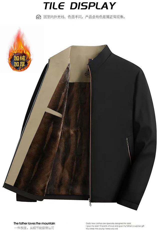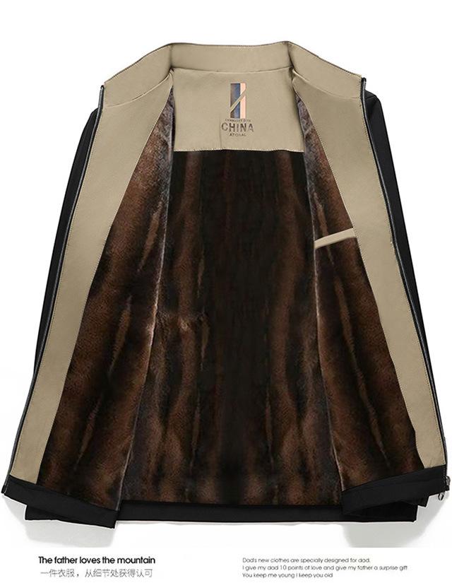 2024 Otoño e Invierno Chaqueta Gruesa con Forro Polar para Hombre de Mediana Edad y Anciano, Holgada, Abrigo de Papá con Cuello, Ropa Casual para Padre
