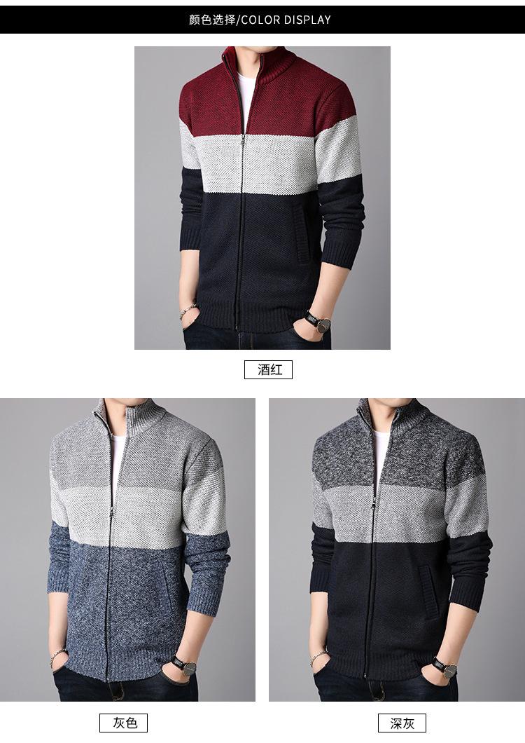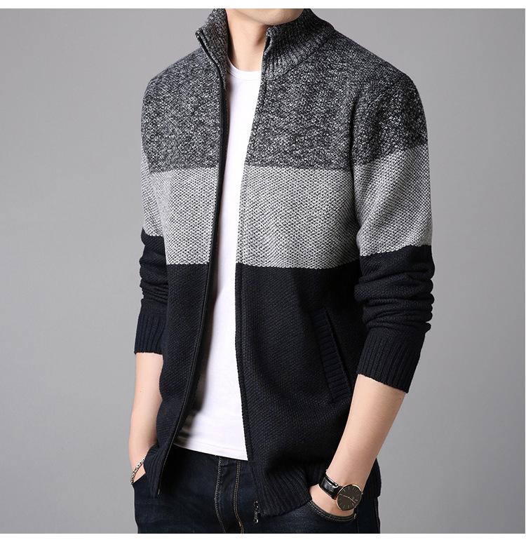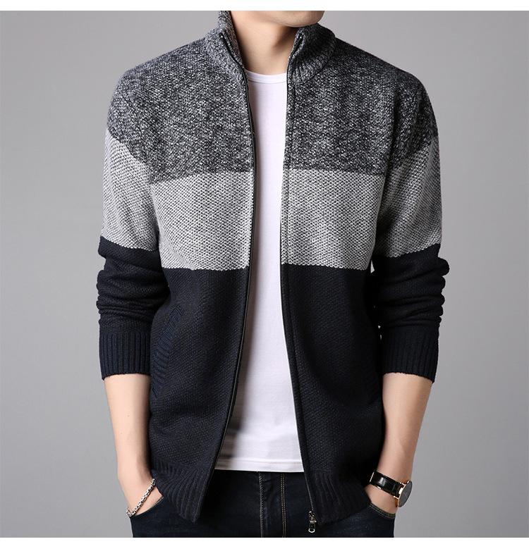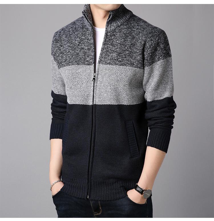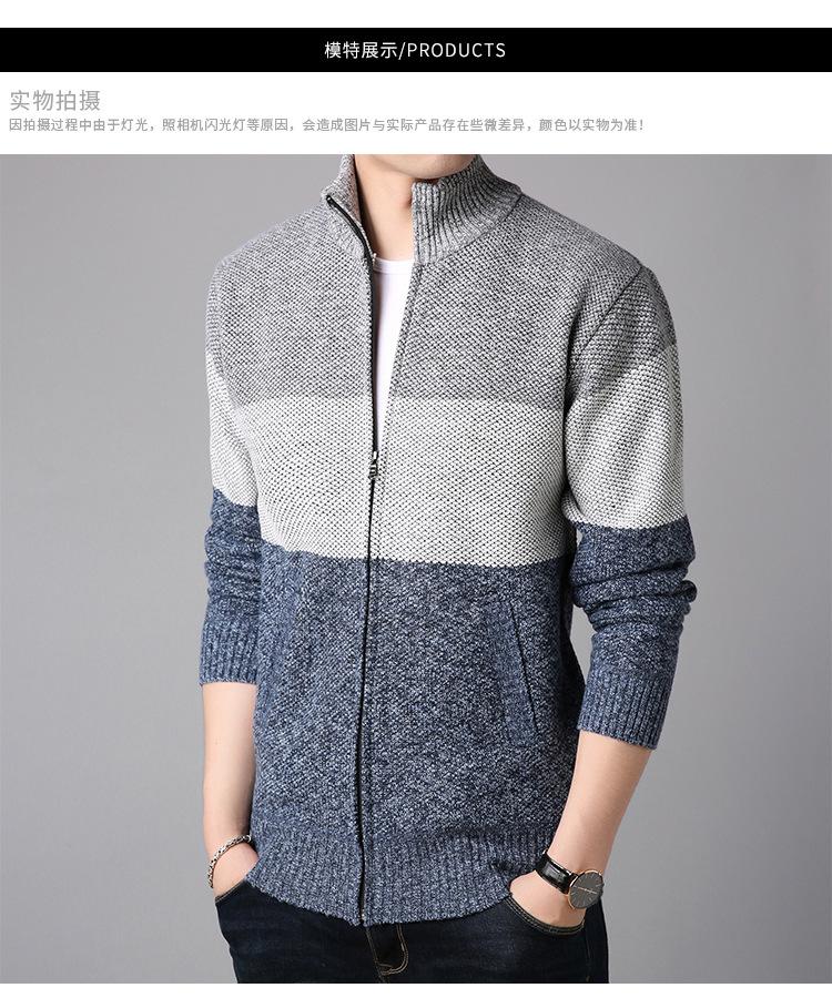 Chaqueta de suéter gruesa de talla grande con forro polar popular de otoño e invierno de comercio exterior, abrigo de hombre, cárdigan de cuello alto, suéter a juego de colores para hombre
