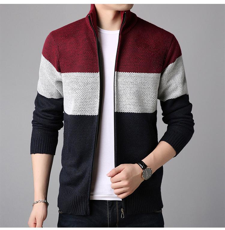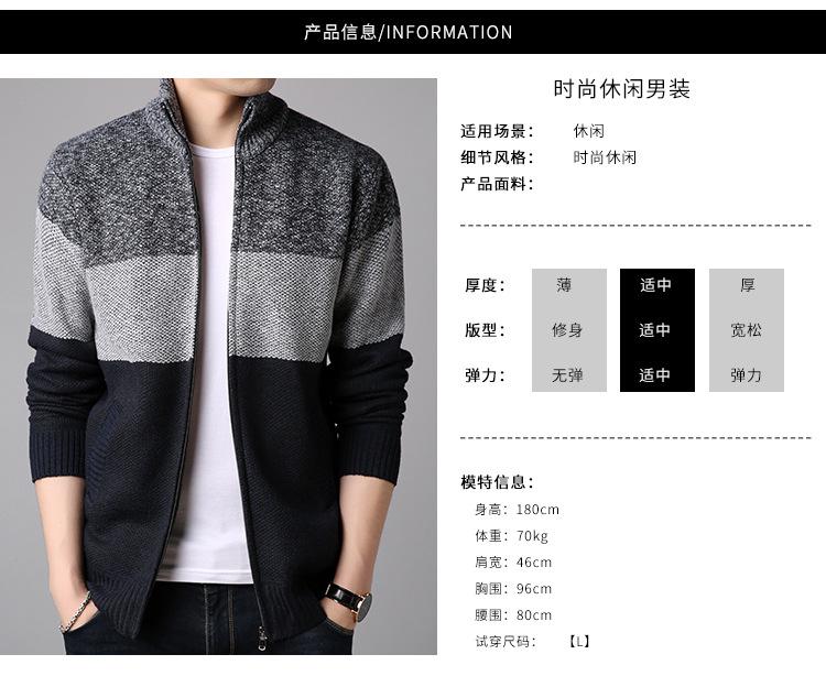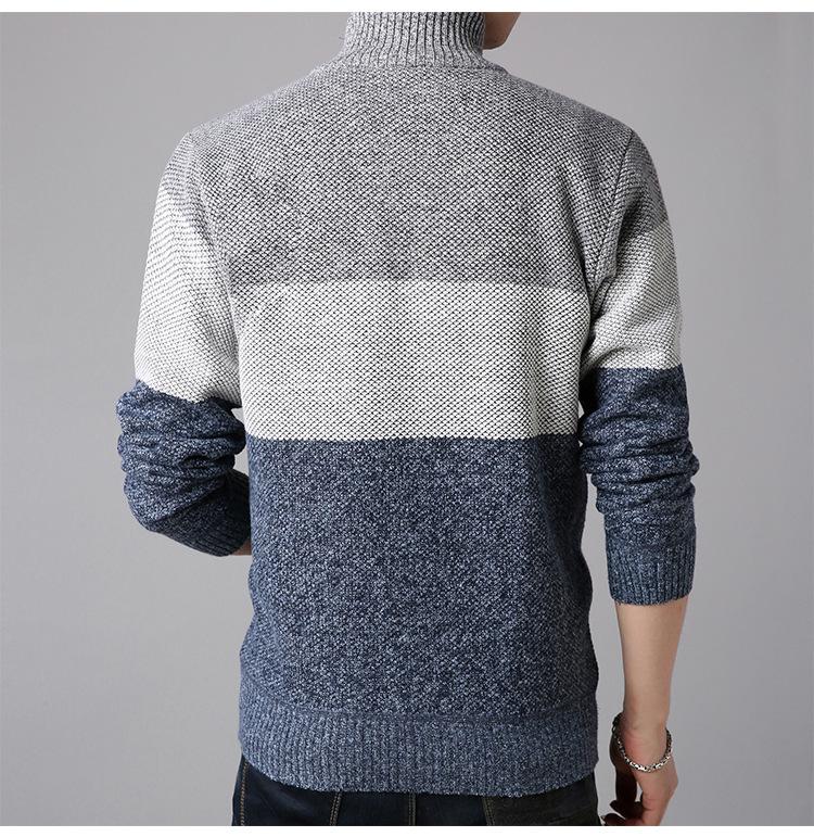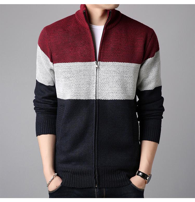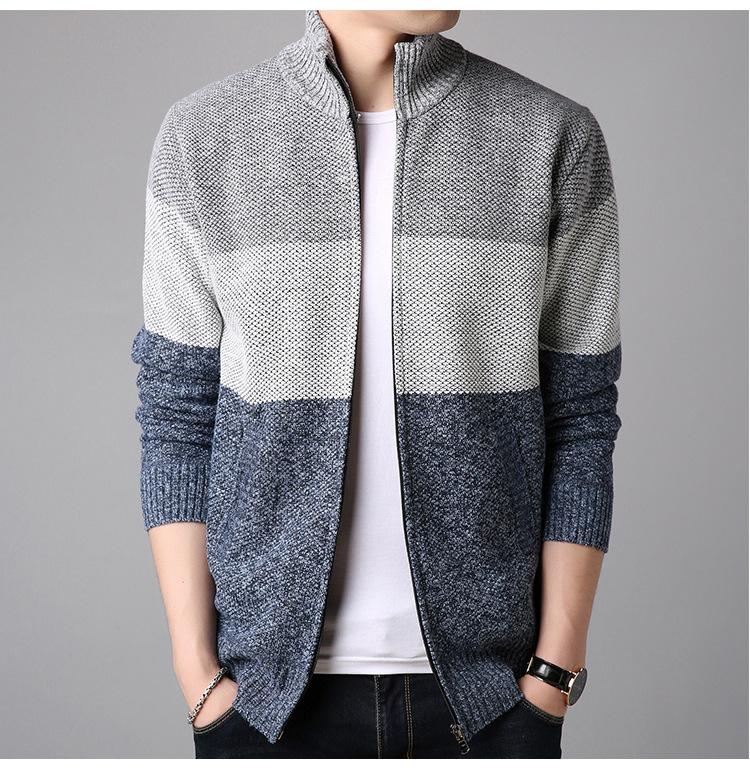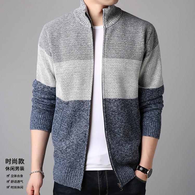 Chaqueta de suéter gruesa de talla grande con forro polar popular de otoño e invierno de comercio exterior, abrigo de hombre, cárdigan de cuello alto, suéter a juego de colores para hombre