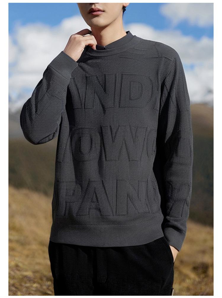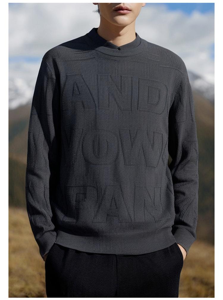 Suéter de manga larga con cuello camisero de jacquard con letras falsas de dos piezas para hombre, otoño e invierno 2024, nueva camisa informal holgada de punto.