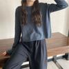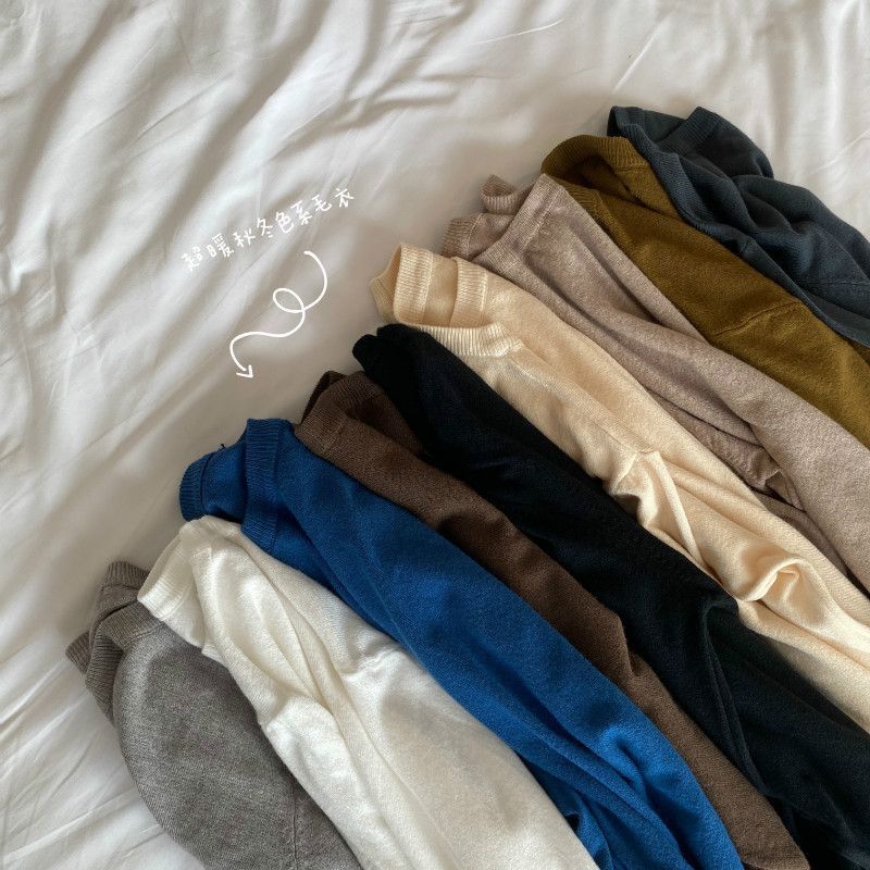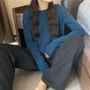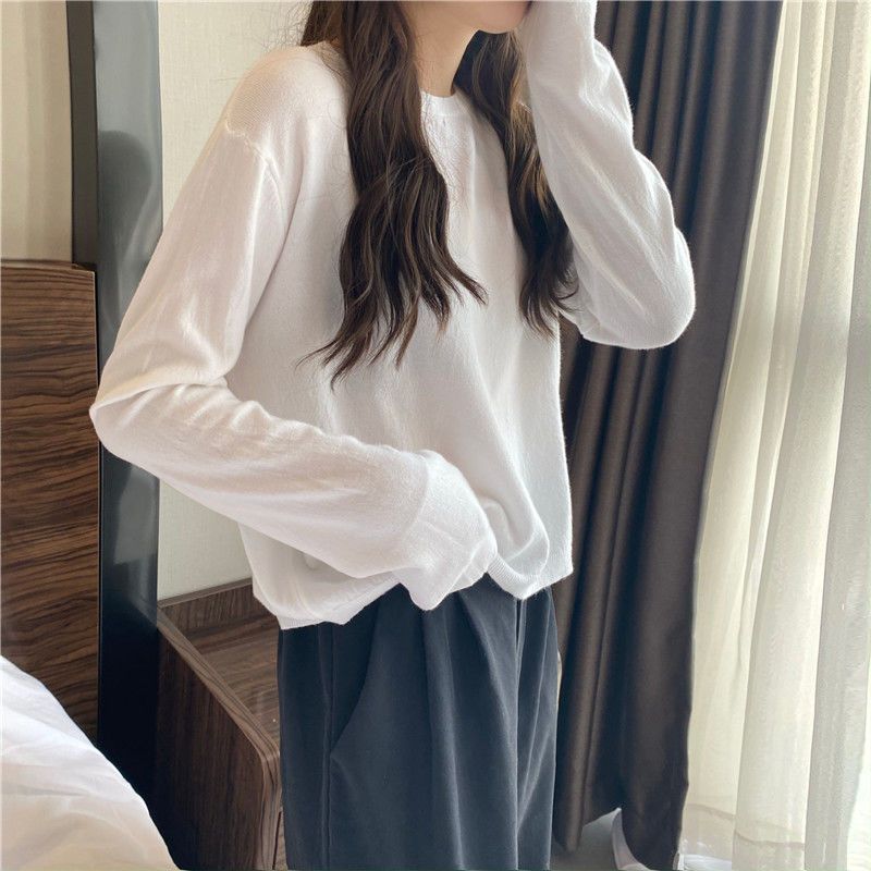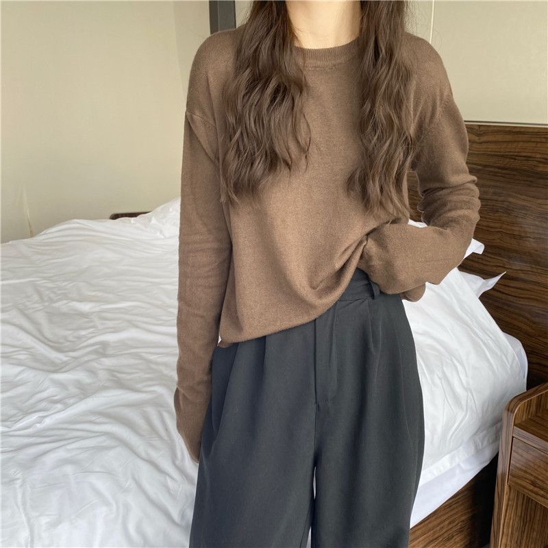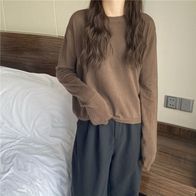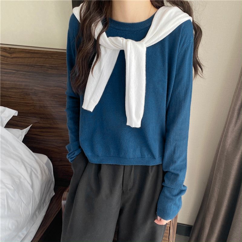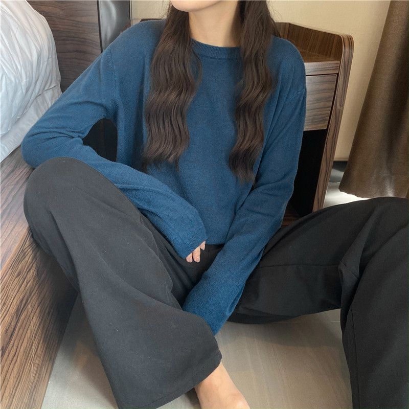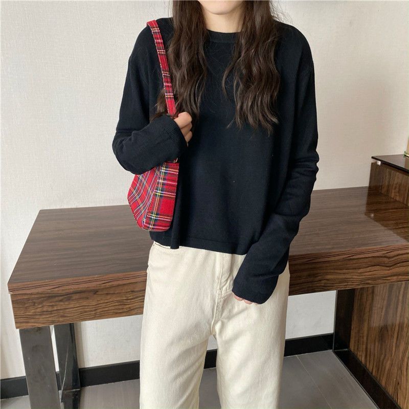 Jersey de cuello redondo de estilo coreano para mujer, top de punto de manga larga, camiseta interior corta y holgada adelgazante, primavera y otoño de 2023