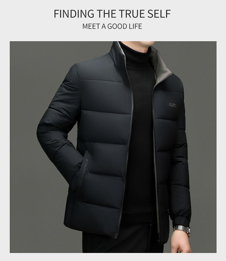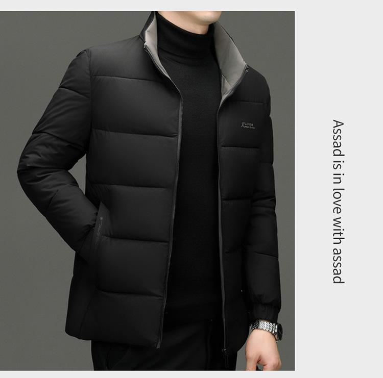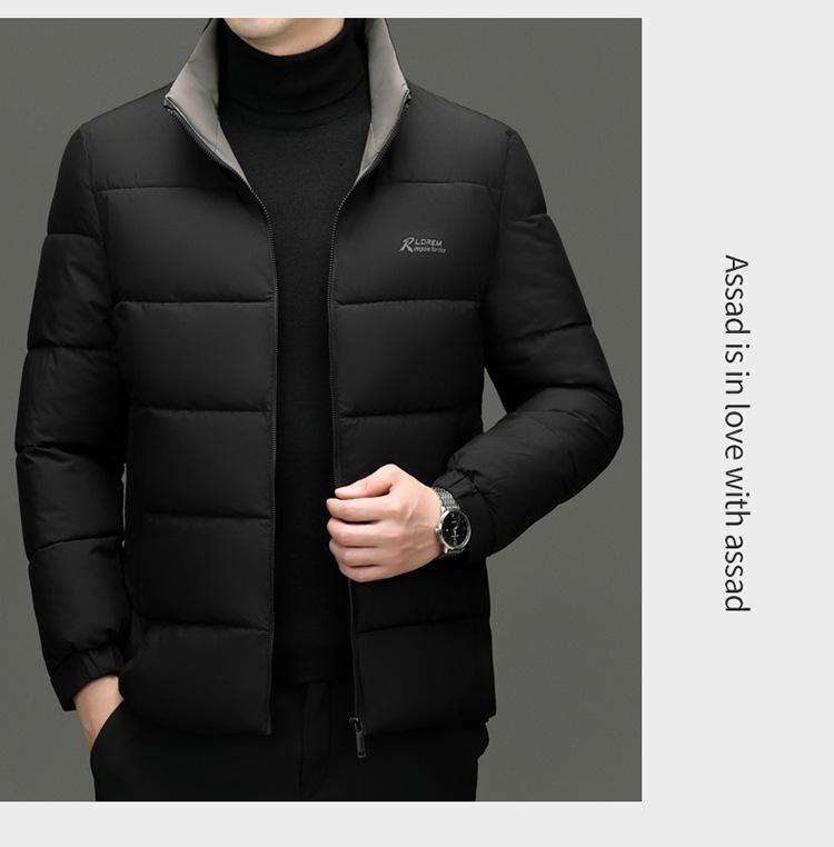 Chaqueta acolchada de algodón grueso de invierno para hombre, cómoda y cálida, de mediana edad, de color liso, con cuello informal de negocios.