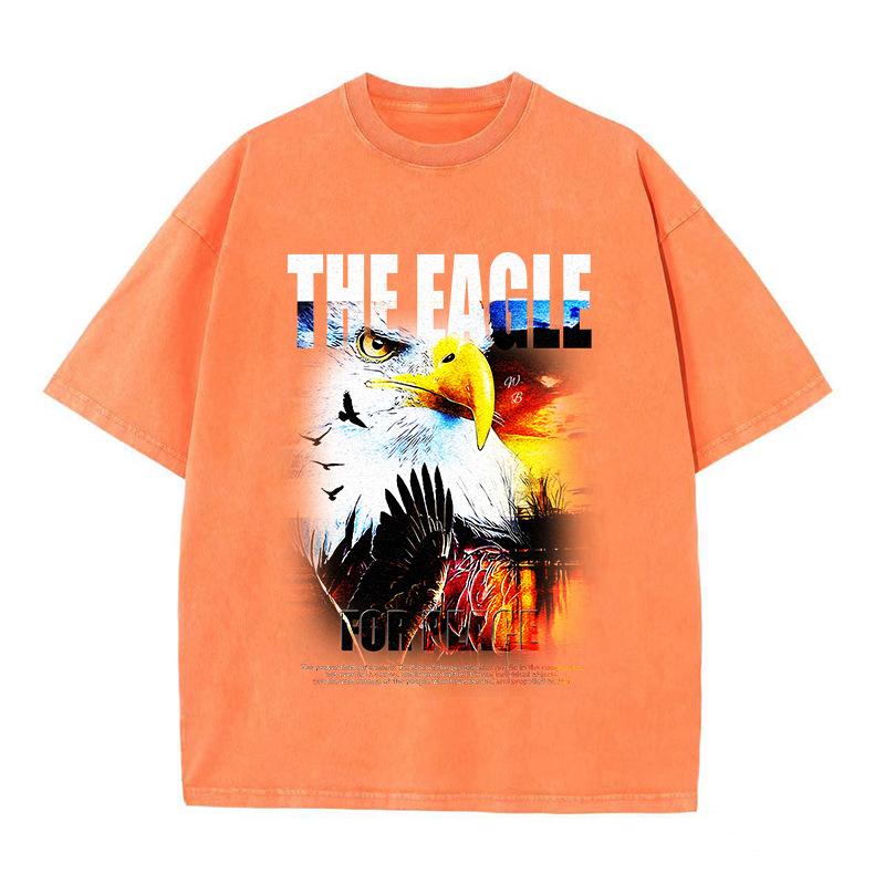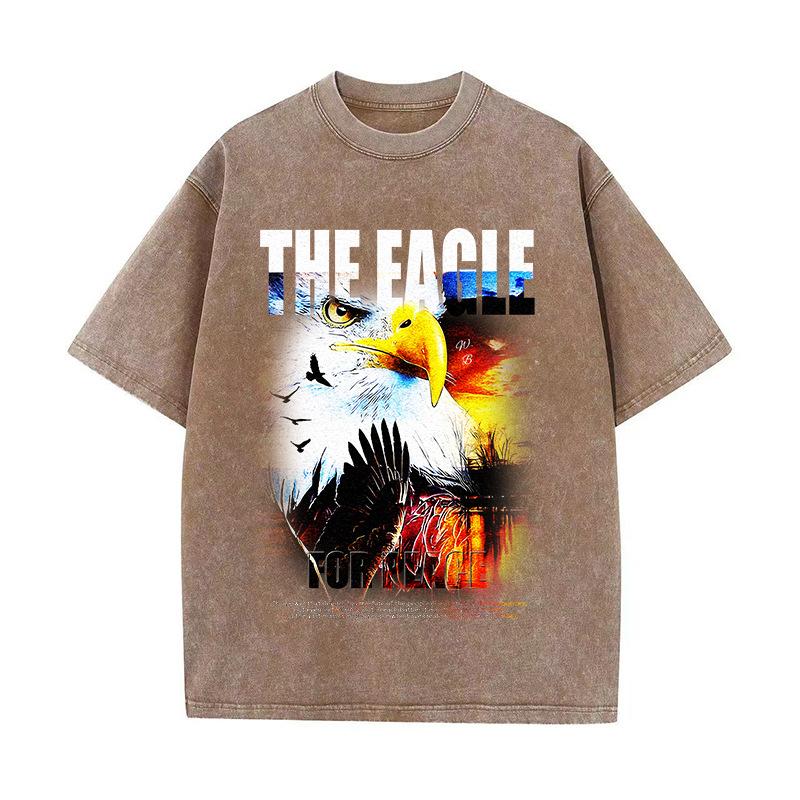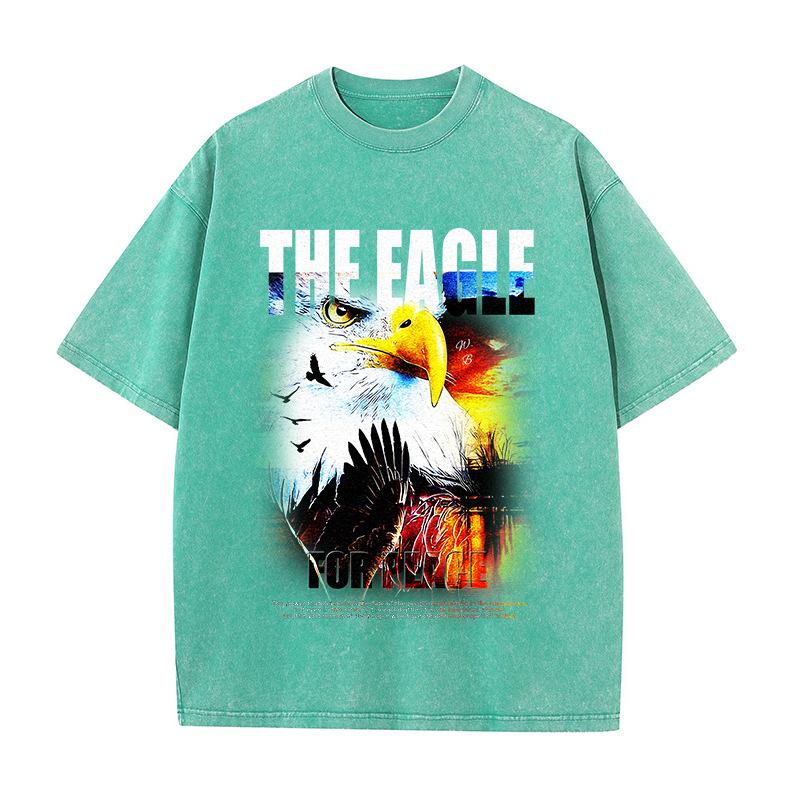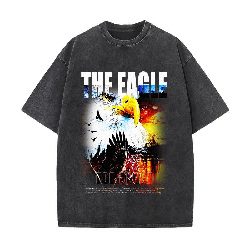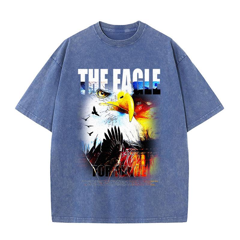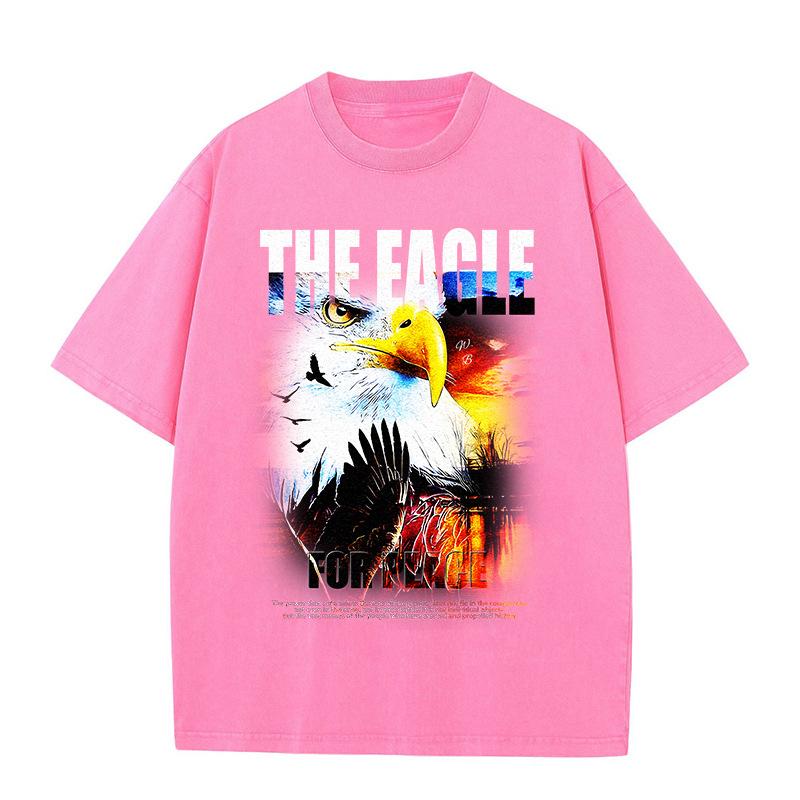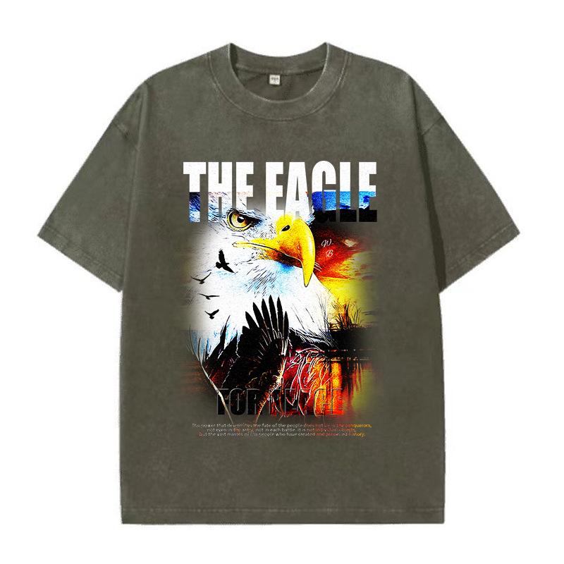 Camiseta holgada retro de manga corta de estilo americano, de marca de moda, informal, de verano, con estampado digital de águila