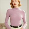 Suéter de cachemira de montaña pura para mujer, cuello alto medio, corte entallado, de punto adelgazante, para otoño e invierno.
