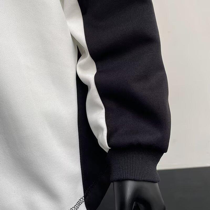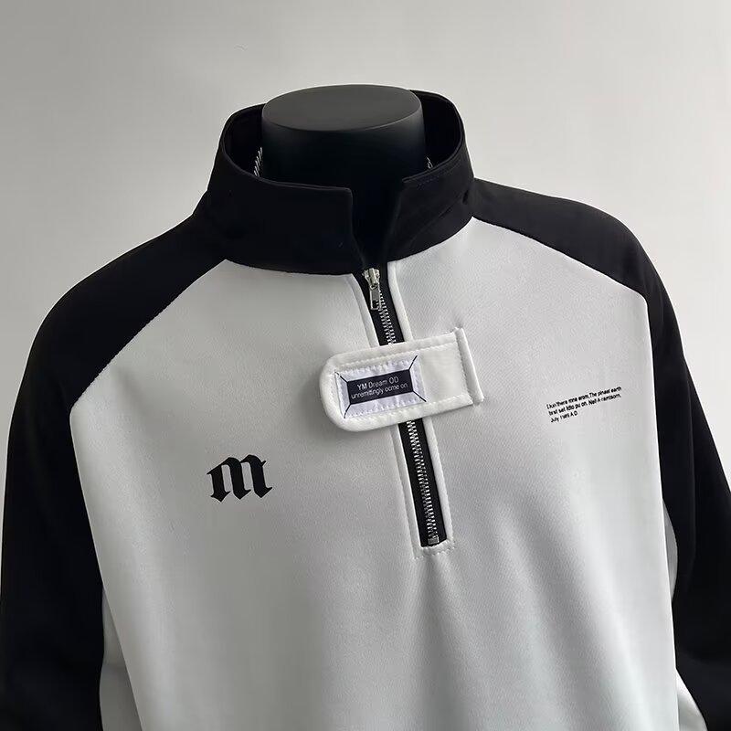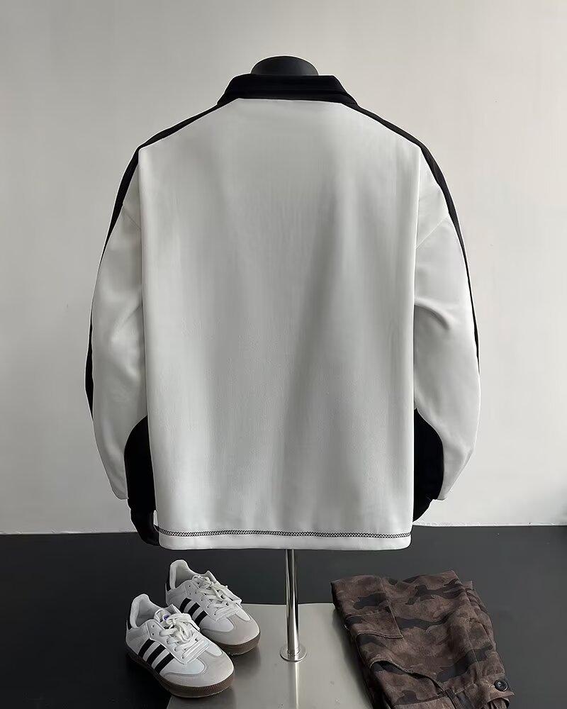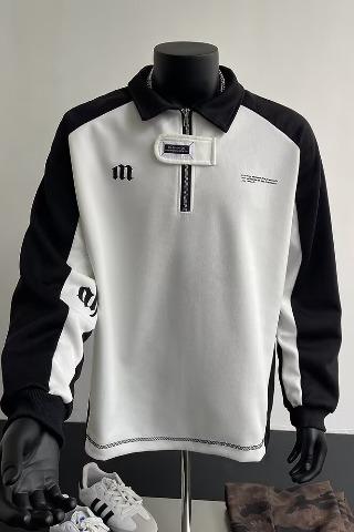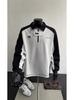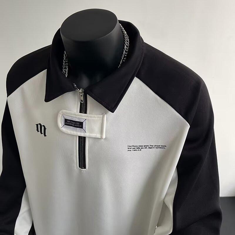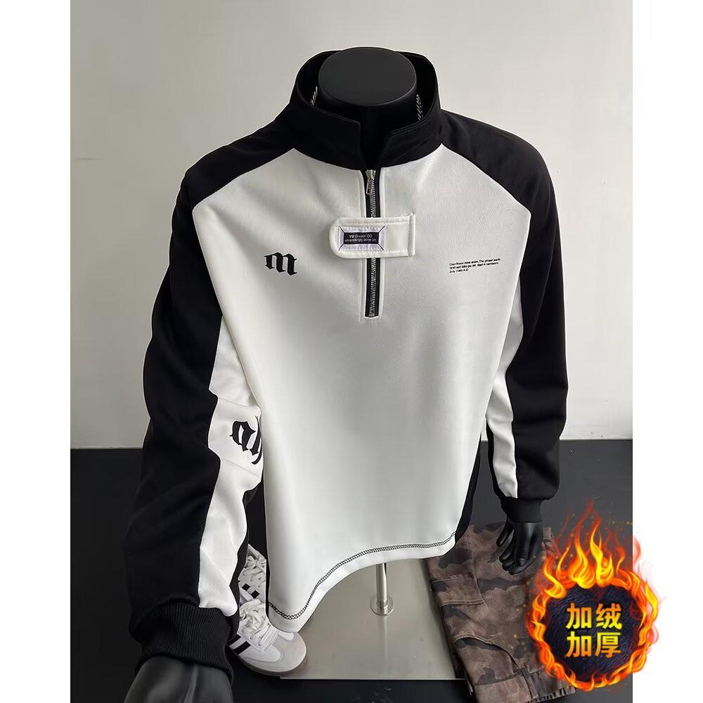 Polo Retro de Estilo Americano con Media Cremallera en Contraste, Solapa, Felpa Forrada, Sudadera Gruesa de Otoño e Invierno, Holgada, de Nicho, Estilo Universitario