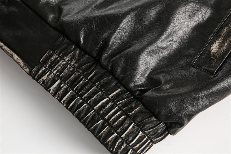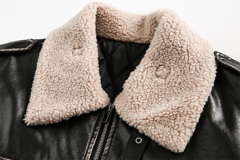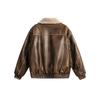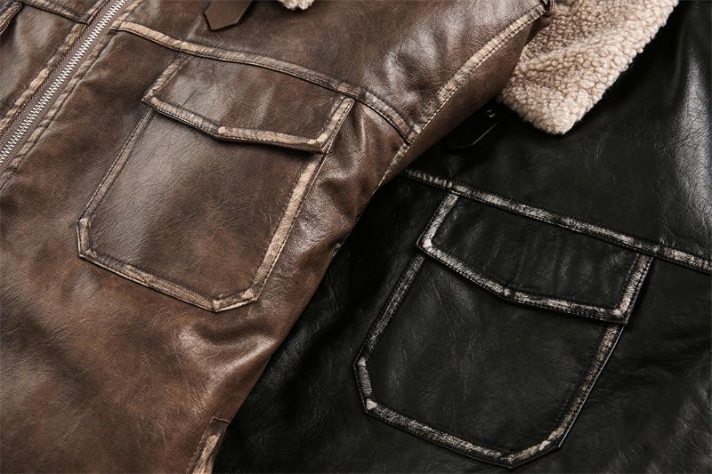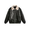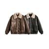 Nueva Llegada Estilo Americano Vintage Abrigo de Solapa de Borrego Viejo para Invierno para Hombre y Mujer Casual Combinable Cálido Abrigo Acolchado de Algodón de Cuero PU