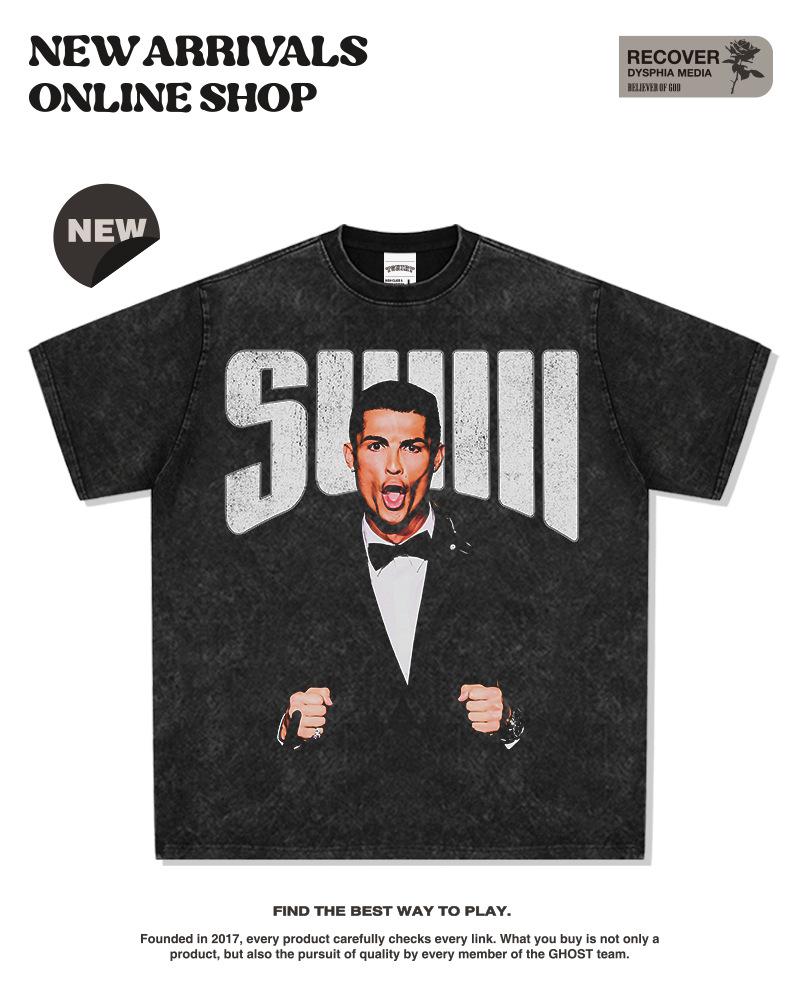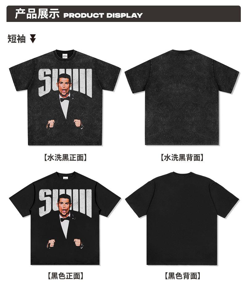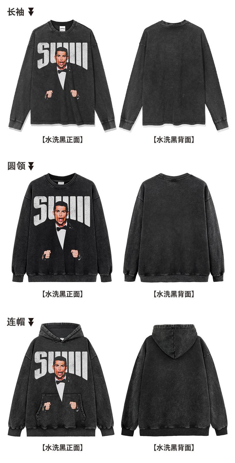 Camiseta de manga corta estampada C Luo American Vintage de fútbol transfronterizo, algodón pesado, manga larga, cuello redondo, sudadera con capucha