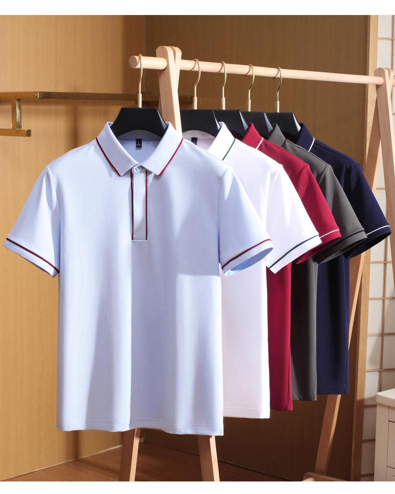Polo de Manga Corta para Hombre de Verano Casual de Negocios Color Sólido con Cuello de Color con Hebilla Moda para Hombre