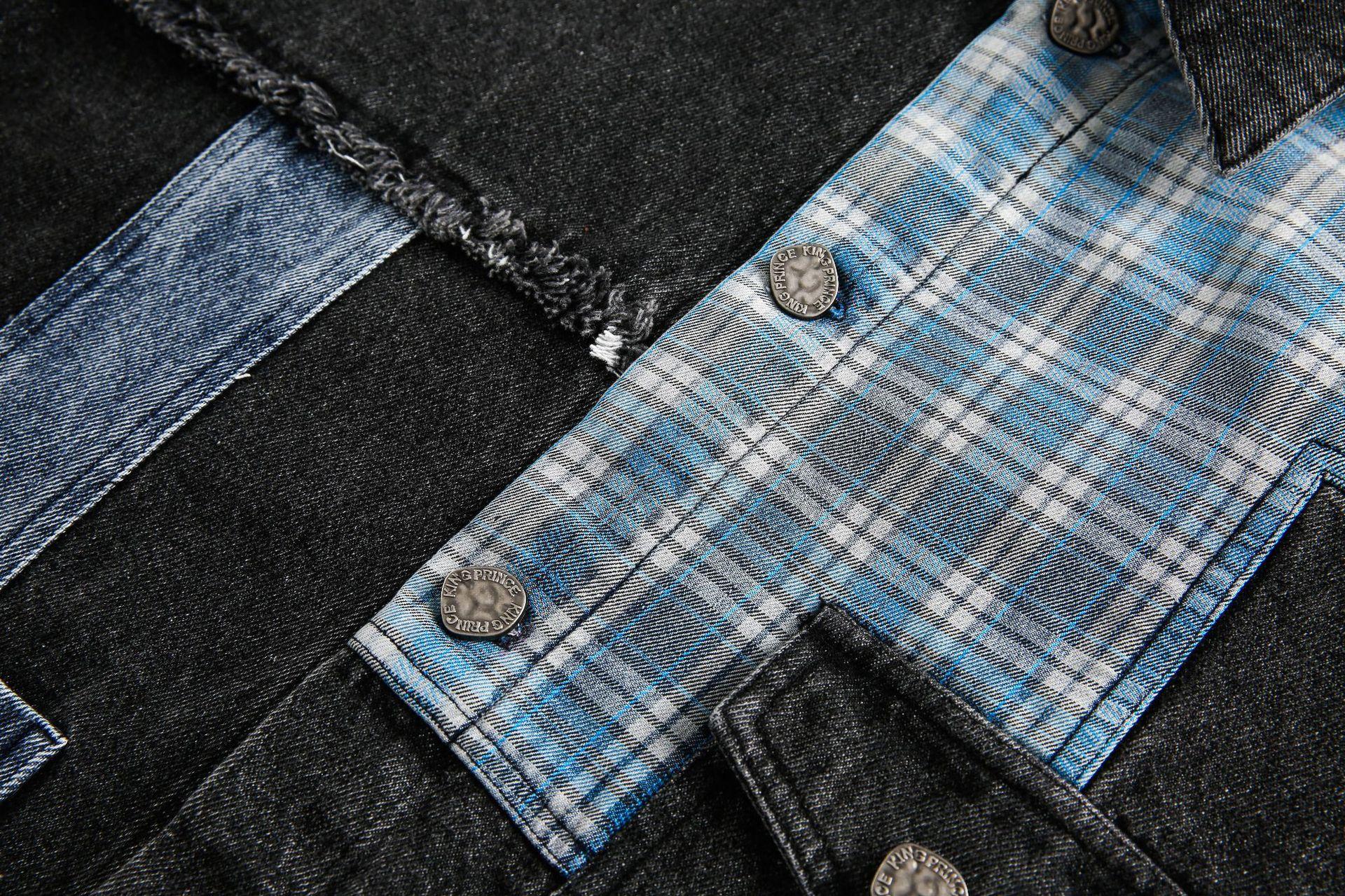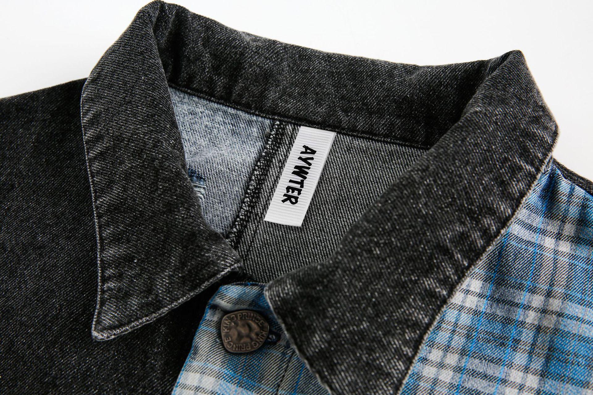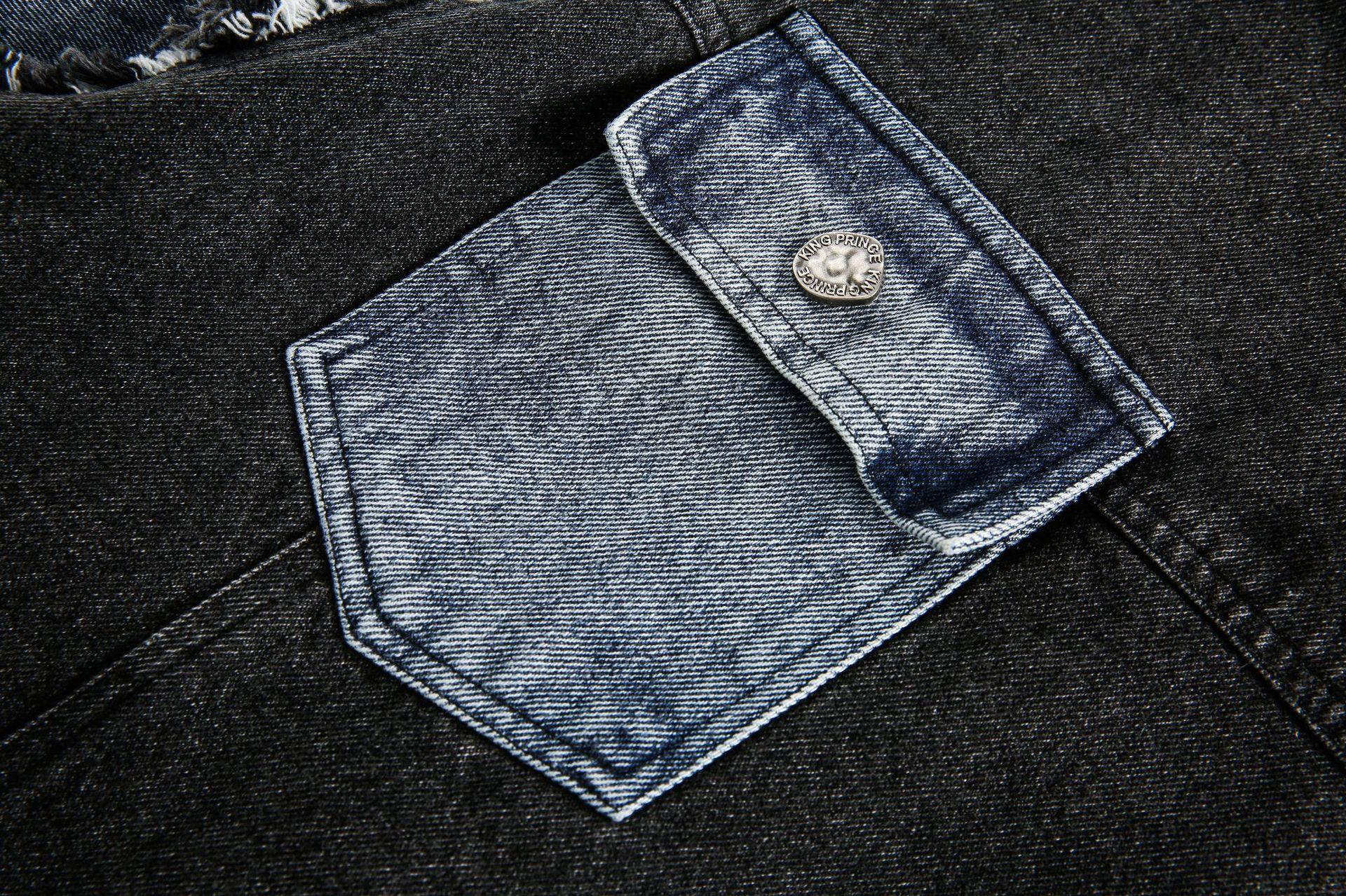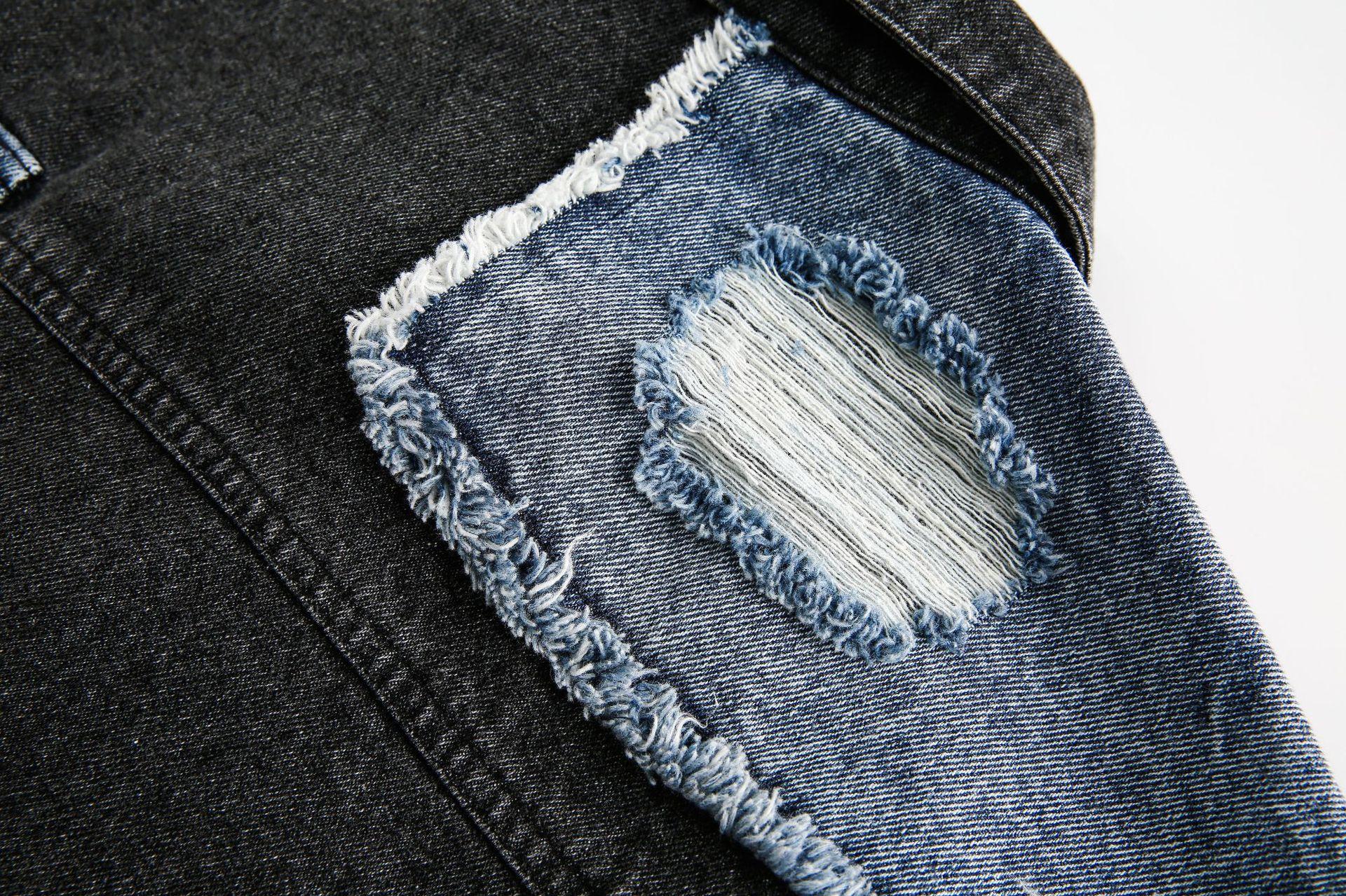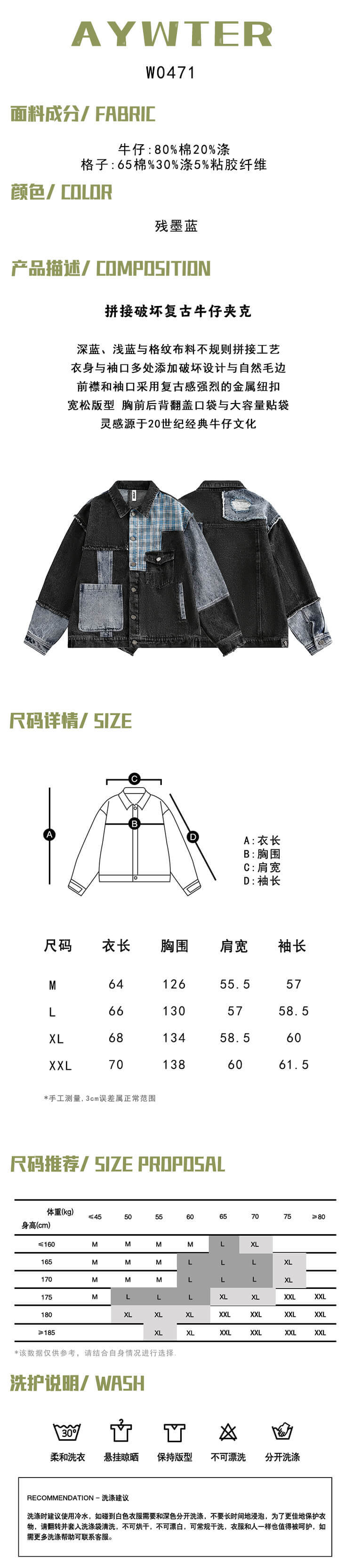 Chaqueta de mezclilla lavada con empalme dañado de estilo retro americano de otoño 2025 de la marca de moda Jiayiiku Chaqueta de estilo vintage