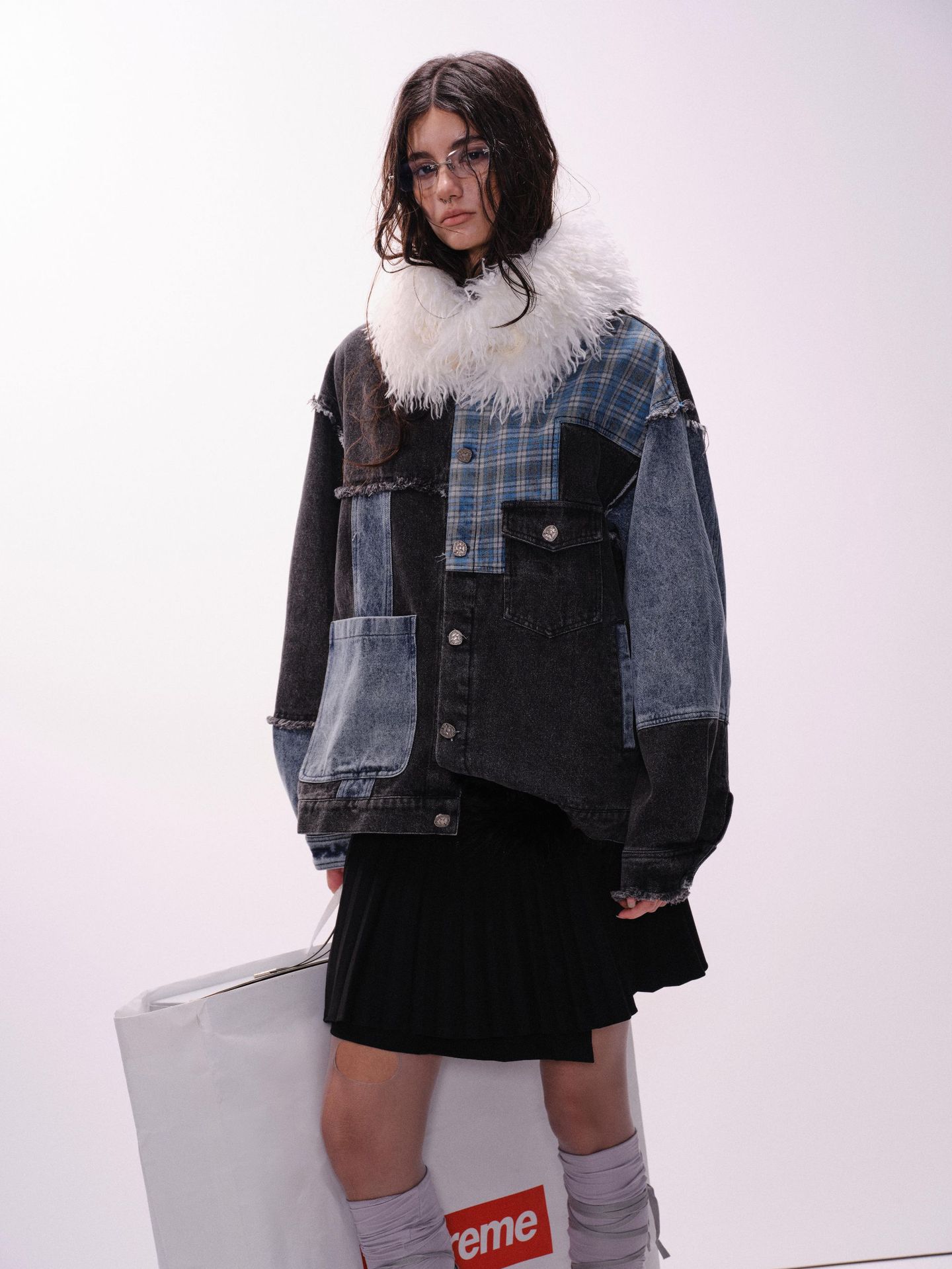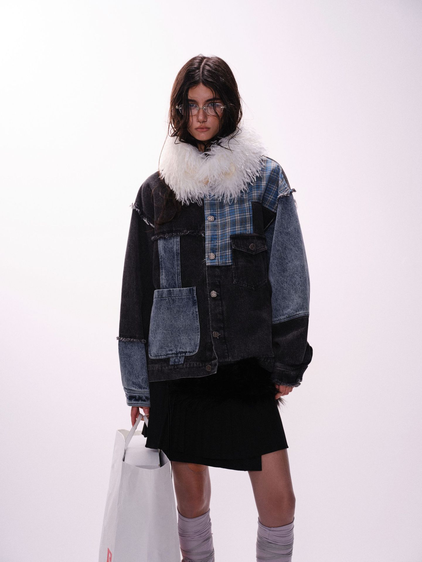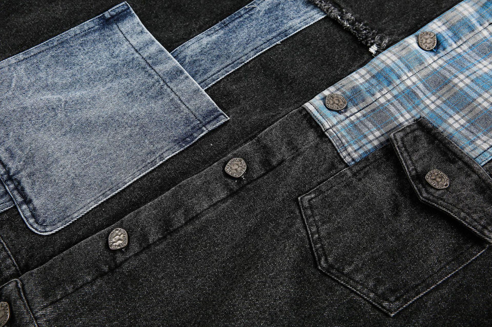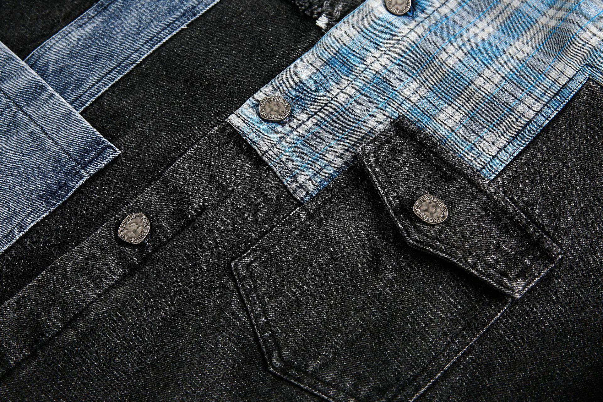 Chaqueta de mezclilla lavada con empalme dañado de estilo retro americano de otoño 2025 de la marca de moda Jiayiiku Chaqueta de estilo vintage