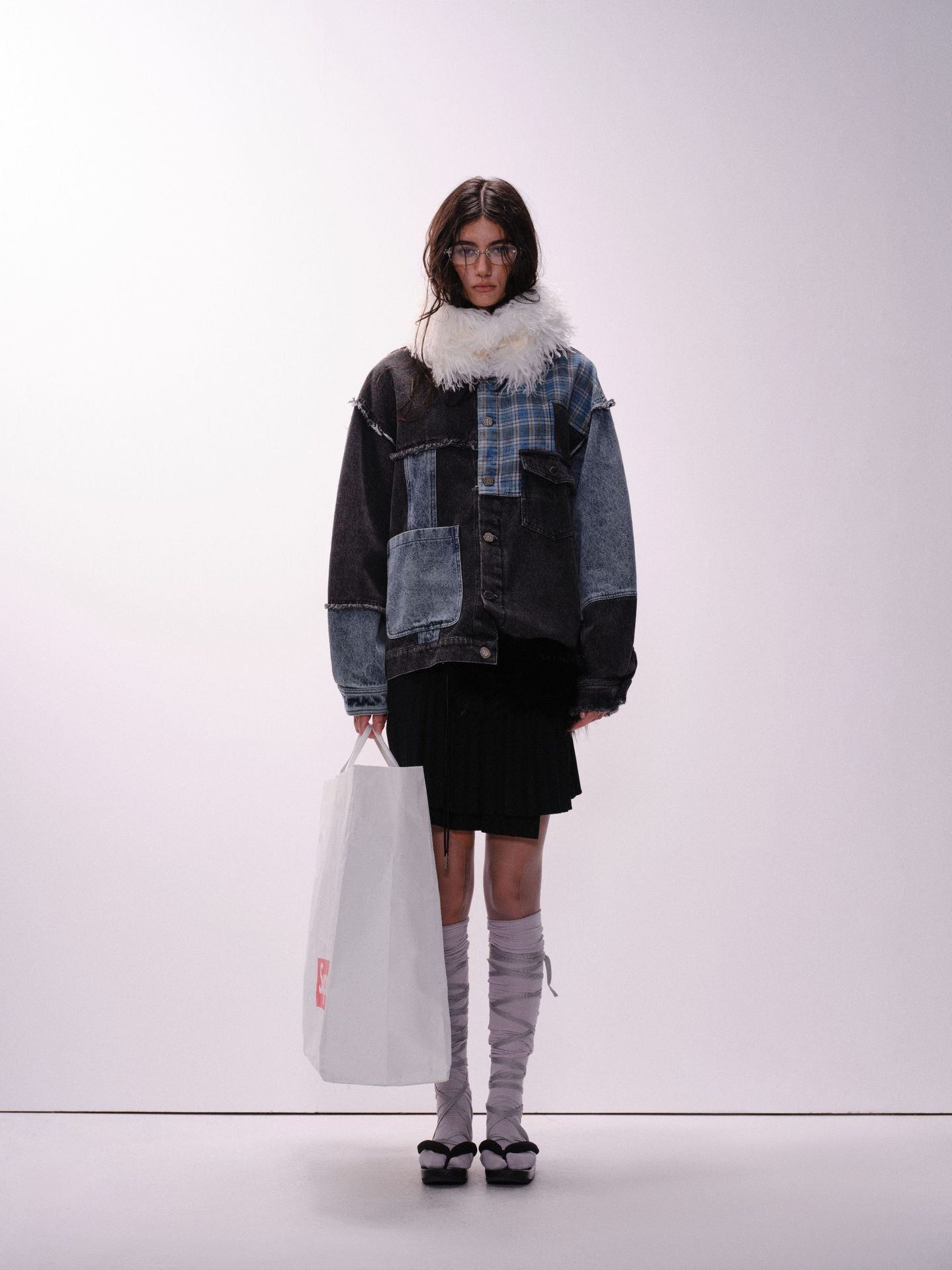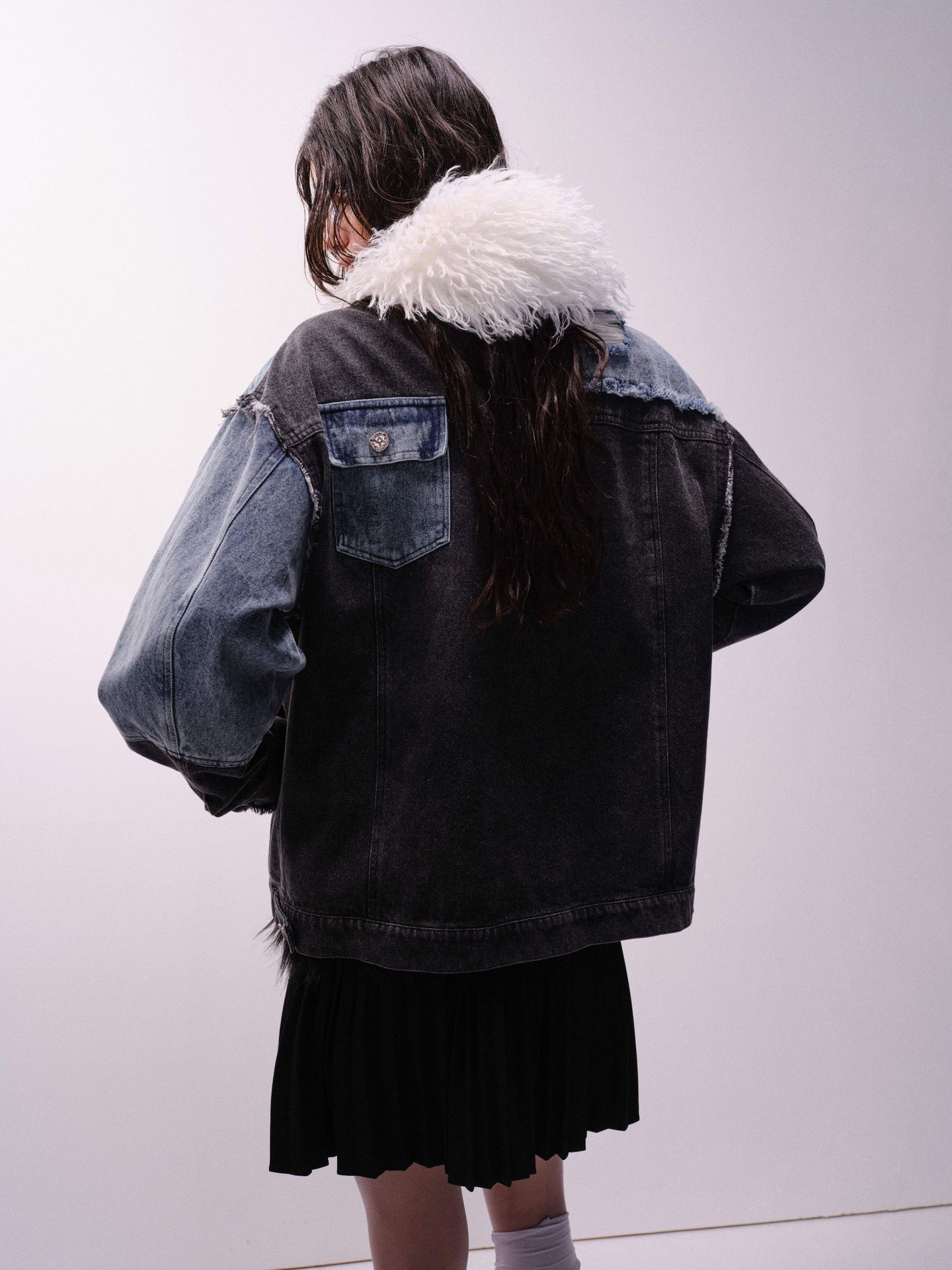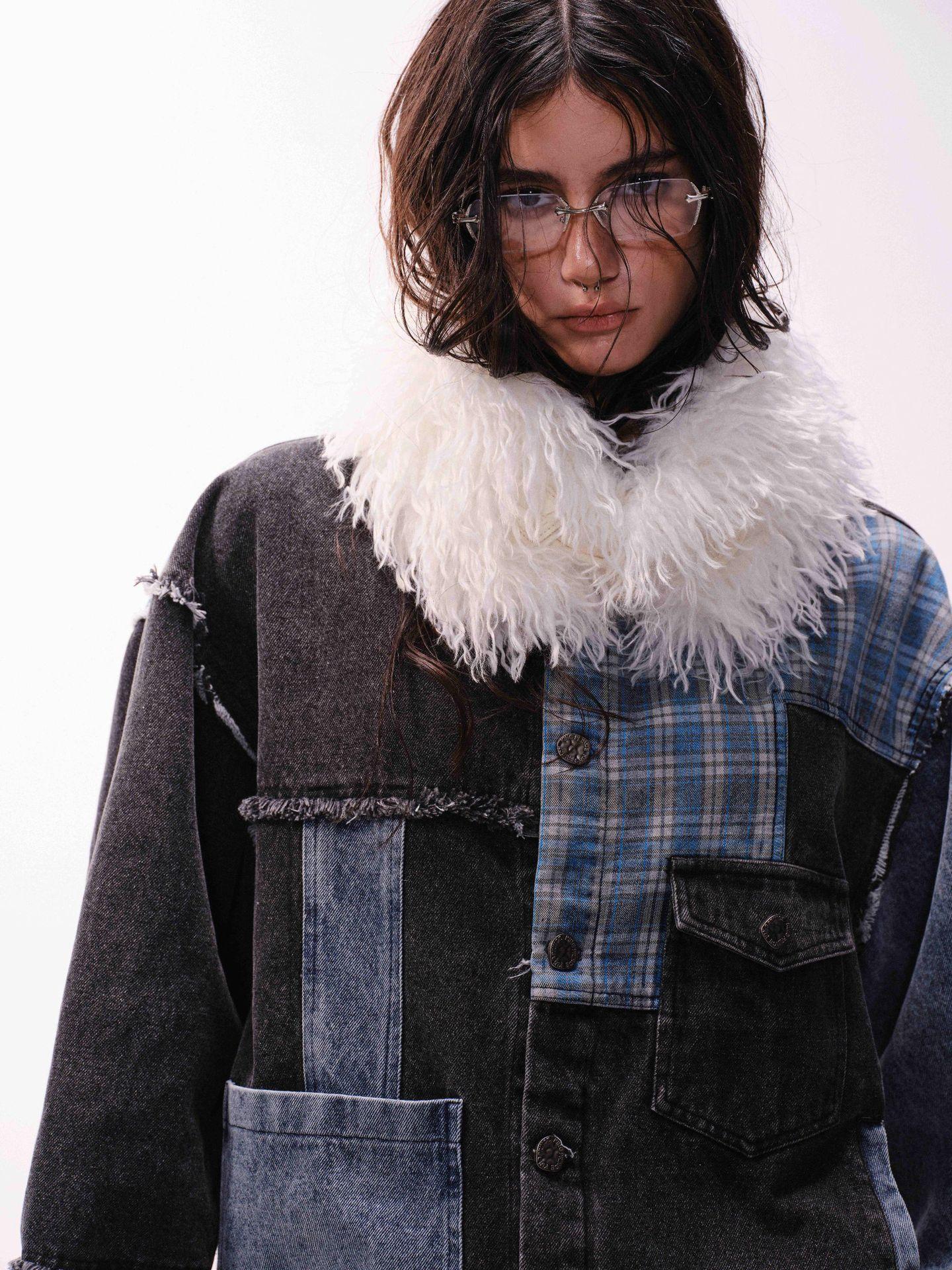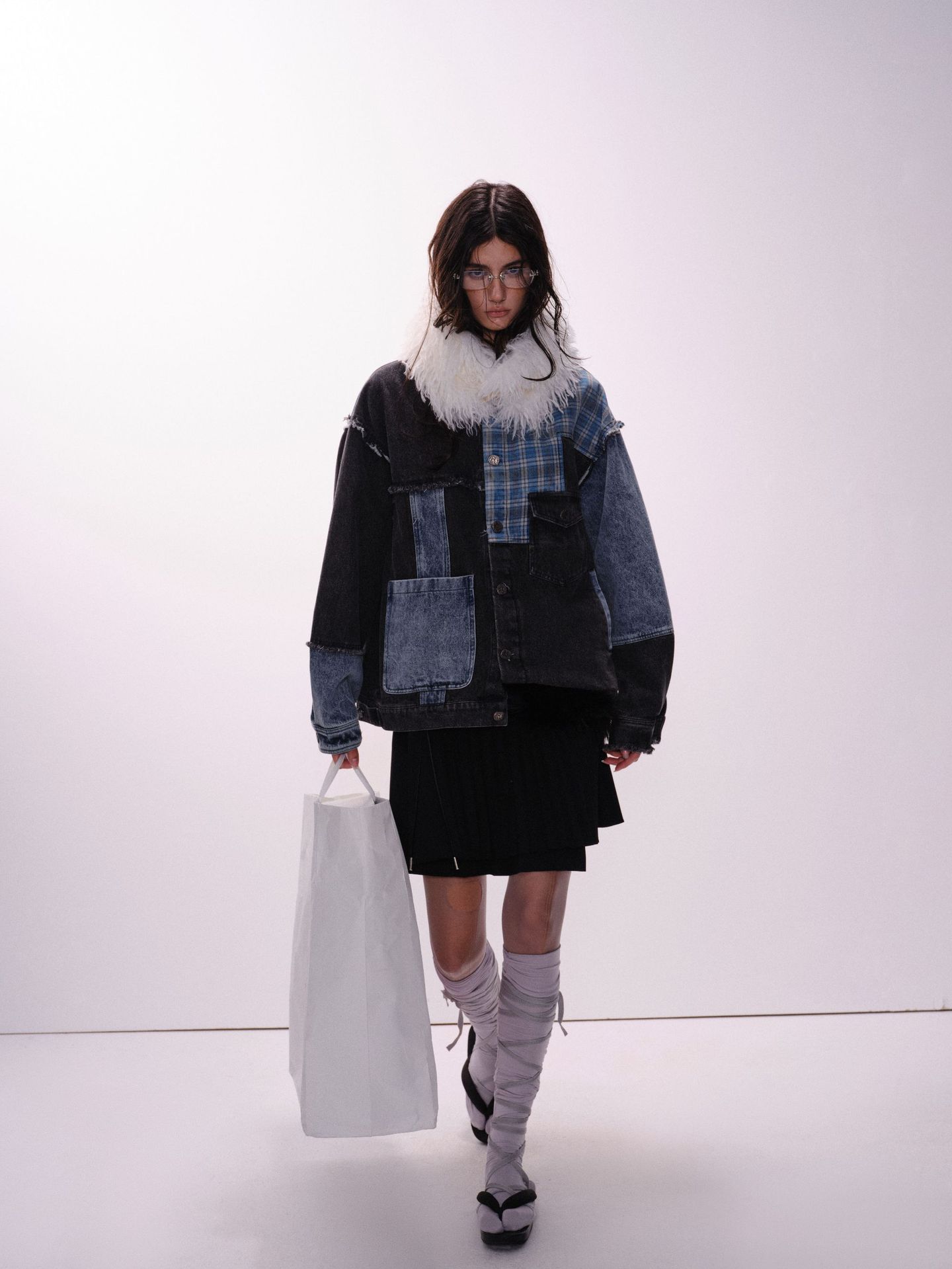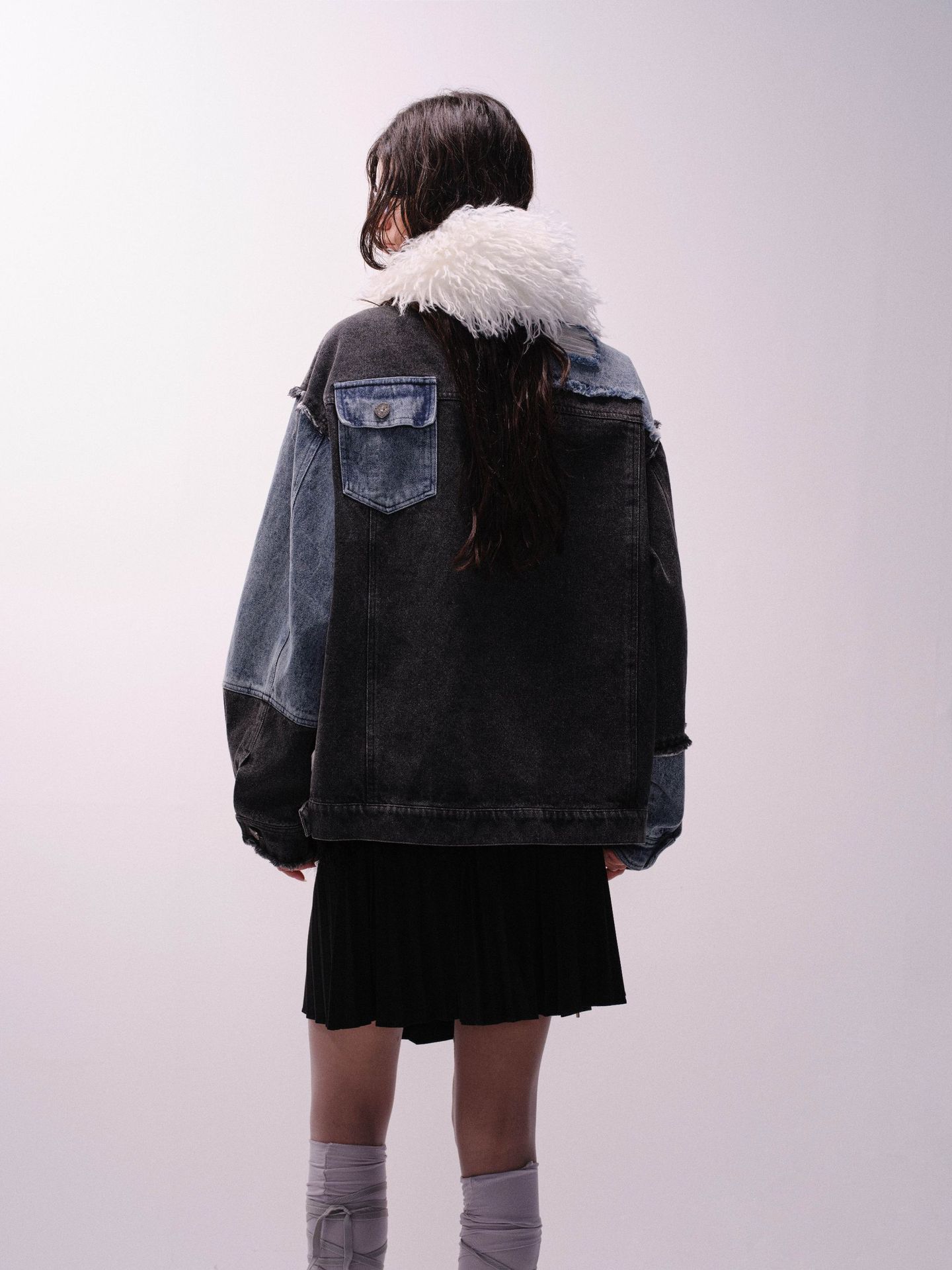 Chaqueta de mezclilla lavada con empalme dañado de estilo retro americano de otoño 2025 de la marca de moda Jiayiiku Chaqueta de estilo vintage