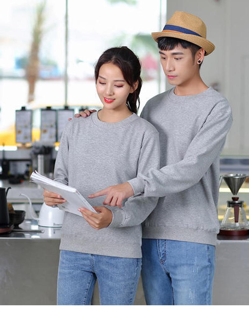 Suéter Ropa de trabajo Color sólido Sudadera con capucha de felpa fina Chaqueta de manga larga Camisa publicitaria Logotipo Suéter de cuello redondo