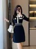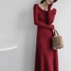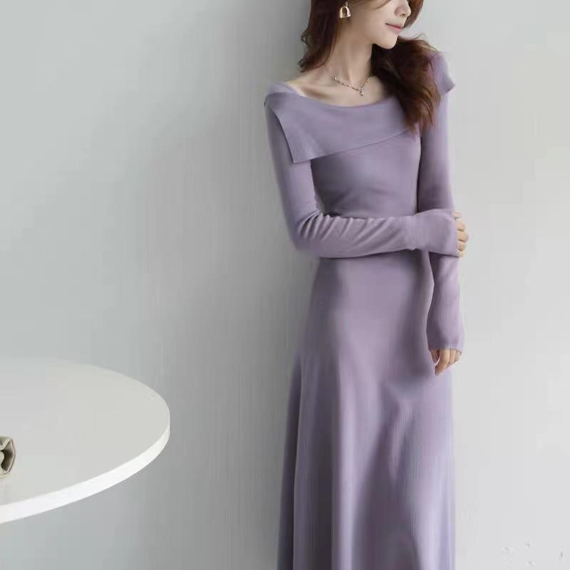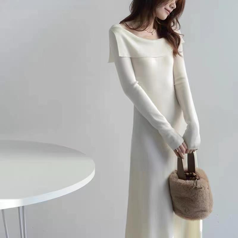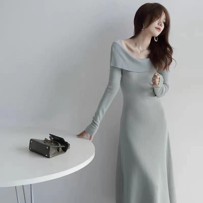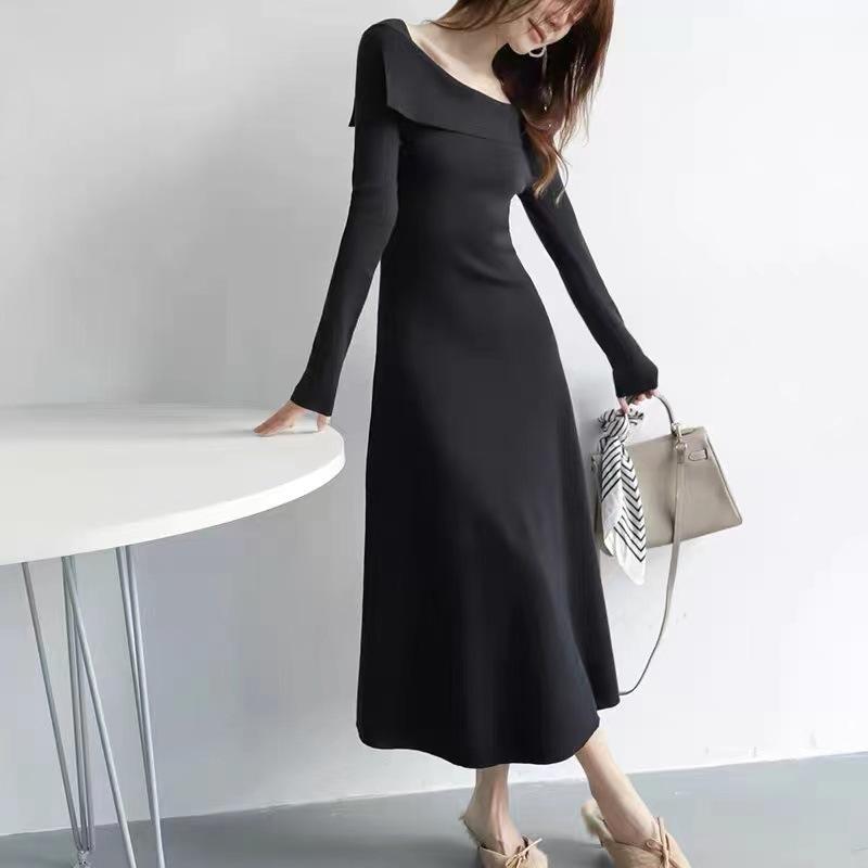 Vestido de Estilo Suave de Dama Francesa para Mujer 2025 Otoño e Invierno Nuevo Elegante Look Adelgazante Fondo Falda Larga de Punto