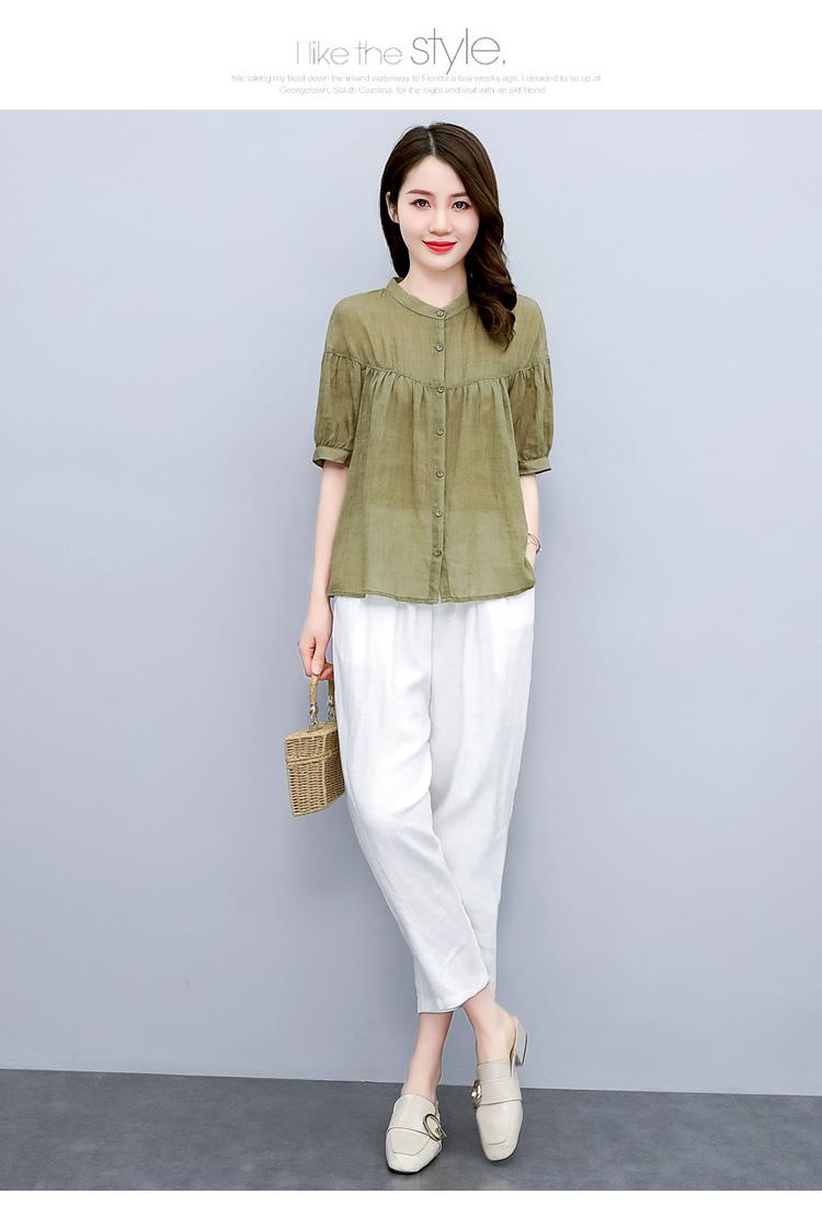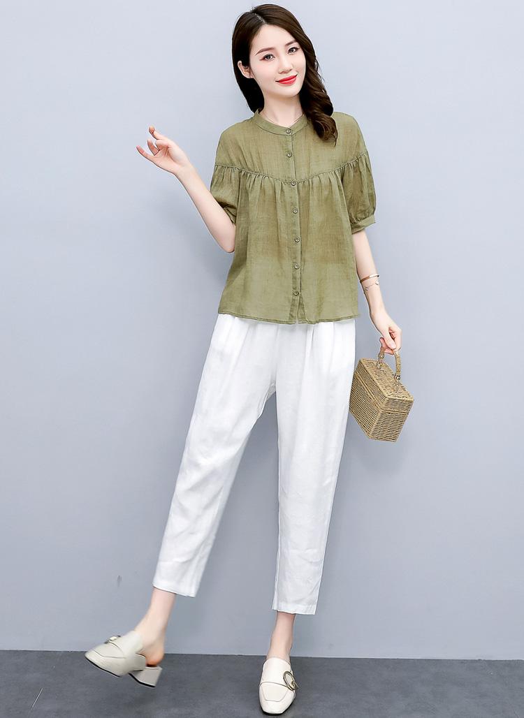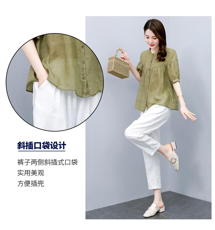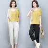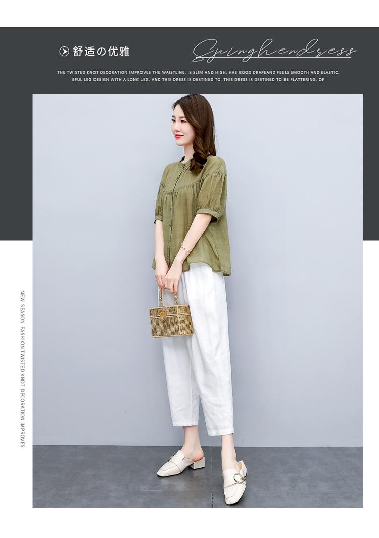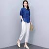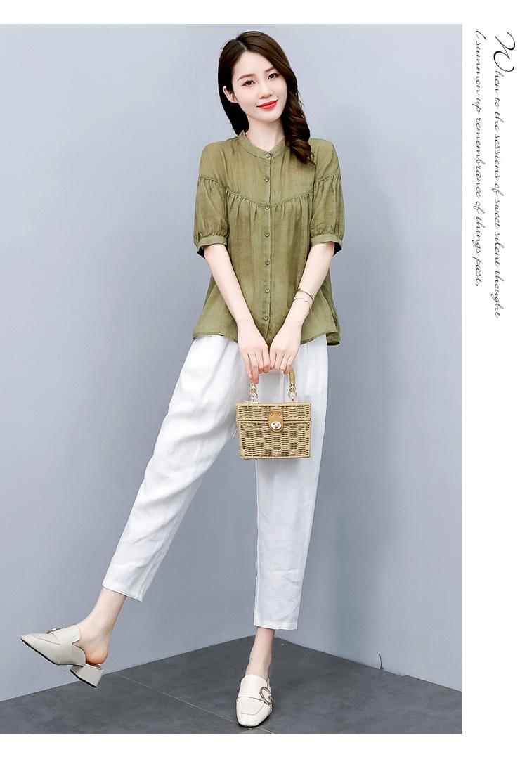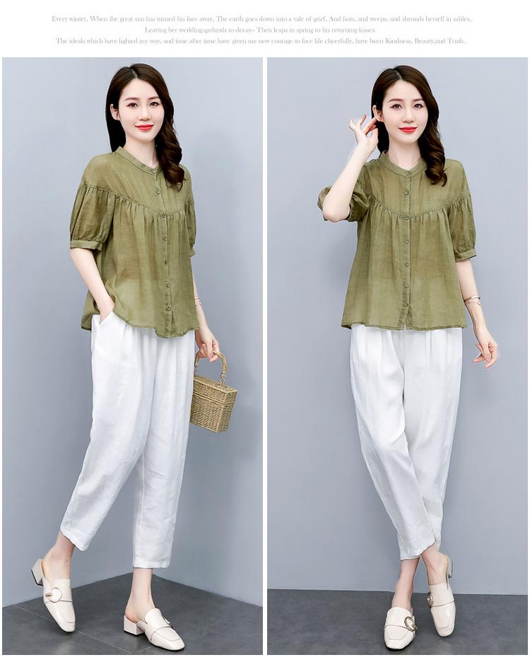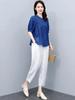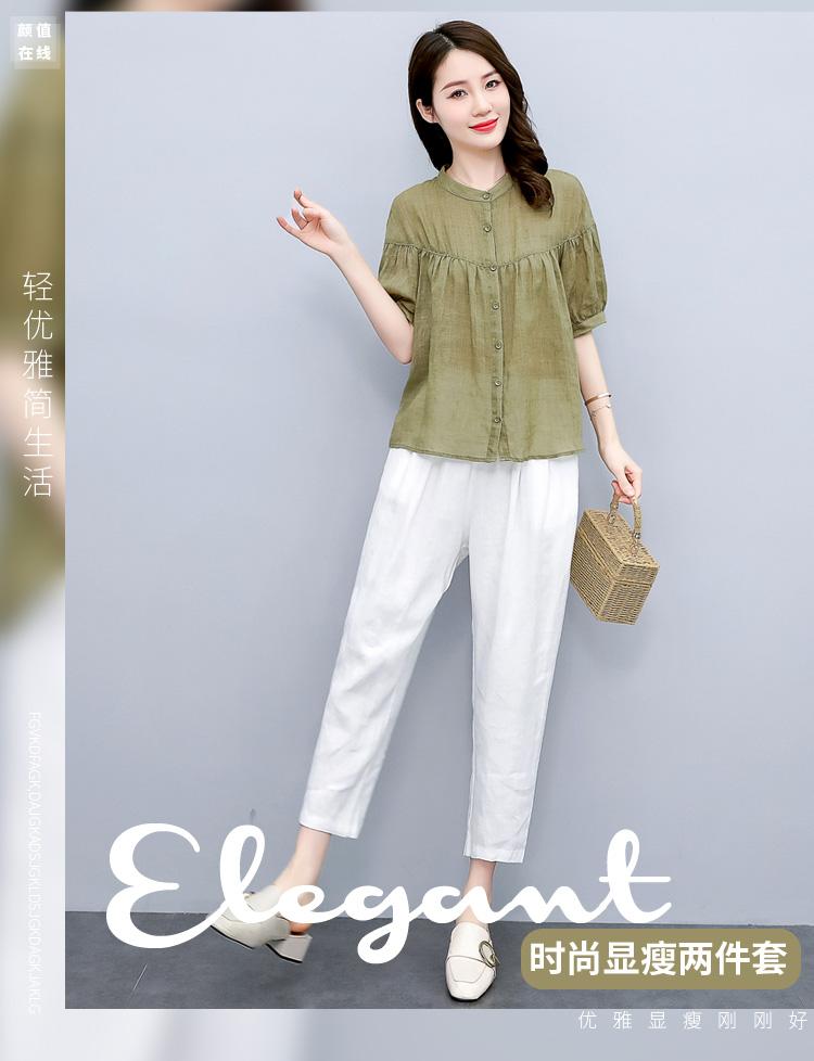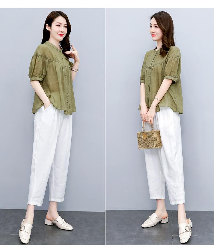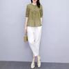 Traje pequeño de algodón y lino para mujer 2025 Verano Nueva moda Suelto Casual Delgado Ramio Dos piezas Pantalón