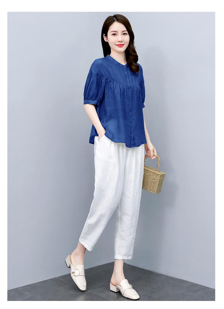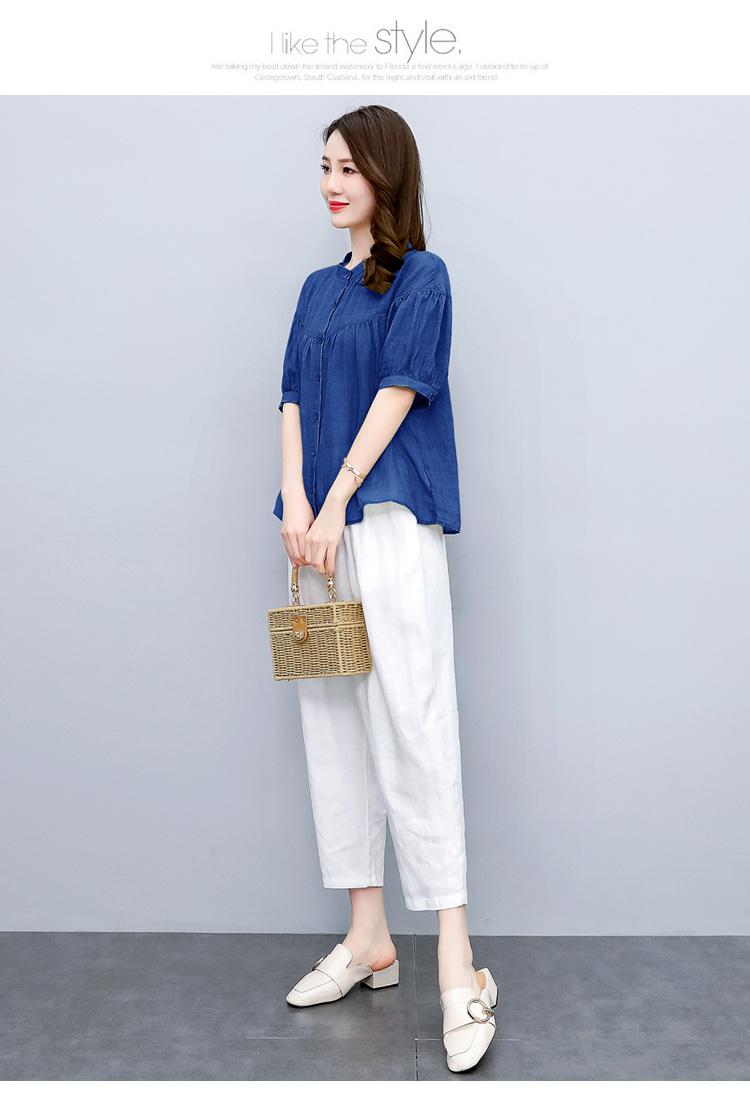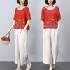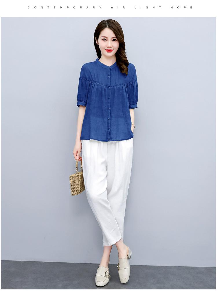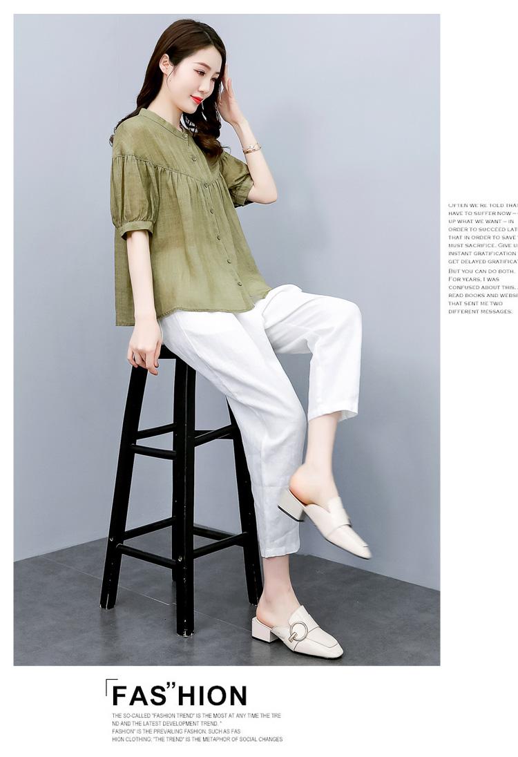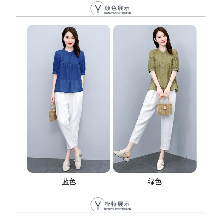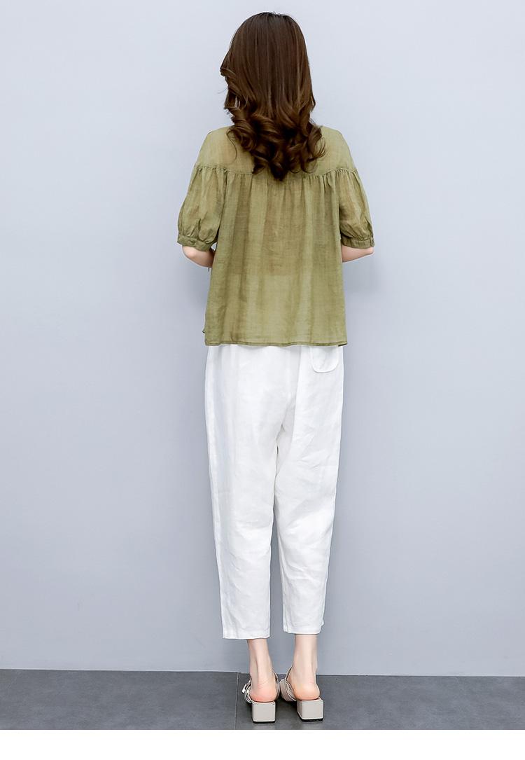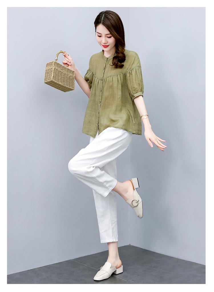 Traje pequeño de algodón y lino para mujer 2025 Verano Nueva moda Suelto Casual Delgado Ramio Dos piezas Pantalón
