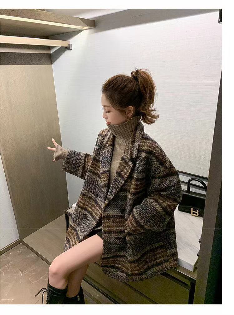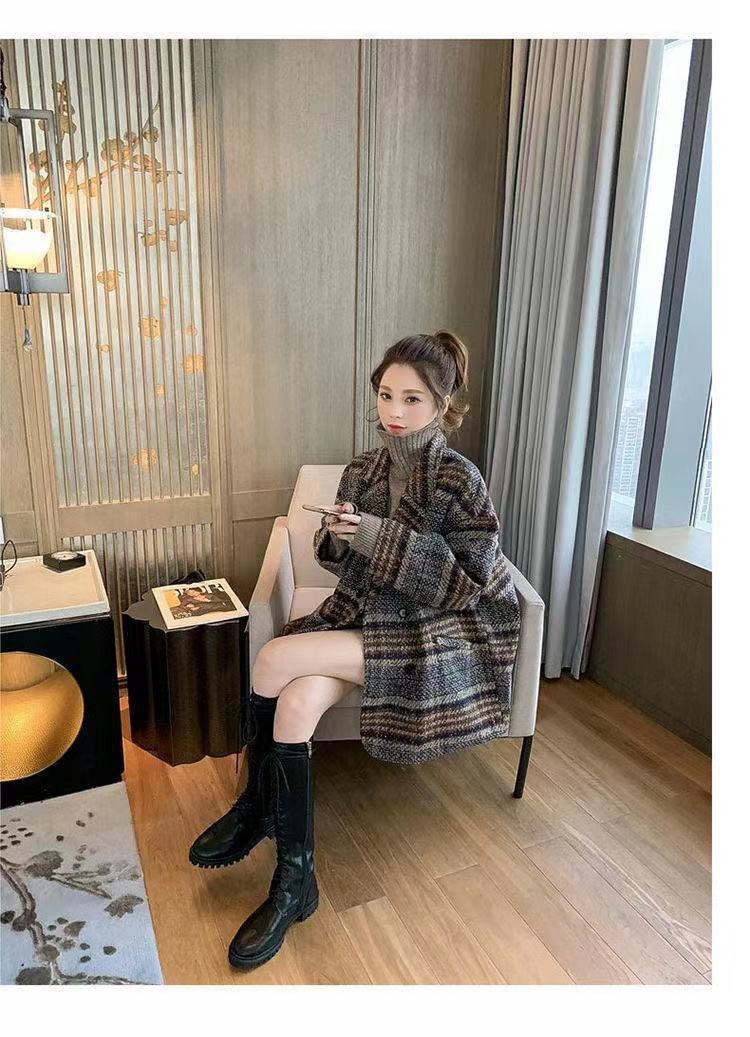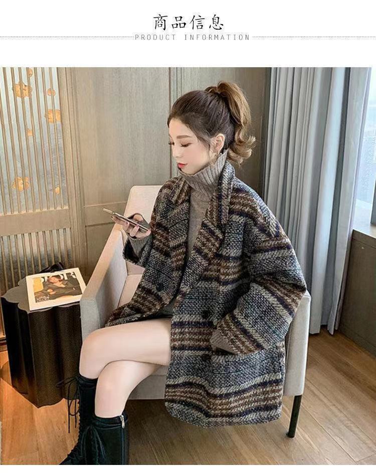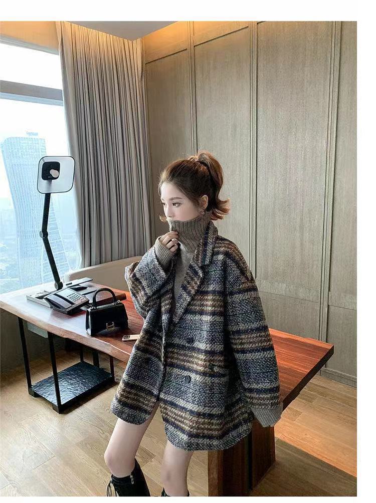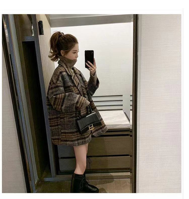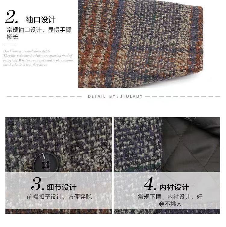 Chaqueta de Traje de Talla Grande para Mujer Otoño e Invierno Nueva Elegante Pequeña Versátil a Cuadros Largo Medio Lana Abrigo