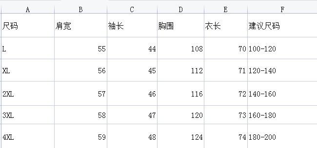 L recommendation 100-120, Xl recommended 120-140, 2xl recommended 140-160, 3xl recommended 160-180, 4xl recommended 180-200