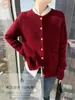 Compra Suéter Flora 100% de lana pura con cuello redondo para mujer, chaqueta vintage de manga larga, cárdigan de punto exterior grueso de color liso para mujer al por mayor en Joom.pro