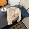 Suéter de cuello en V morado suave y ceroso de estilo coreano para mujer, ropa de alta gama de otoño e invierno, abrigo holgado de estilo perezoso, suéter de punto