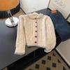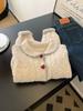 Suéter morado cálido y suave estilo coreano con cuello en V para mujer otoño e invierno ropa de alta gama suéter abrigo estilo holgado y perezoso