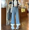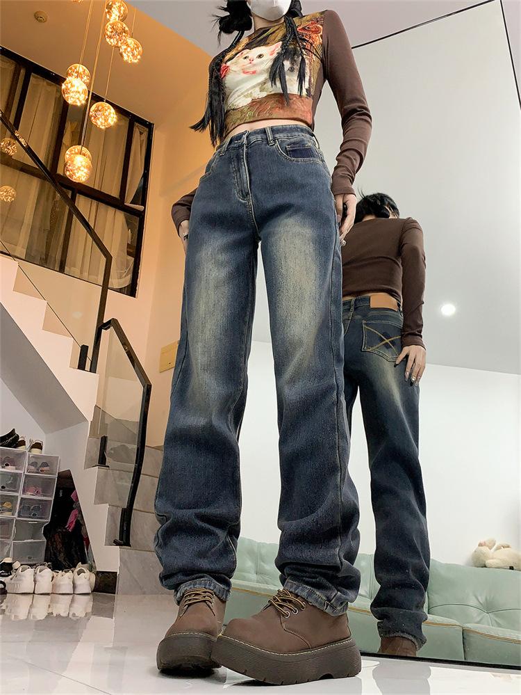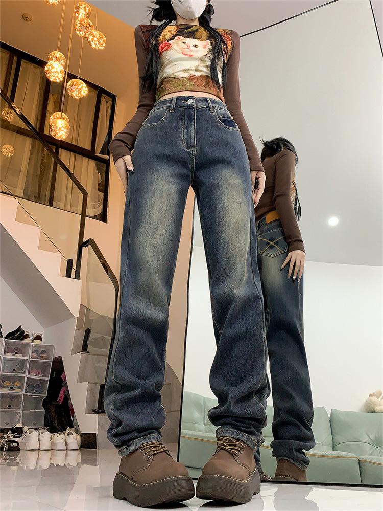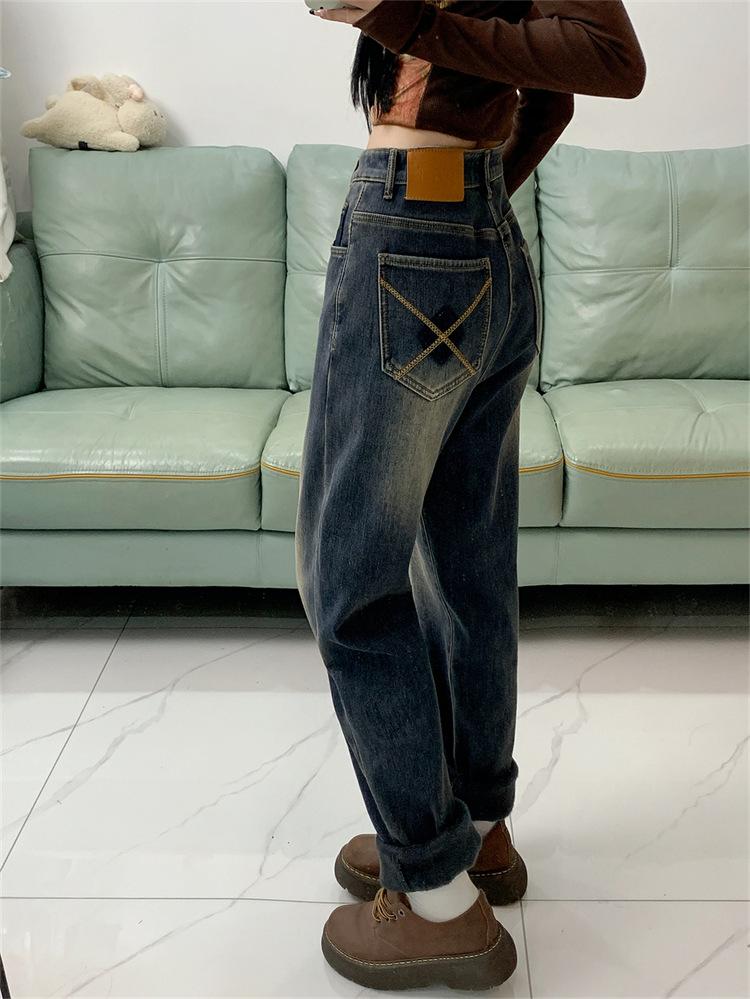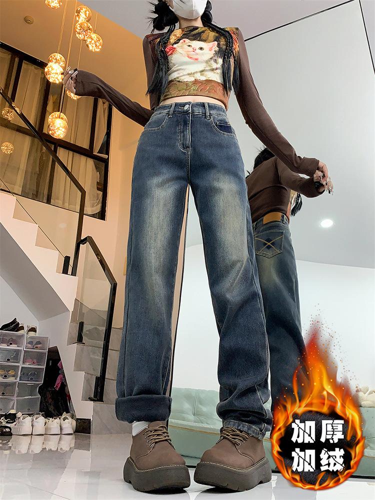 Jeans Harlan de Cintura Alta con Forro Polar para Mujer Otoño e Invierno 2024 Nuevo Talla Grande Chica Gordita Suelto Cubre Carne Adelgazante Pantalones de Papá