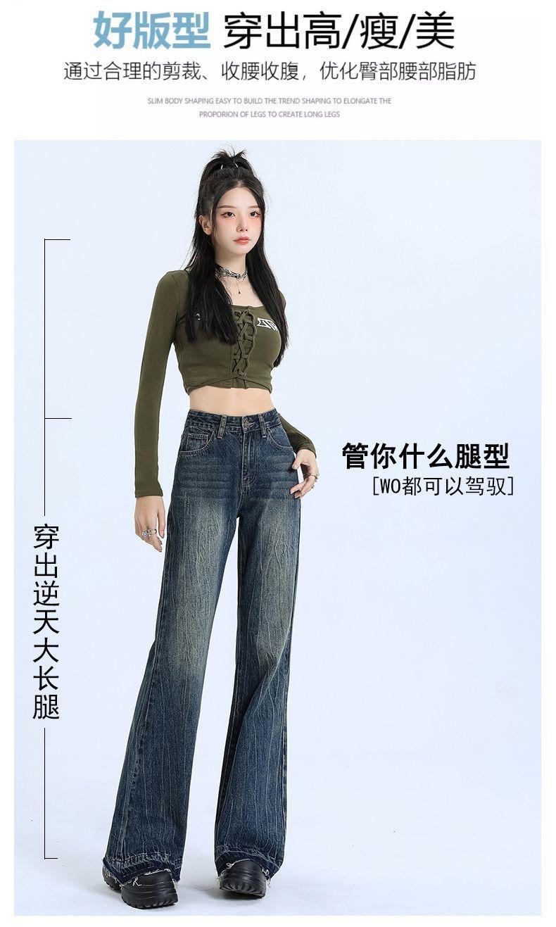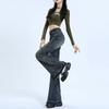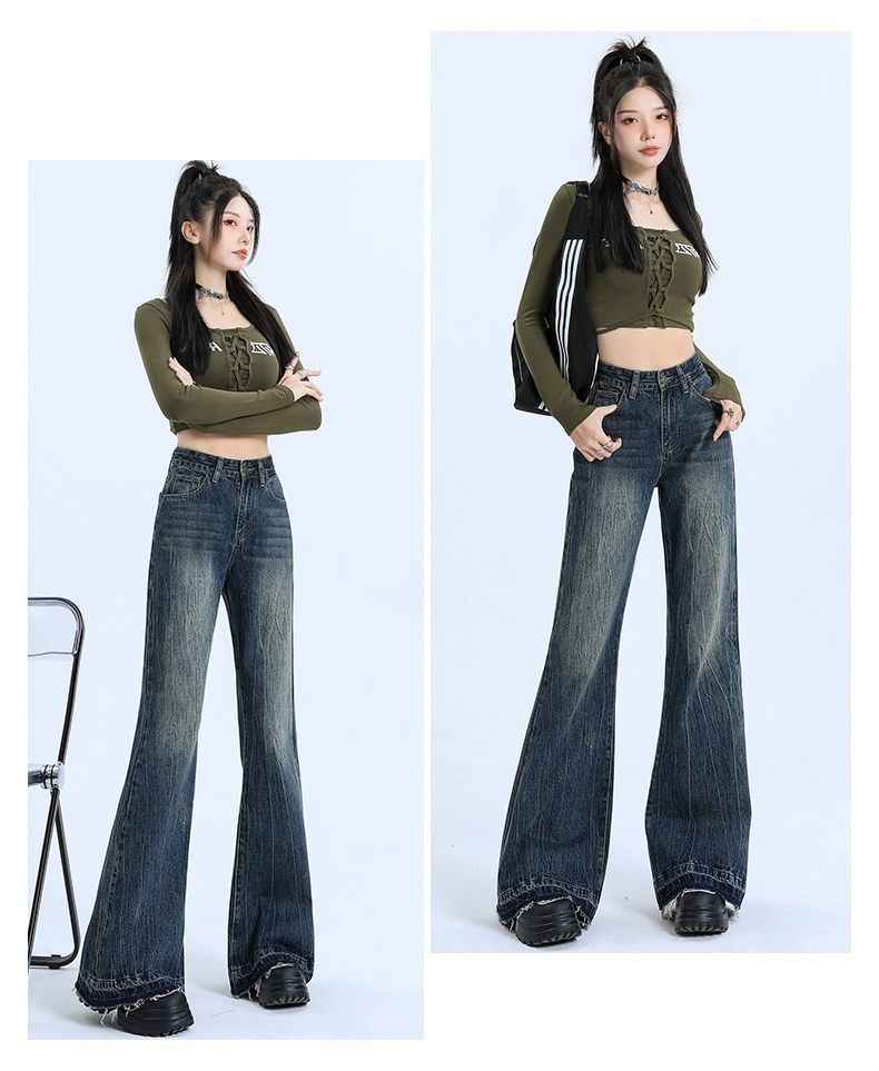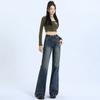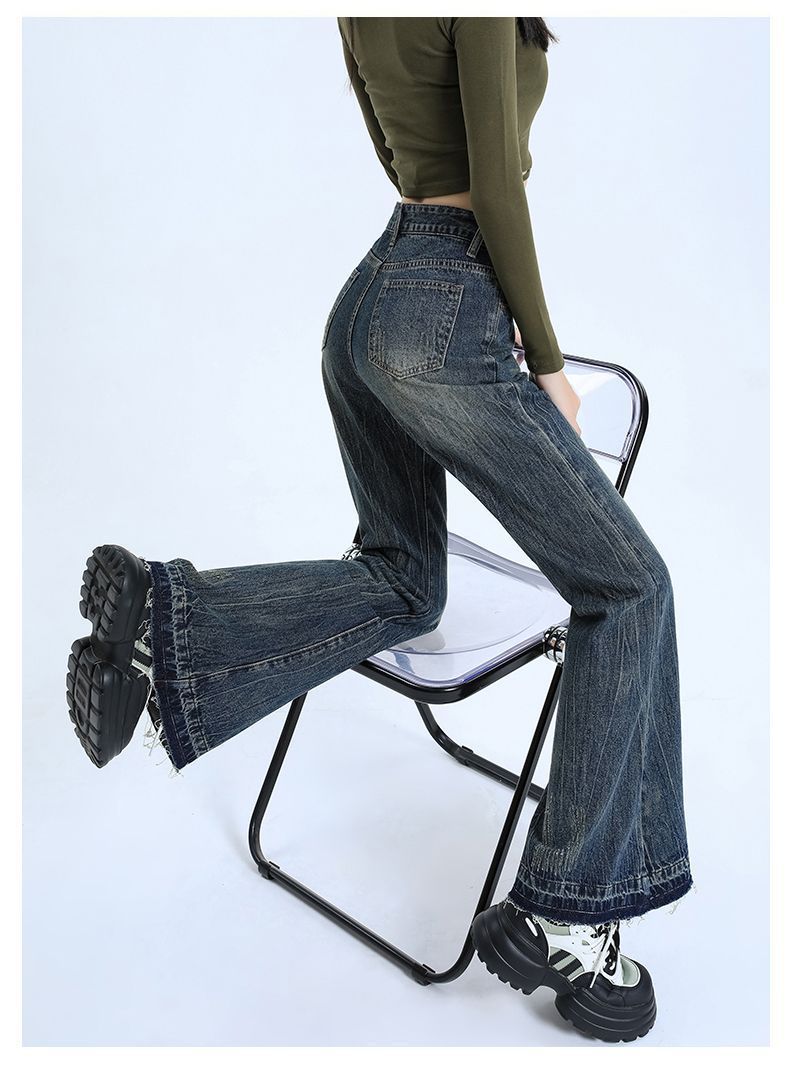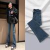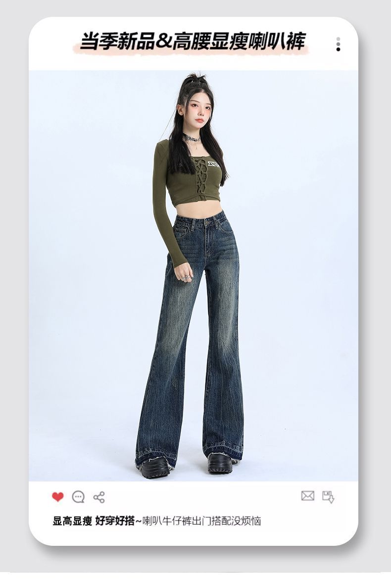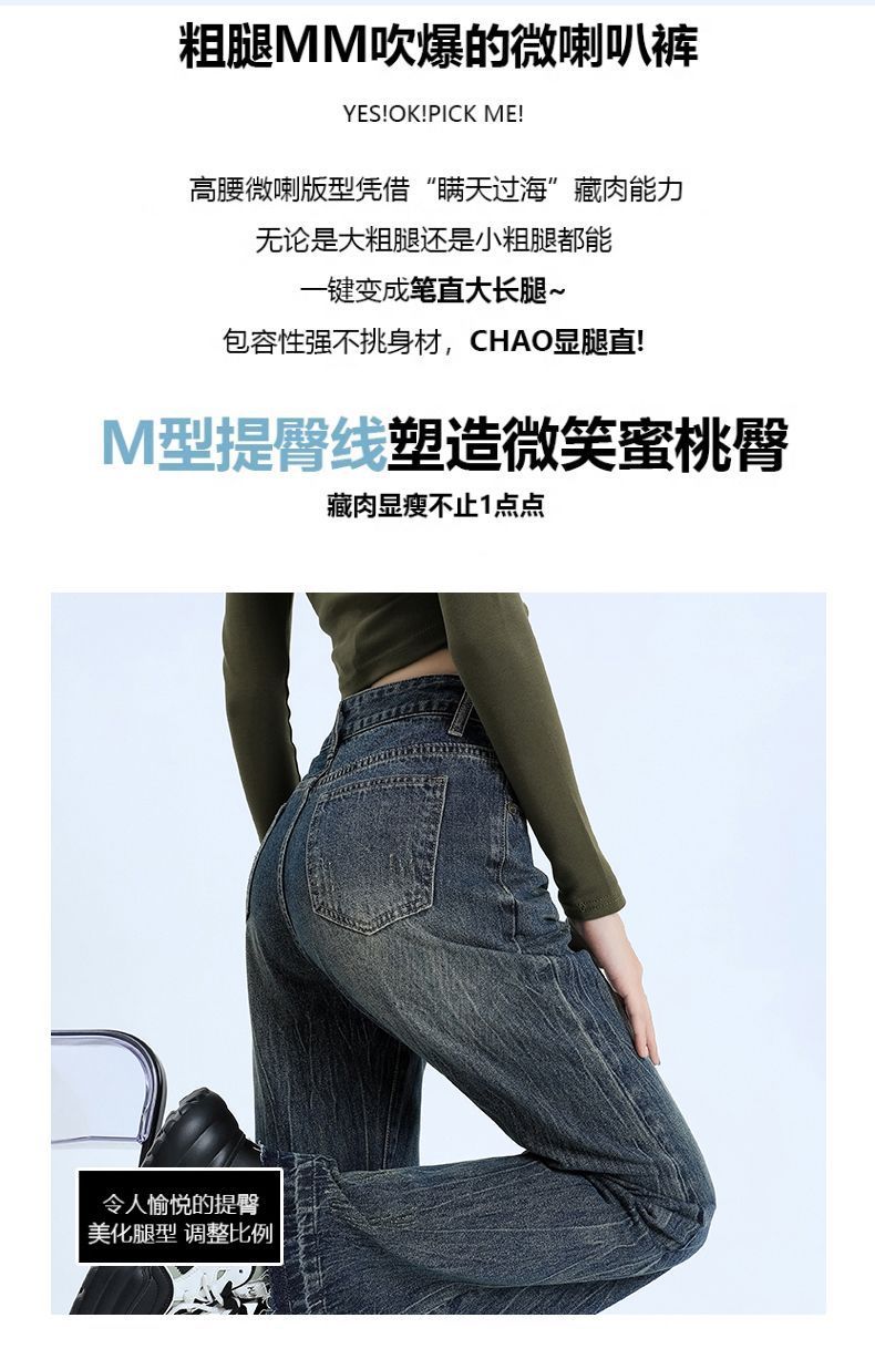 Pantalones vaqueros Micro-lar estilo americano para mujer, otoño e invierno, recién llegados, diseño de herradura oxidada, cintura alta, adelgazantes, combinables, pantalones acampanados de moda.