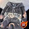 Suéter grueso de terciopelo para otoño e invierno para mujer, versión coreana de la tendencia de estudiantes Harajuku estilo BF, chaqueta holgada con capucha y manga larga súper caliente.