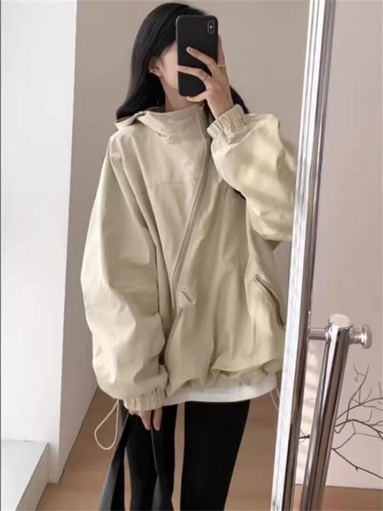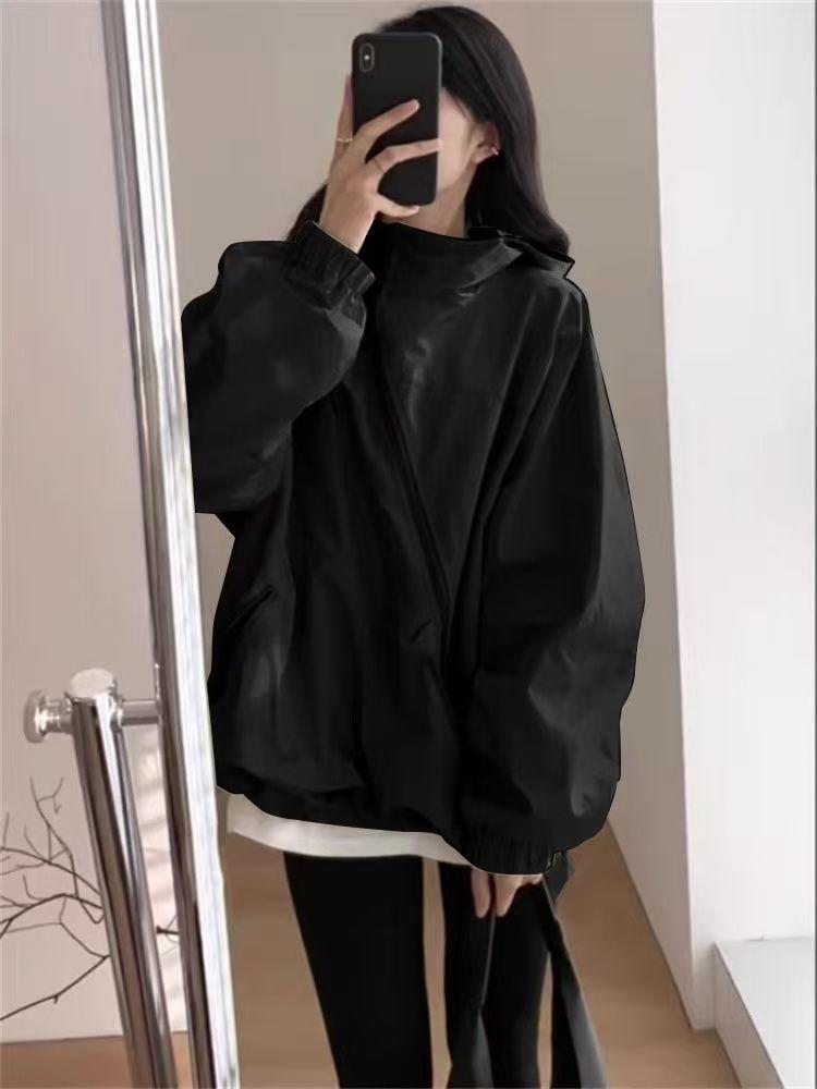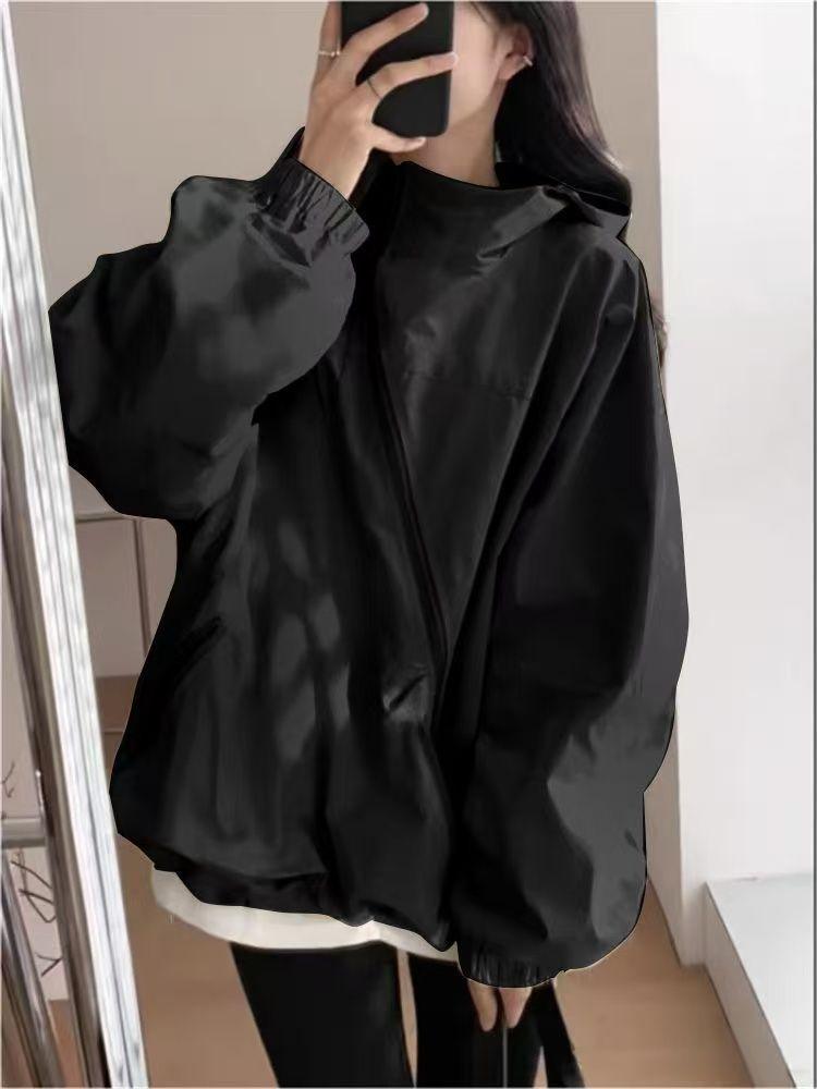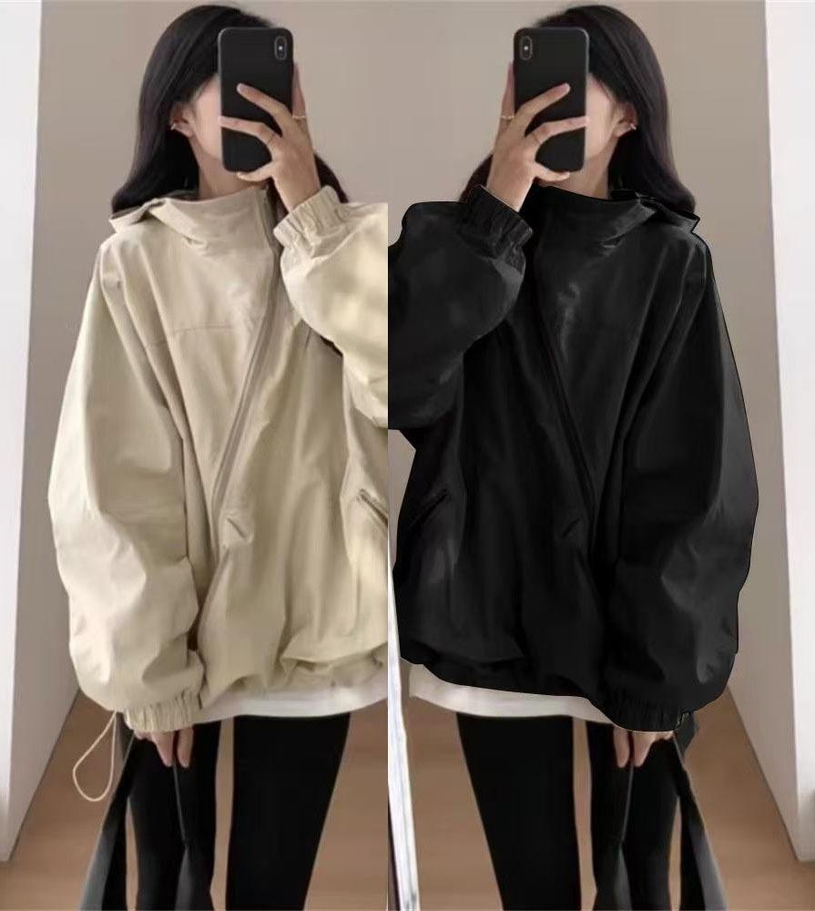 Chaqueta cortavientos personalizada para mujer, estilo coreano 2025 nuevo estilo delgado, chaqueta holgada con capucha para ropa de trabajo