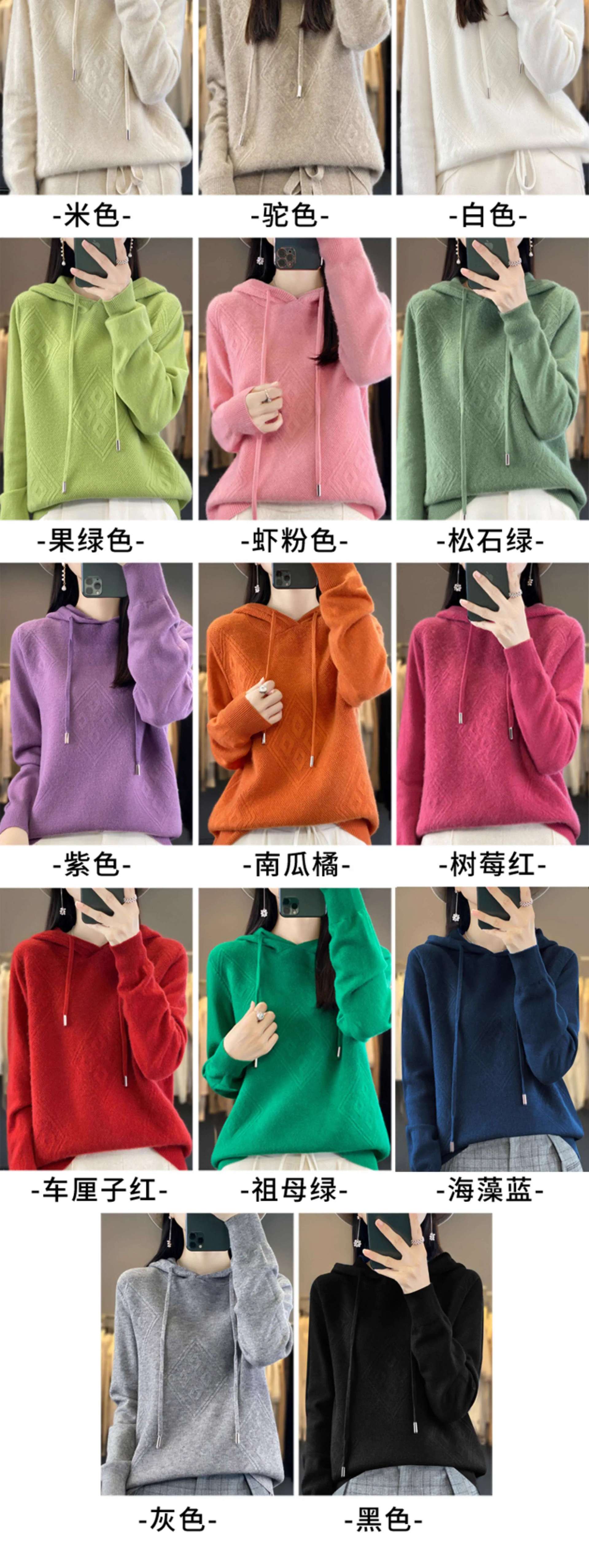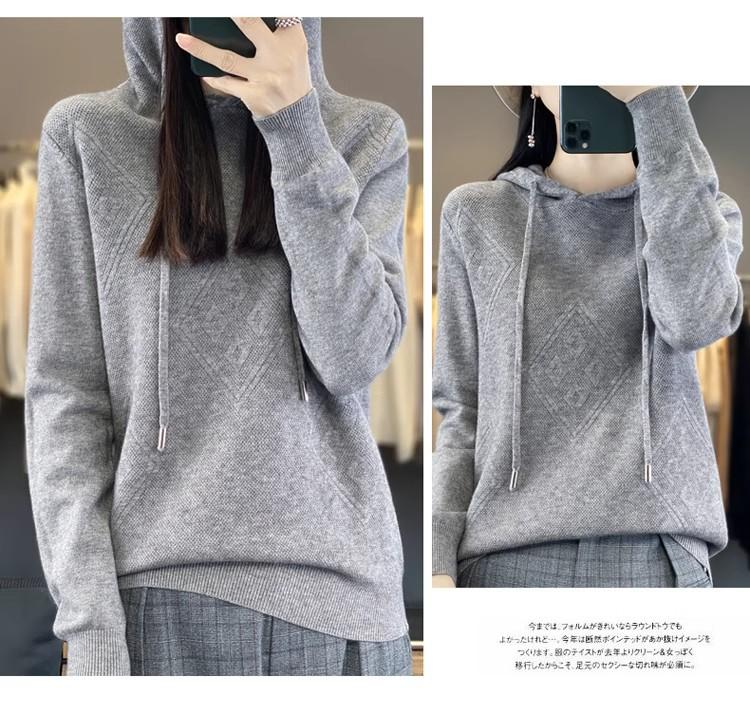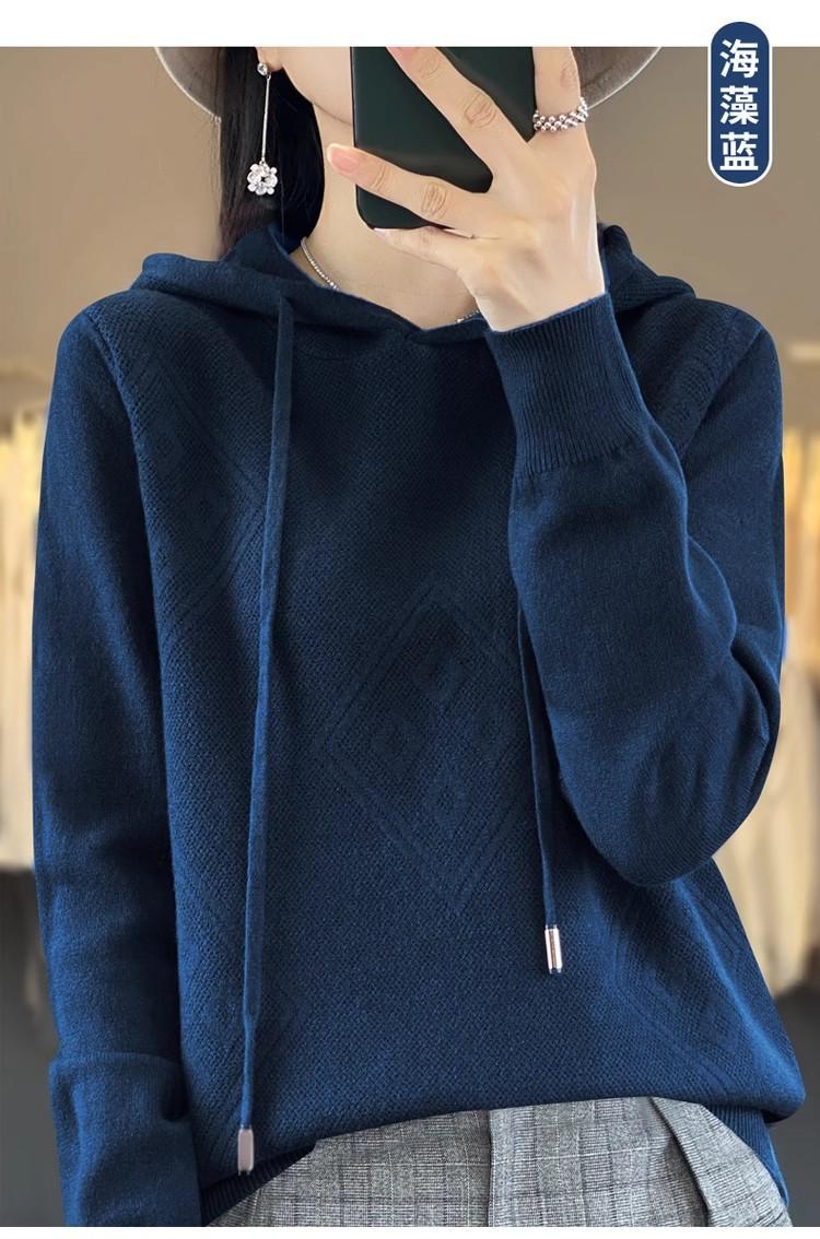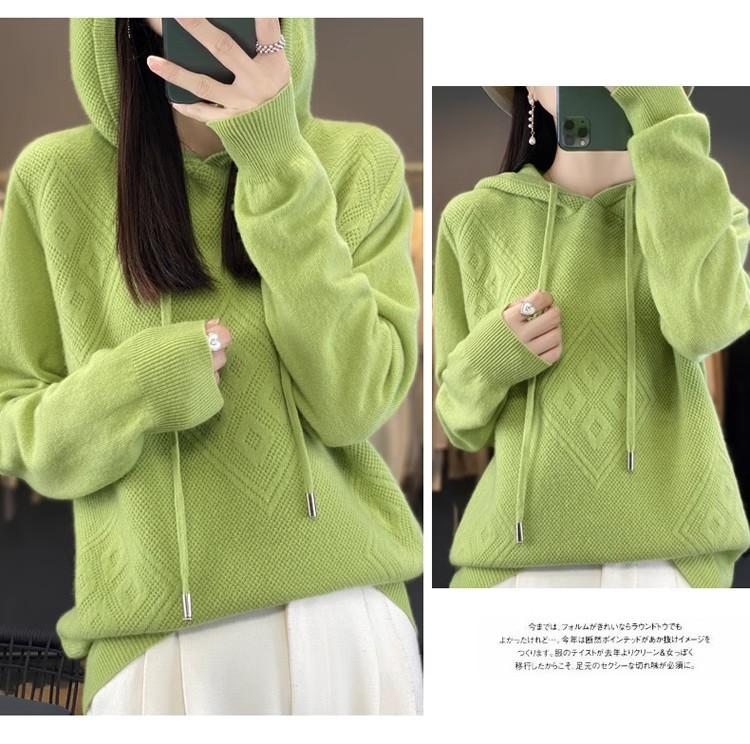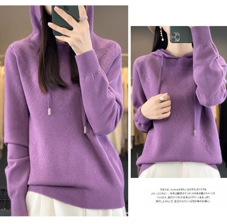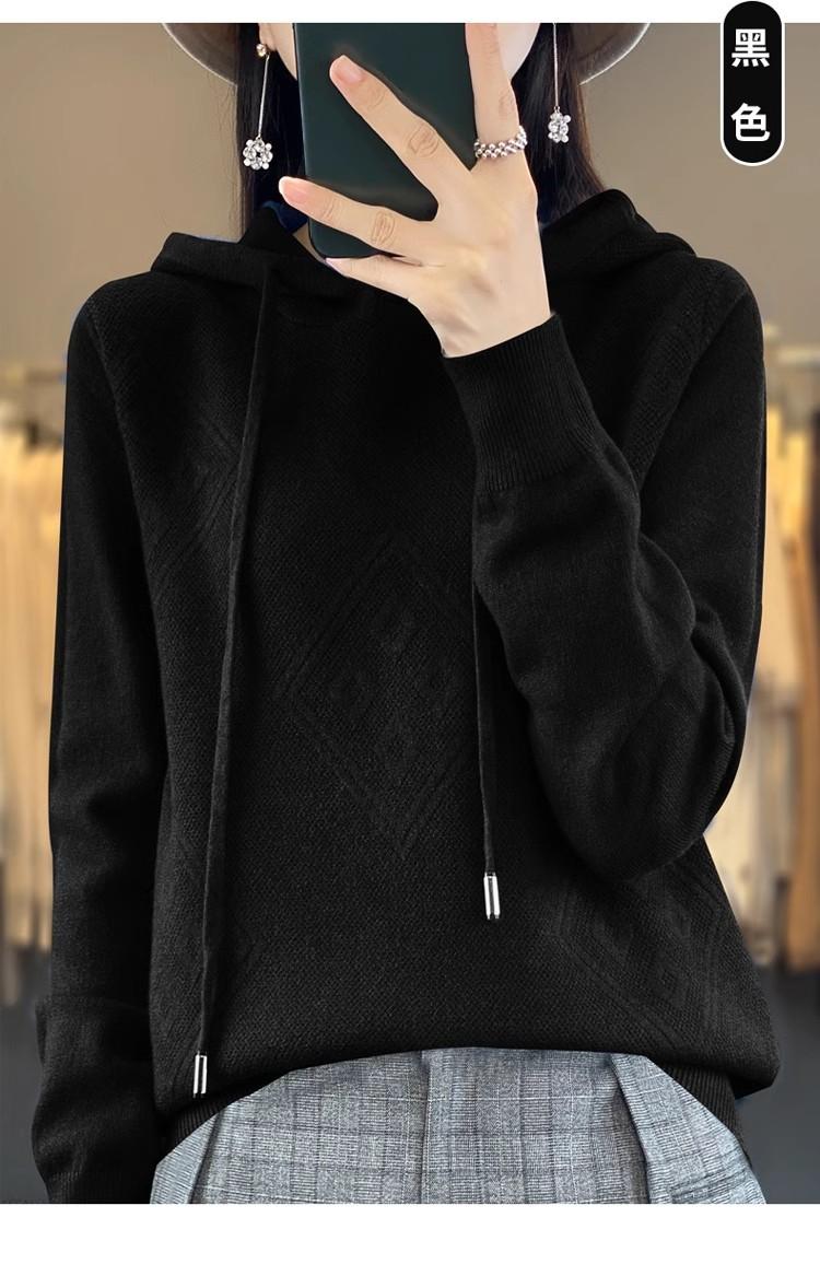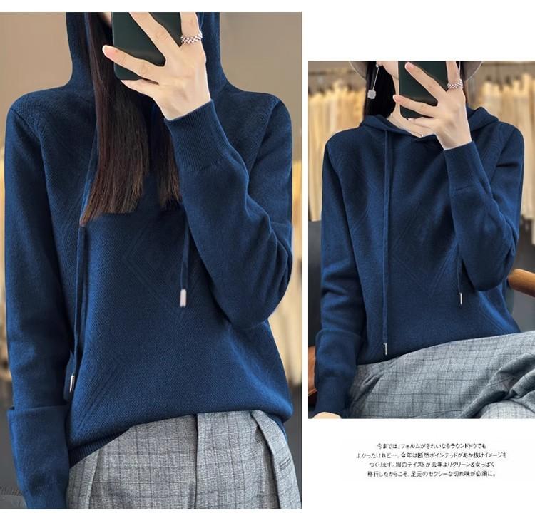 Suéter de punto con capucha para mujer, suéter holgado, camisa básica, prenda exterior de color liso que combina con todo, suéter de estilo informal A2407
