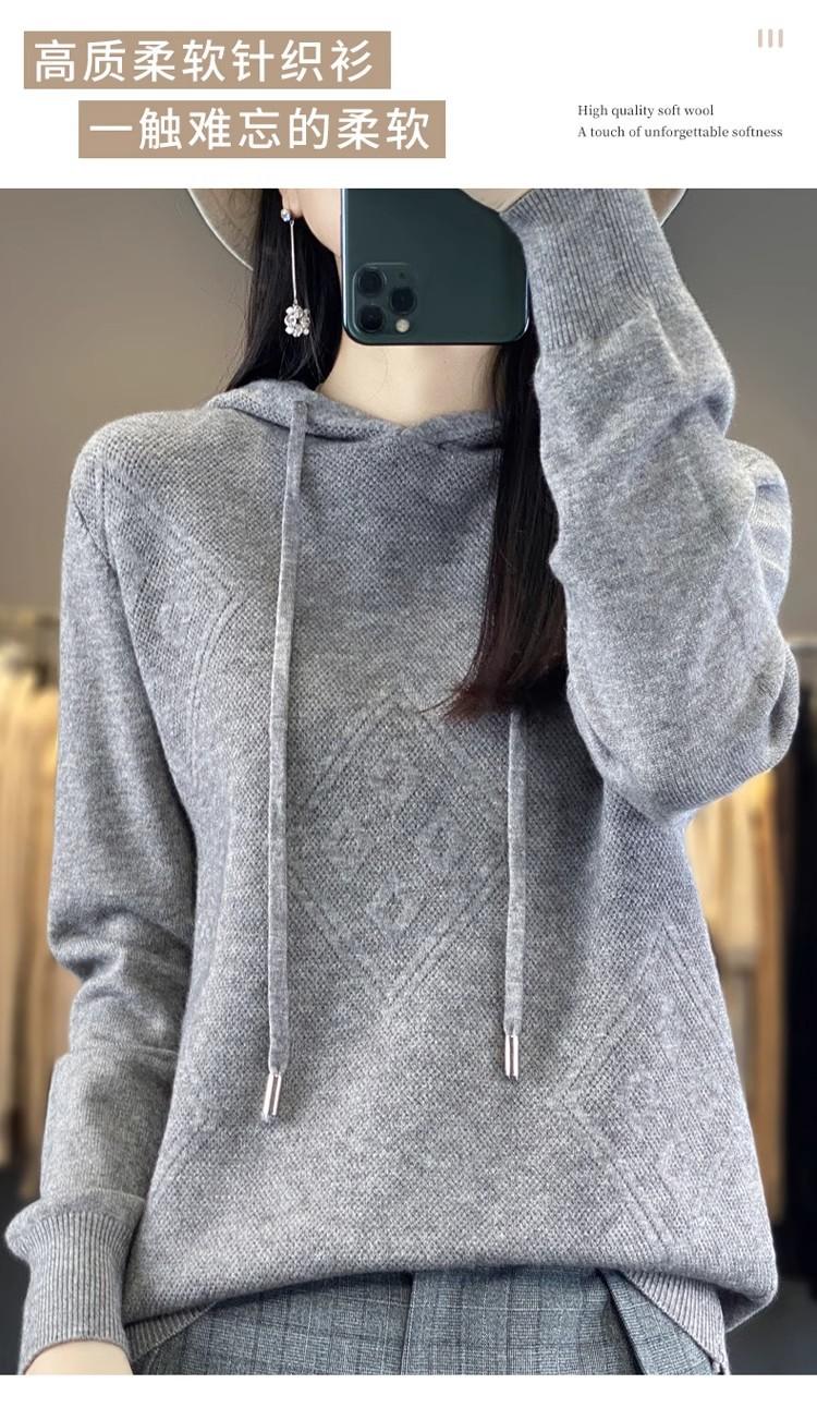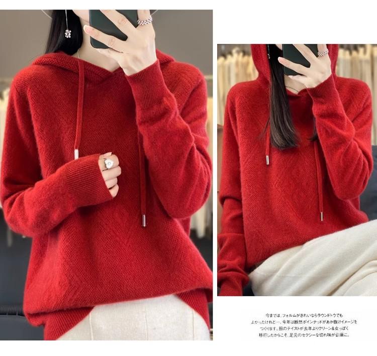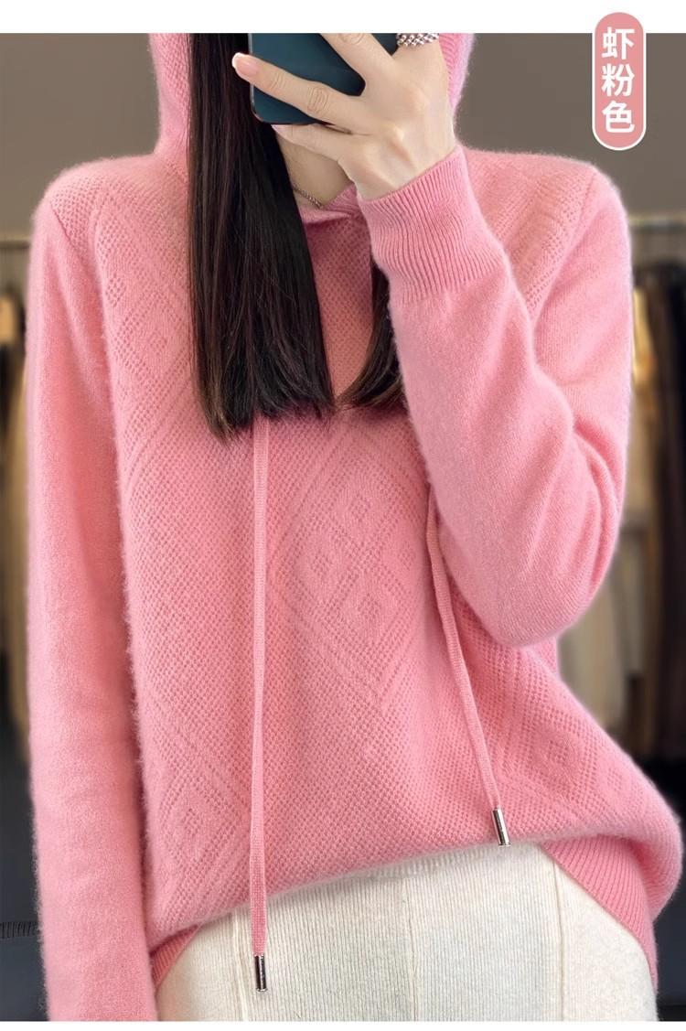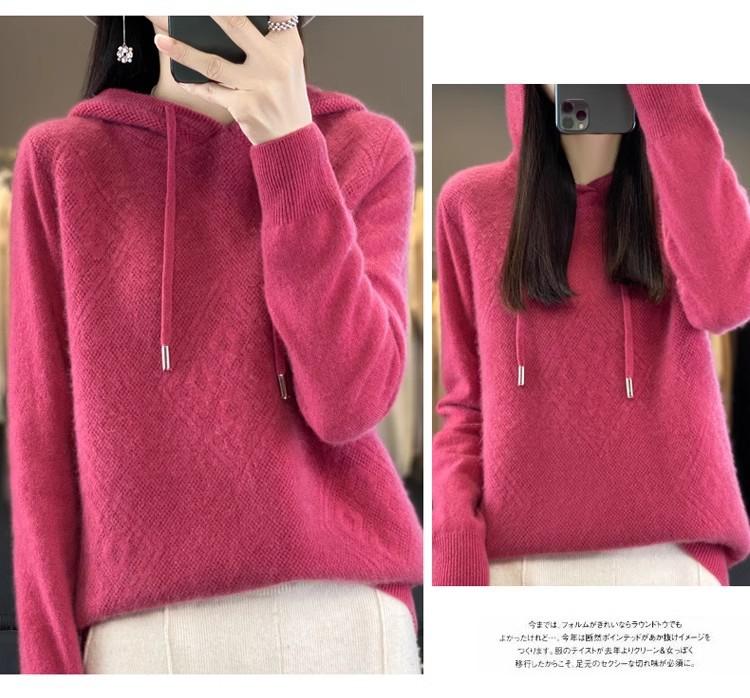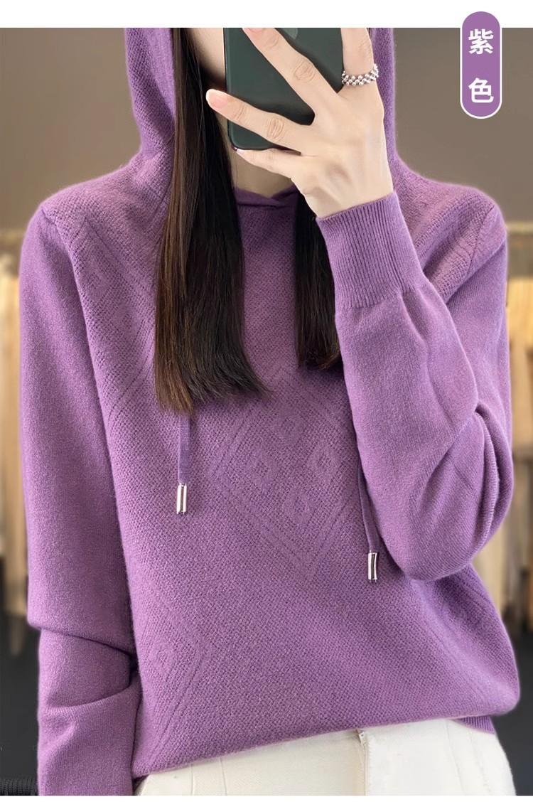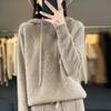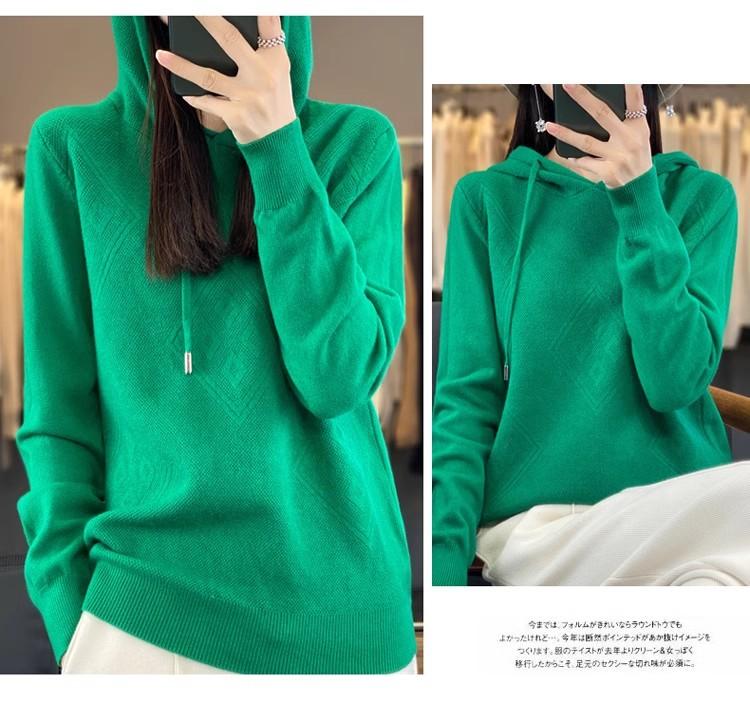 Suéter de punto con capucha para mujer, suéter holgado, camisa básica, prenda exterior de color liso que combina con todo, suéter de estilo informal A2407