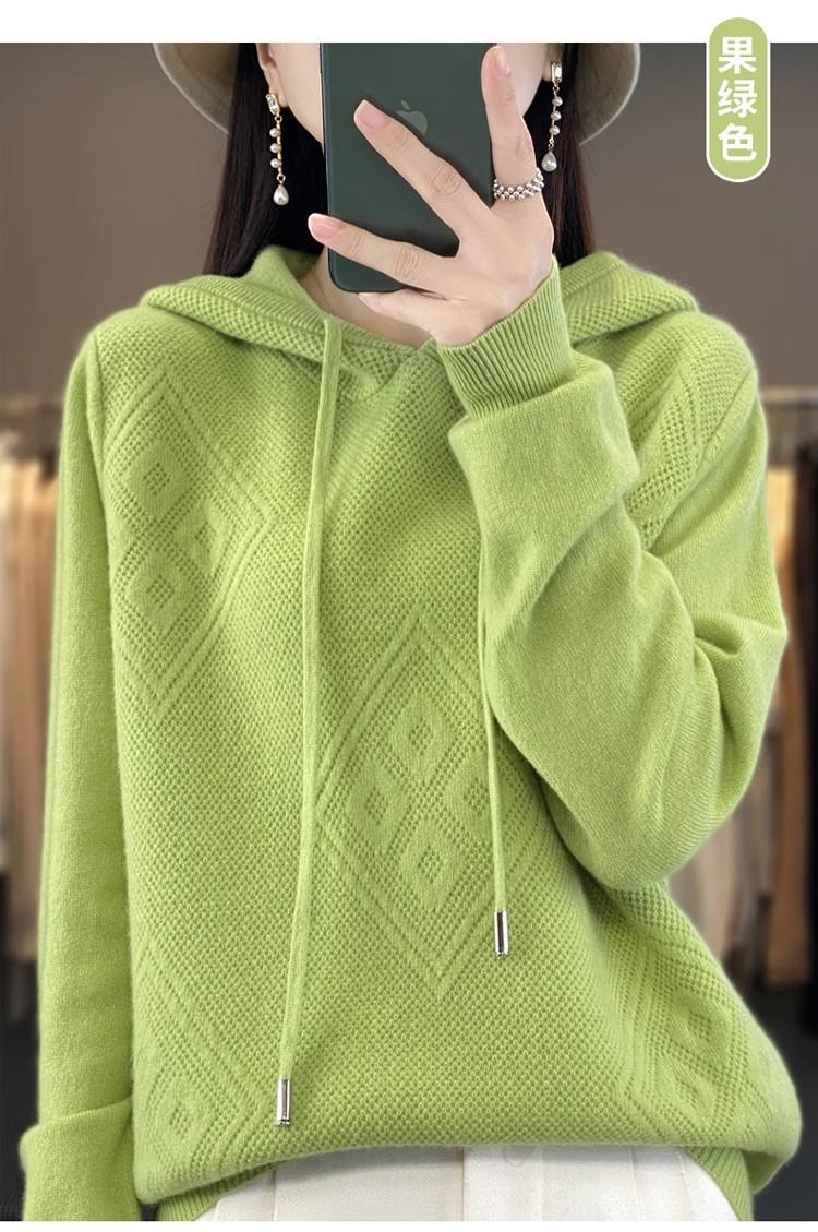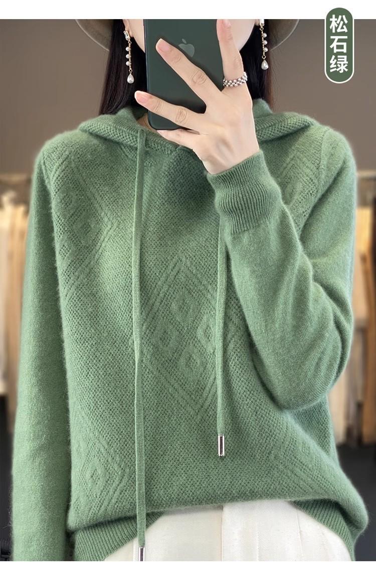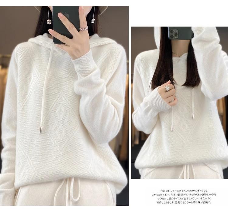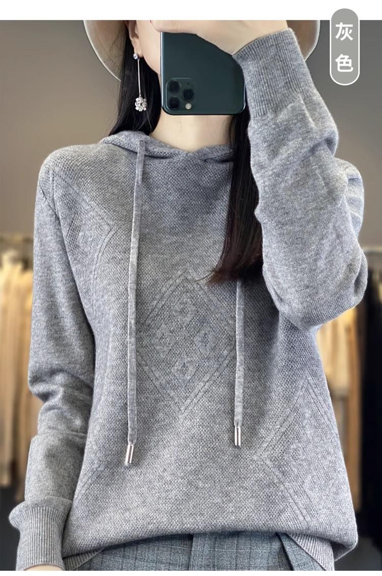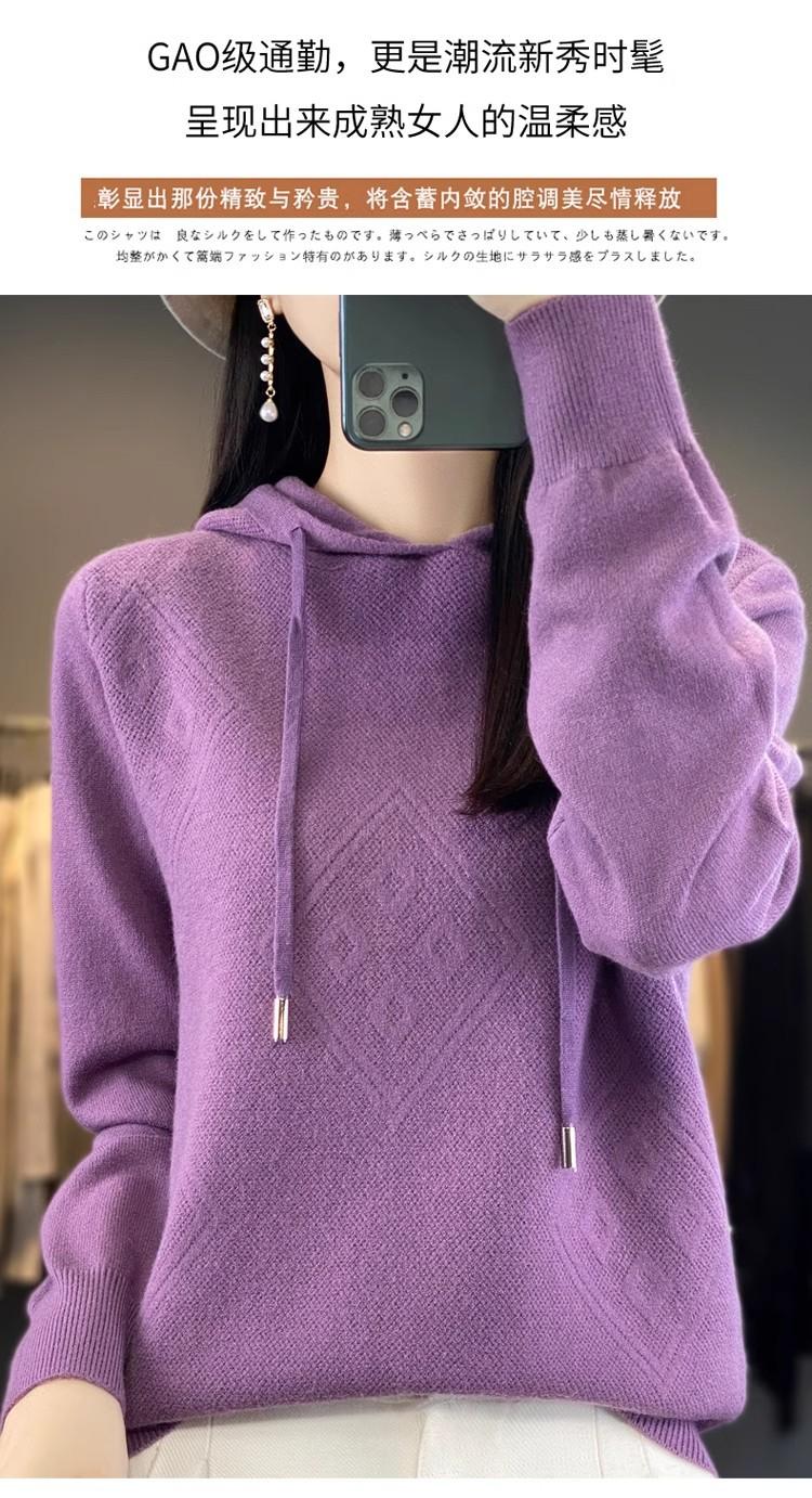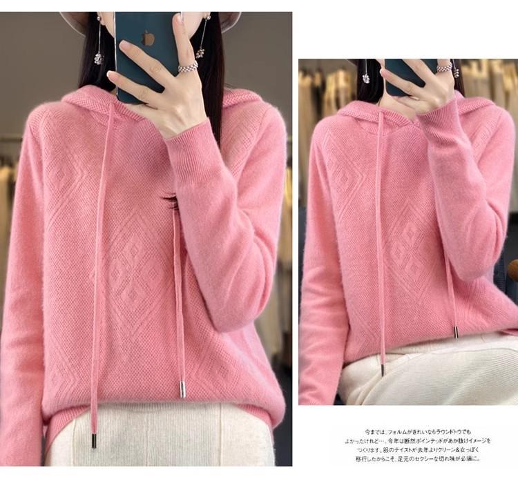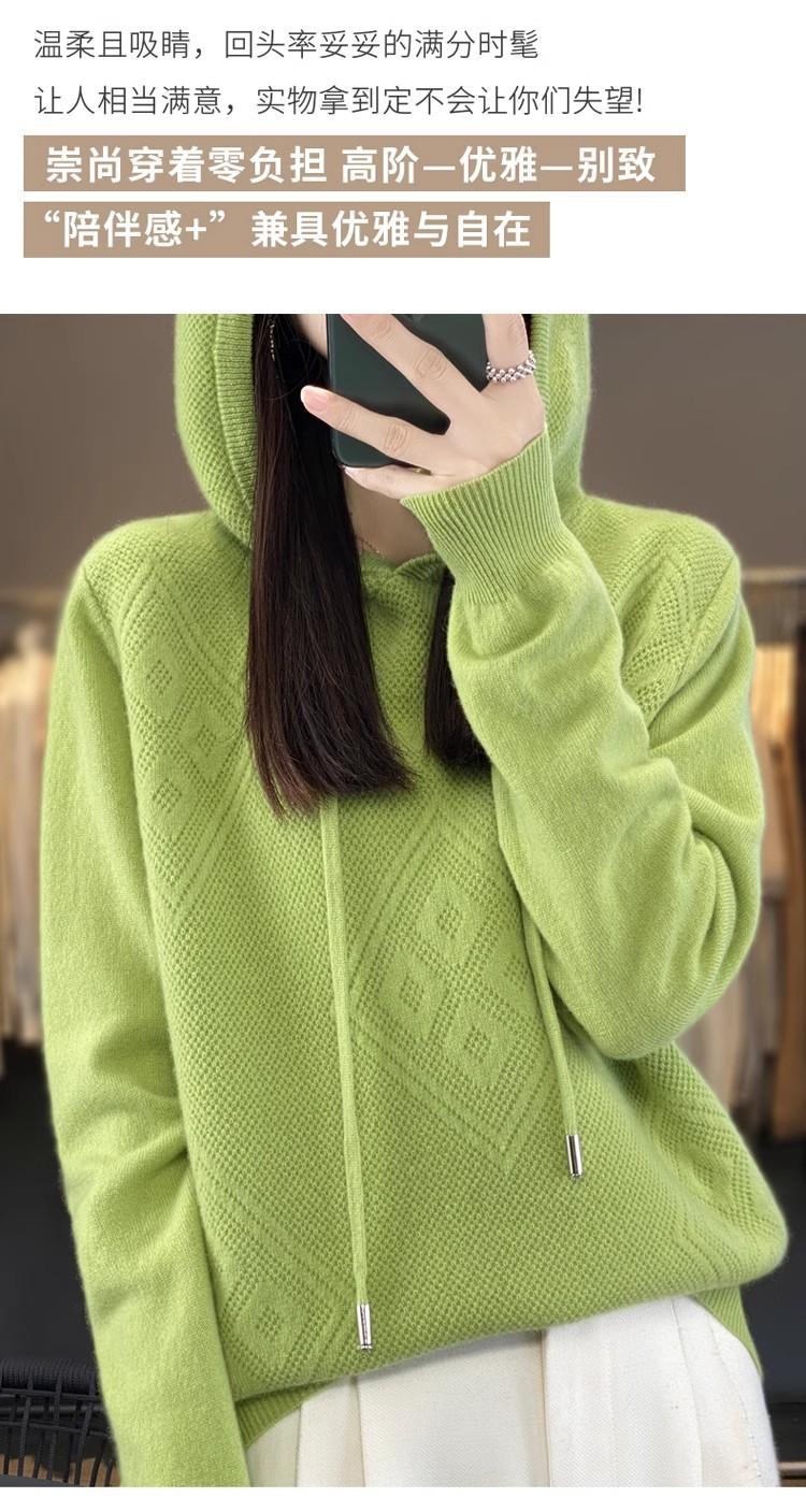 Suéter de punto con capucha para mujer, suéter holgado, camisa básica, prenda exterior de color liso que combina con todo, suéter de estilo informal A2407