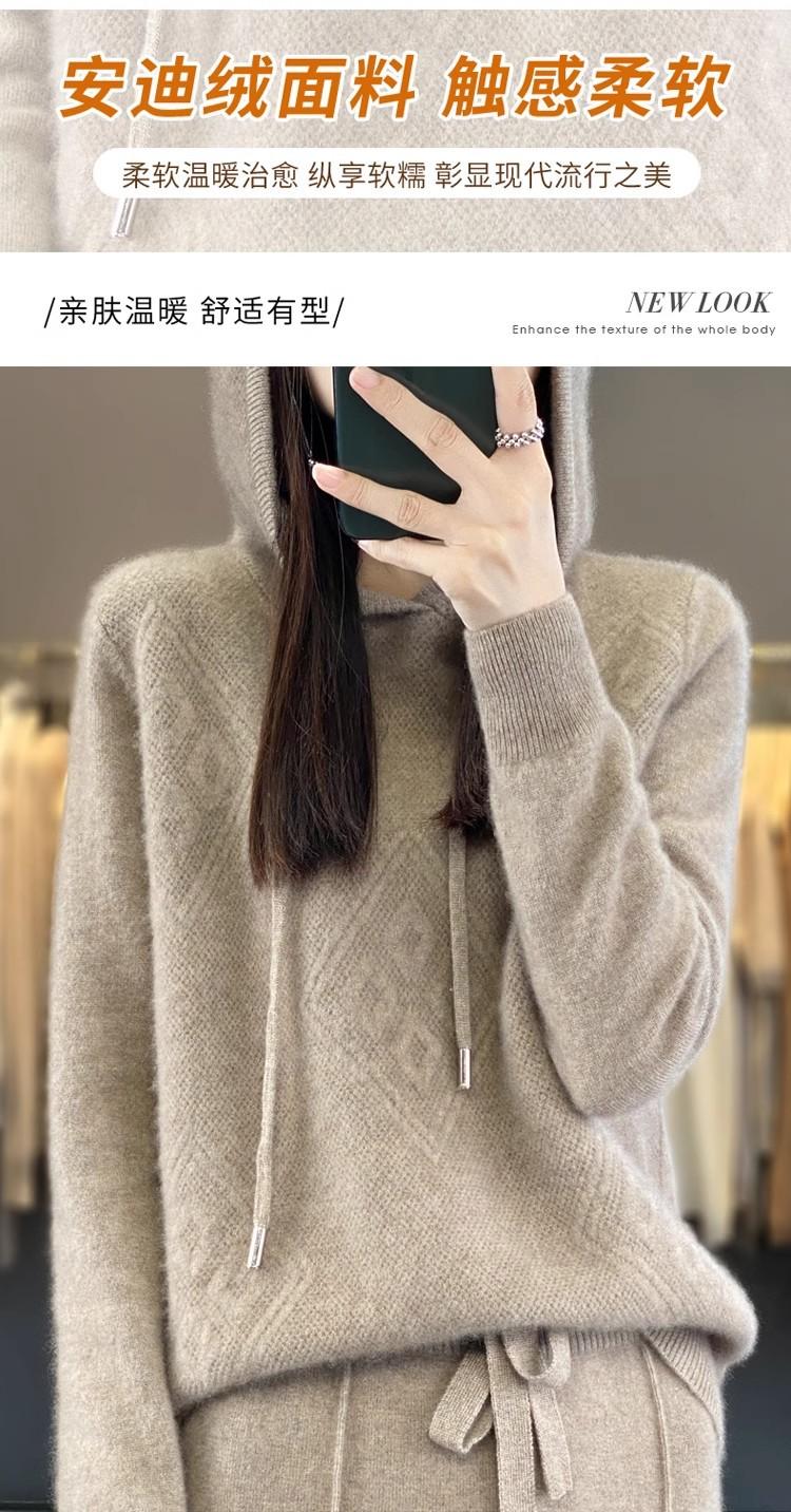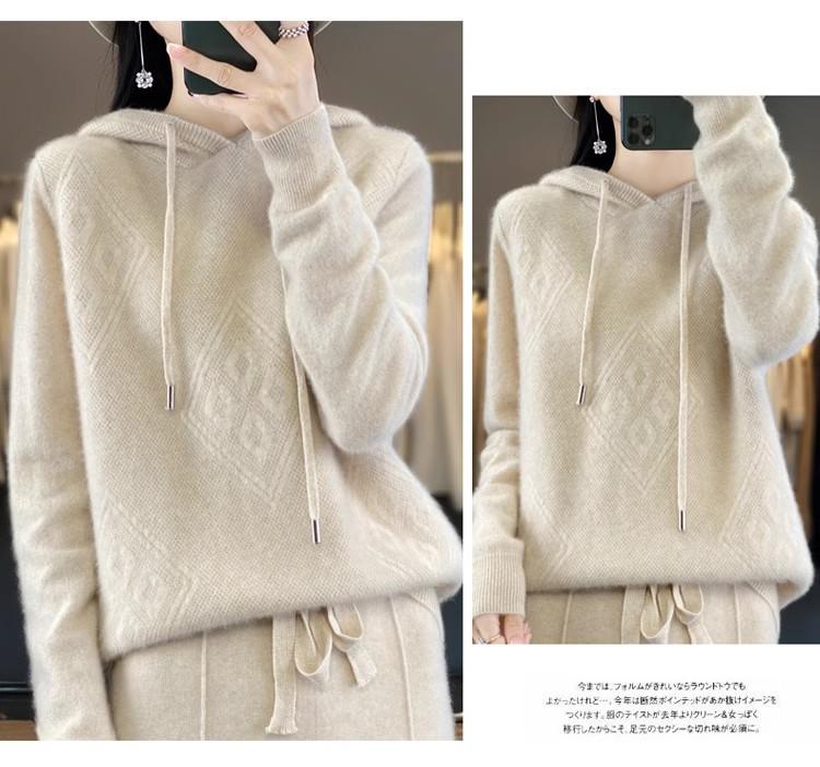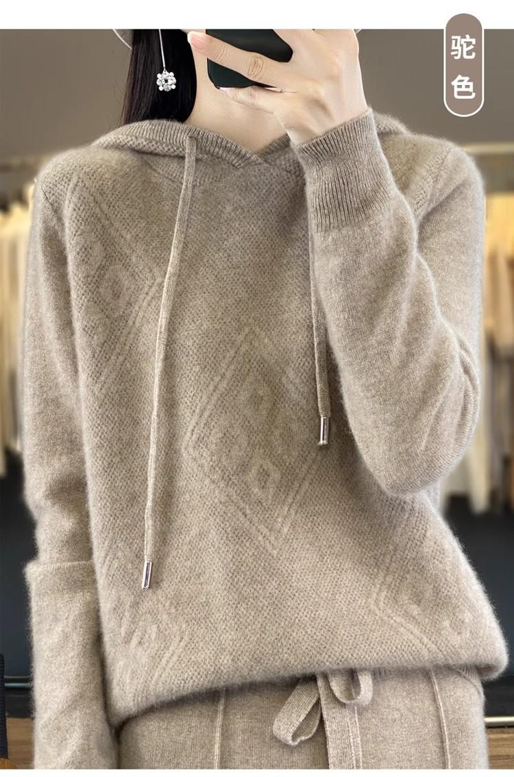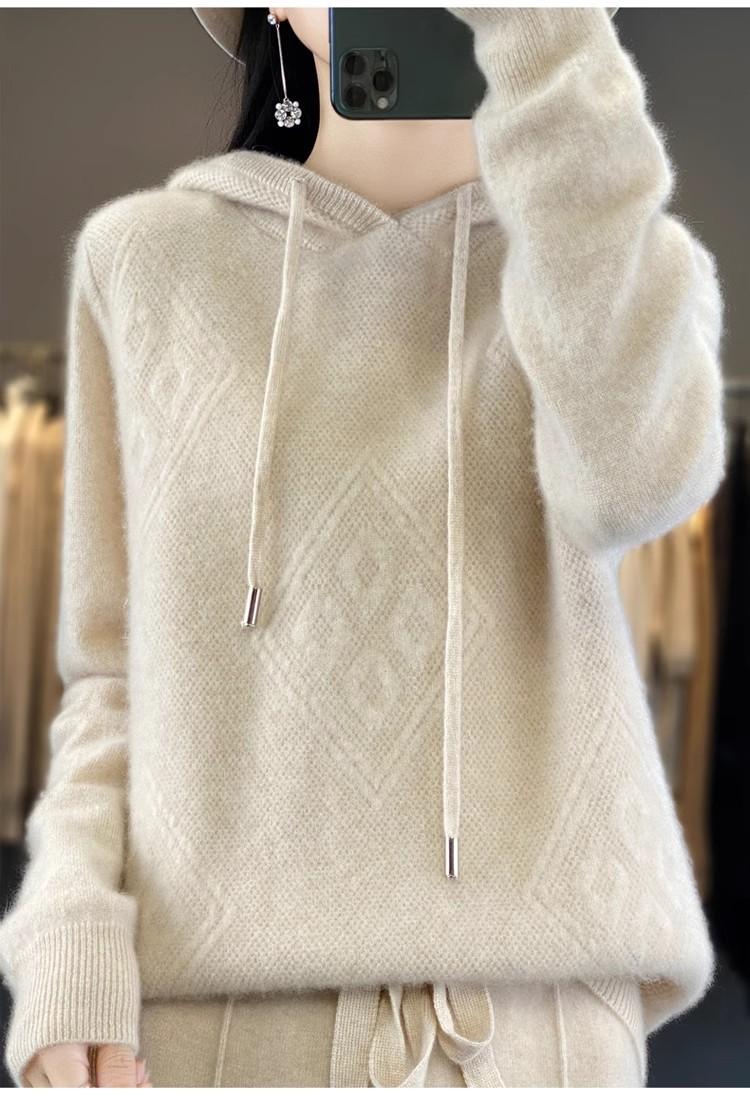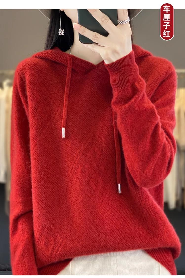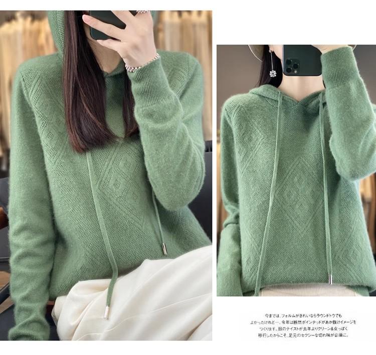 Suéter de punto con capucha para mujer, suéter holgado, camisa básica, prenda exterior de color liso que combina con todo, suéter de estilo informal A2407