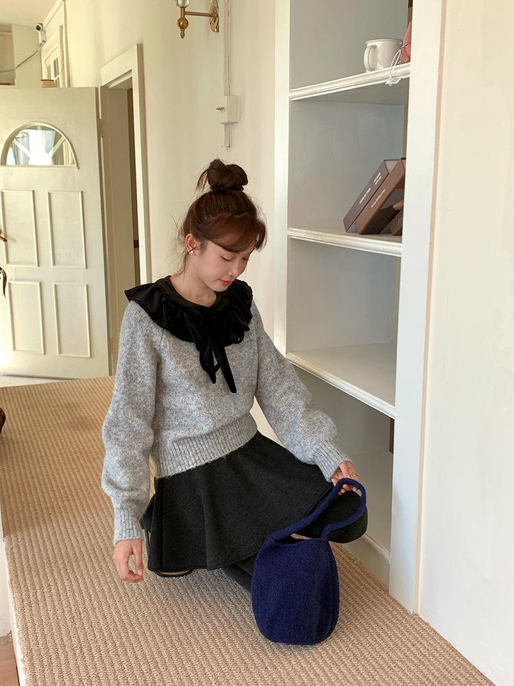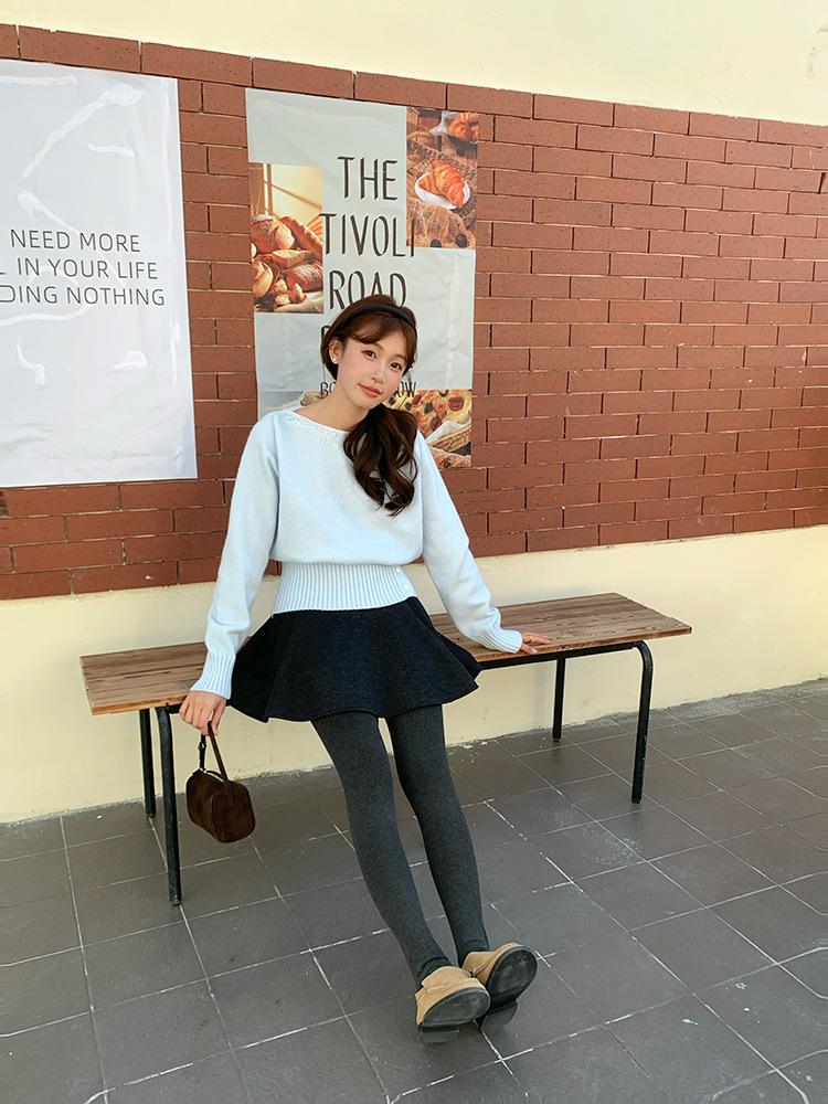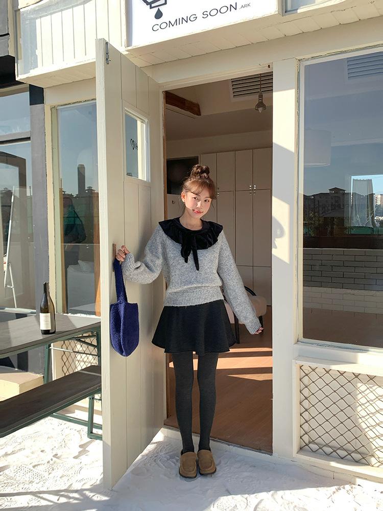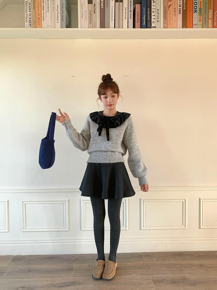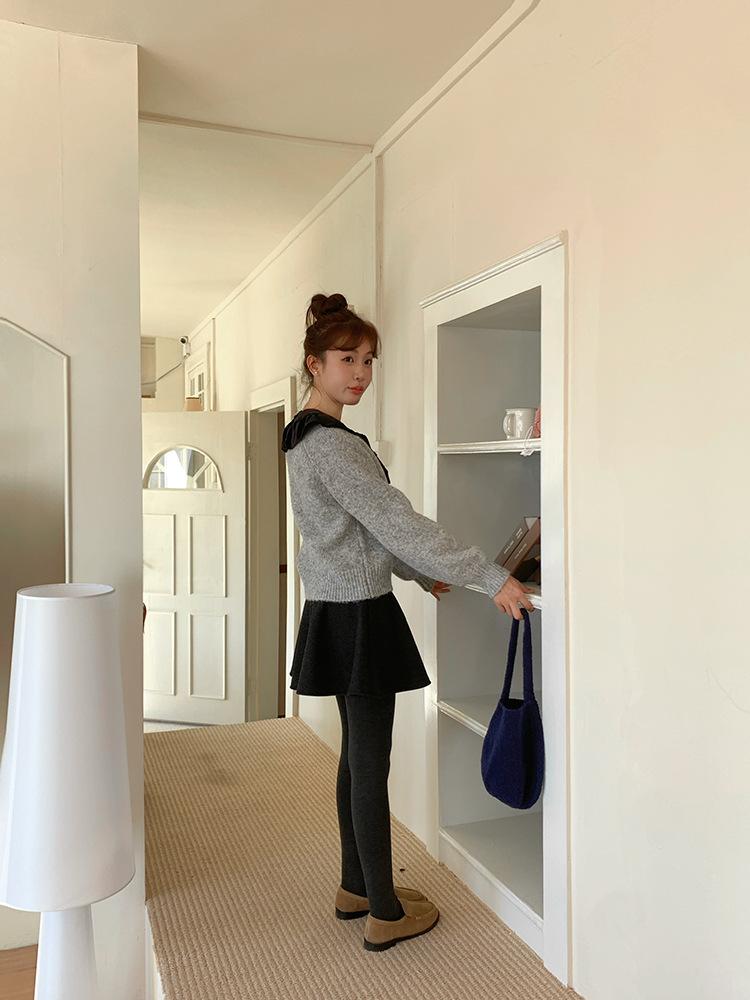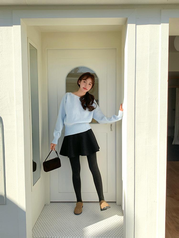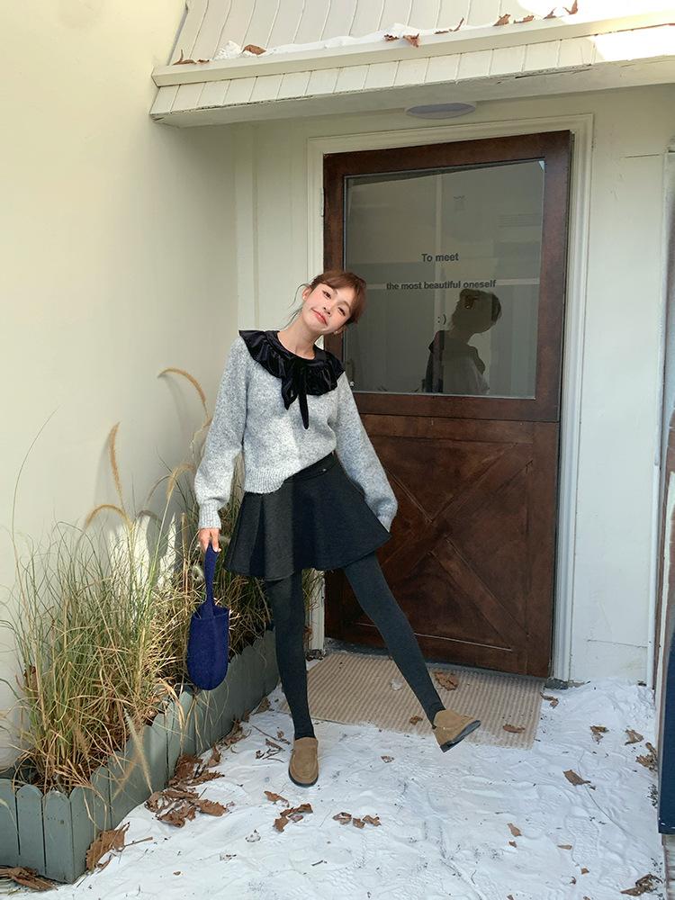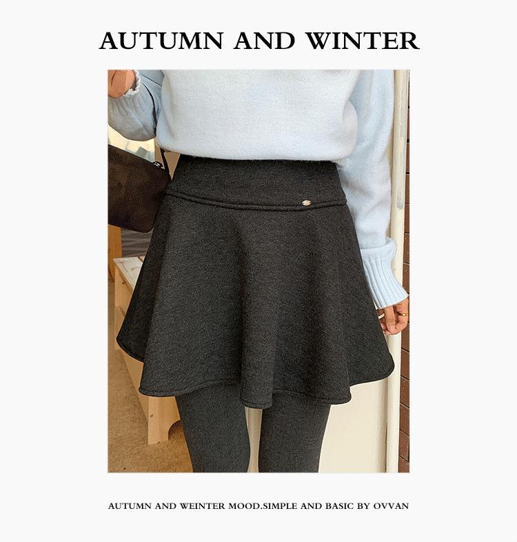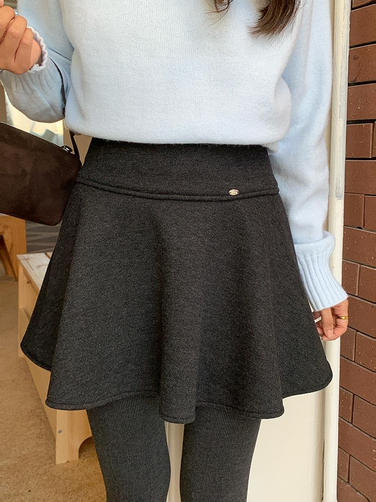 [Oufan] Falda de Lana de Cintura Alta con Temperamento Coreano para Mujer Otoño e Invierno Falda Corta Anti-transparente Línea A 2662