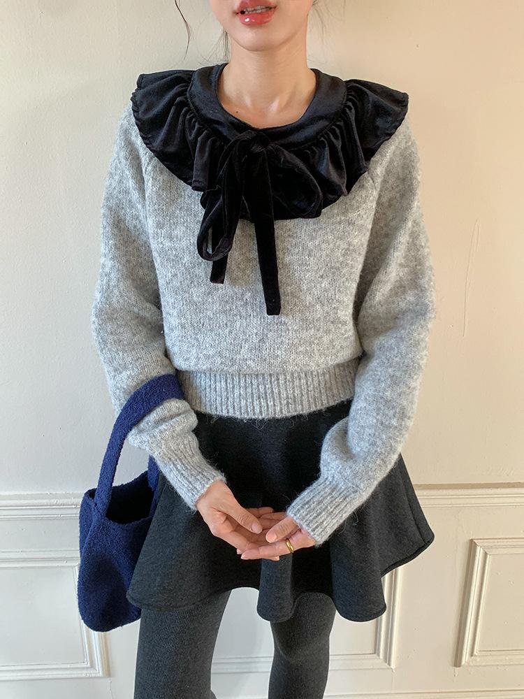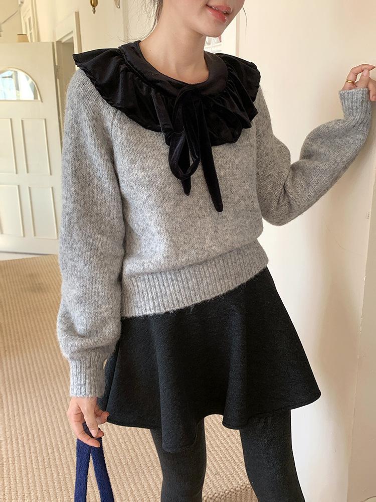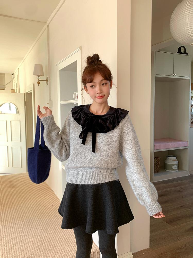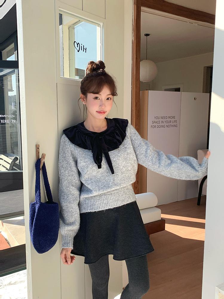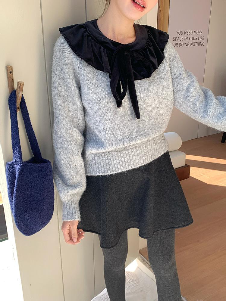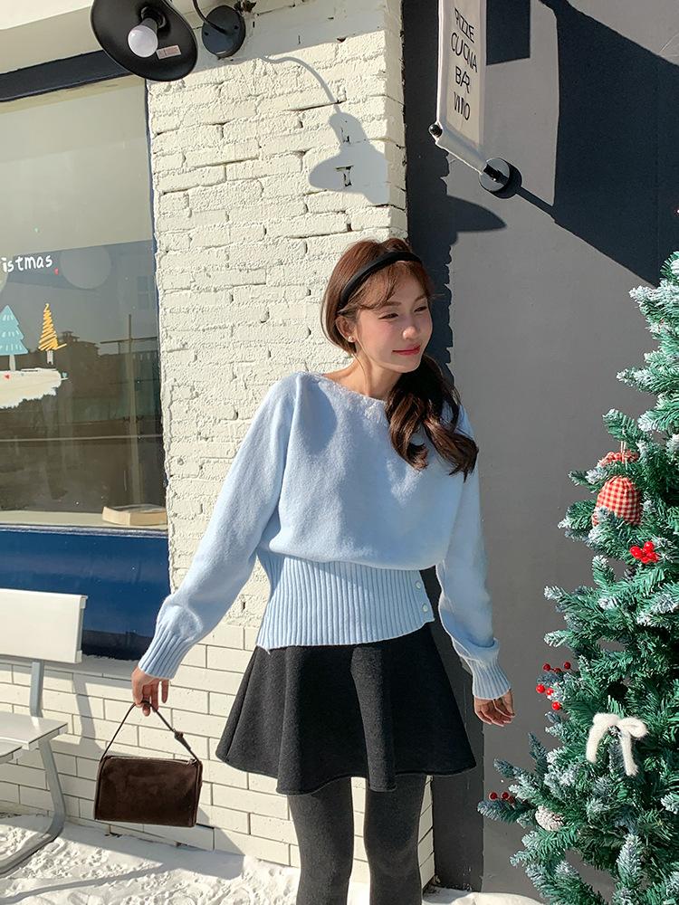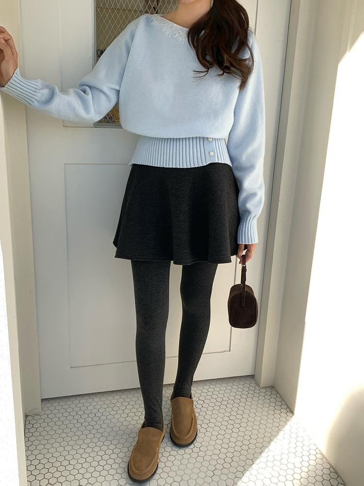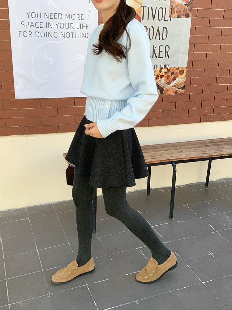 [Oufan] Falda de Lana de Cintura Alta con Temperamento Coreano para Mujer Otoño e Invierno Falda Corta Anti-transparente Línea A 2662