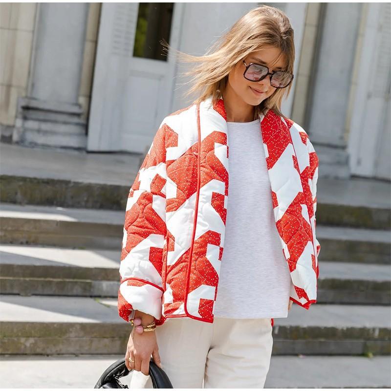 Otoño e invierno, nuevo cárdigan elegante de moda con cuello amazónico transfronterizo, ropa cálida para mujer, abrigo de algodón estampado de fábrica