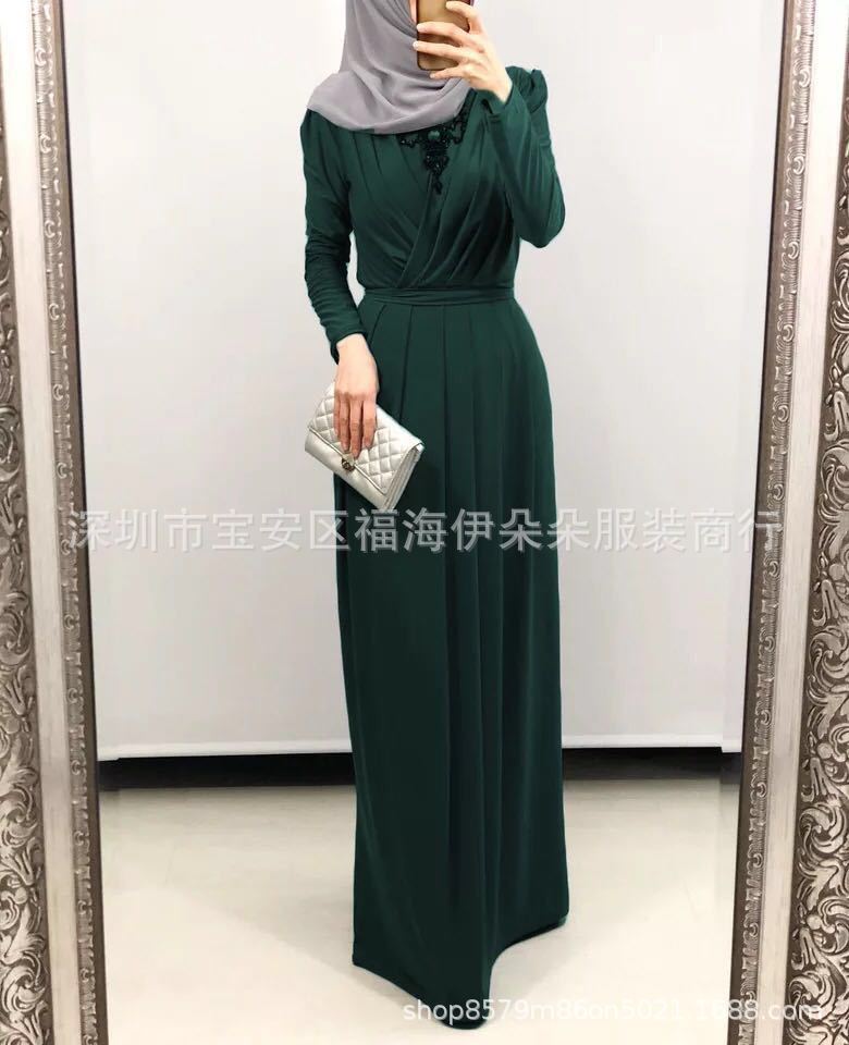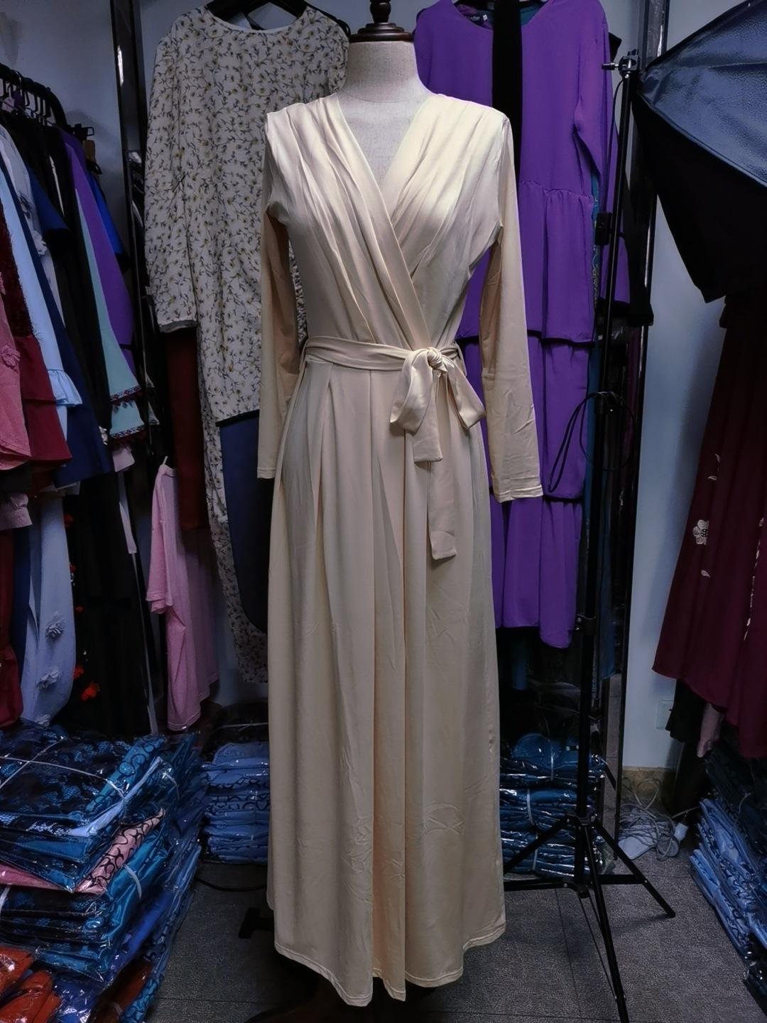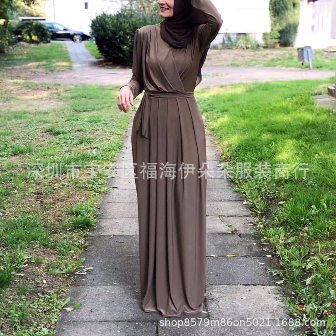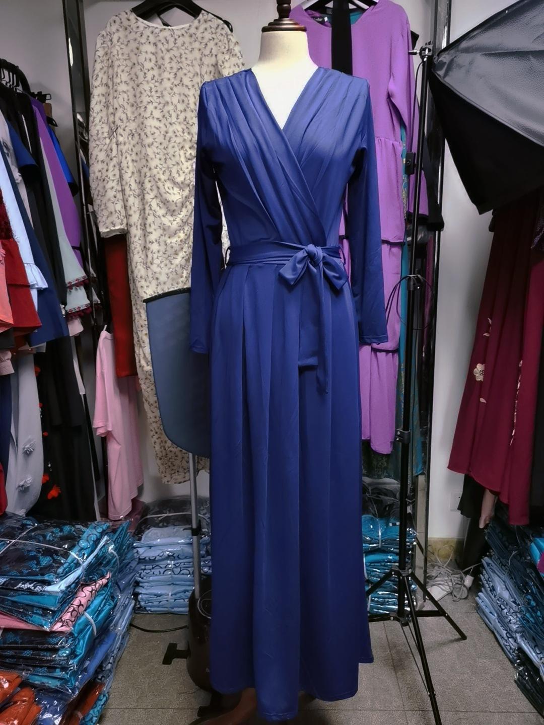 Yiduoduo Europeo y Americano Nuevo Vestido Bata Cuello en V Cordones Plisado Falda Larga hasta el Piso 19206 Ropa de Trabajo