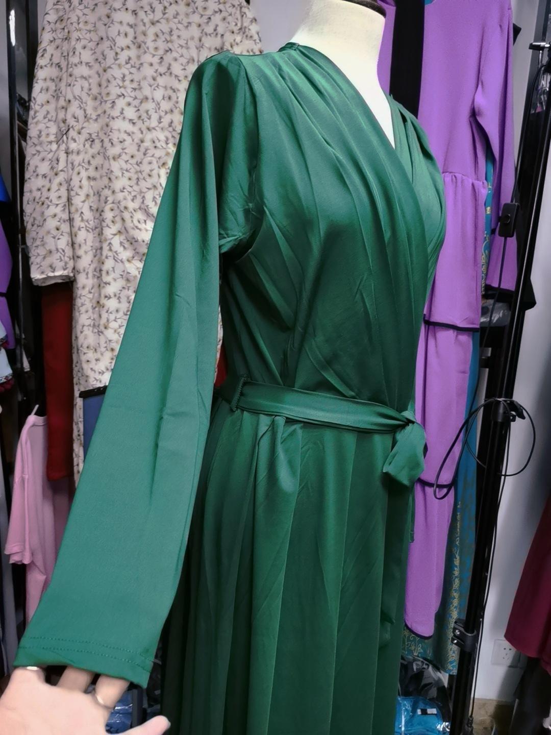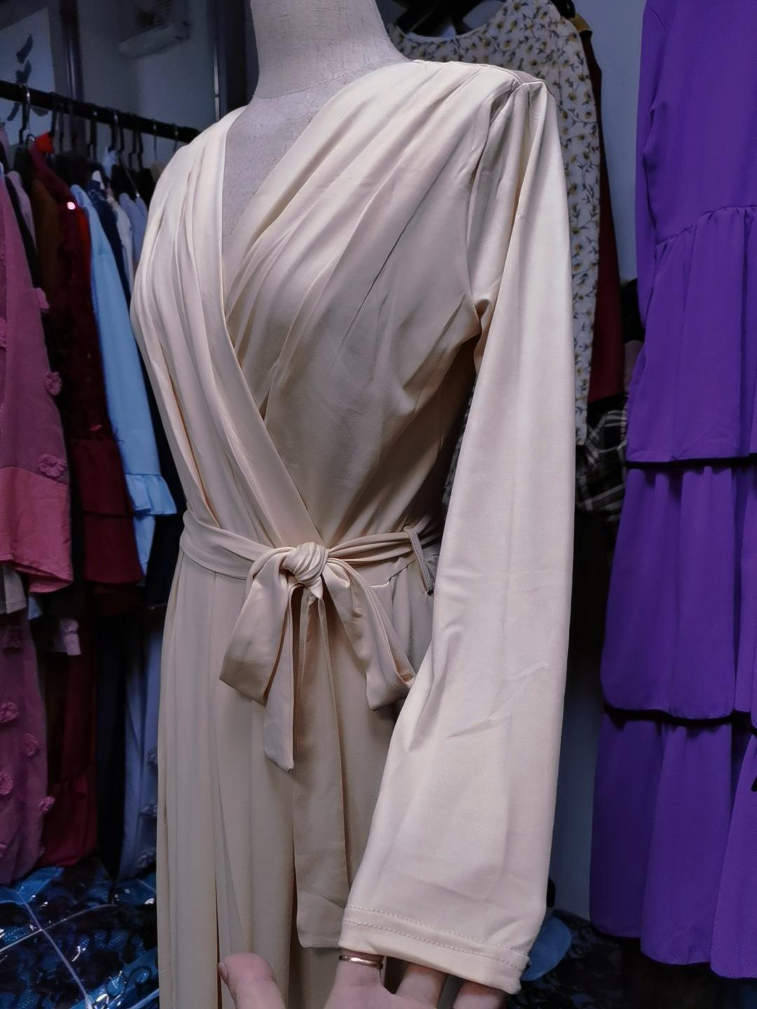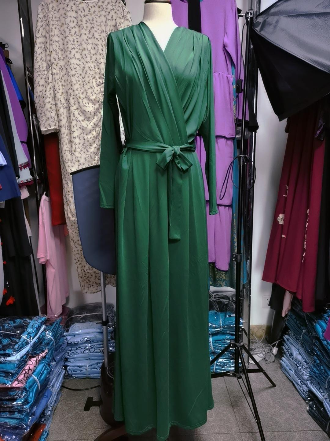 Yiduoduo Europeo y Americano Nuevo Vestido Bata Cuello en V Cordones Plisado Falda Larga hasta el Piso 19206 Ropa de Trabajo