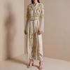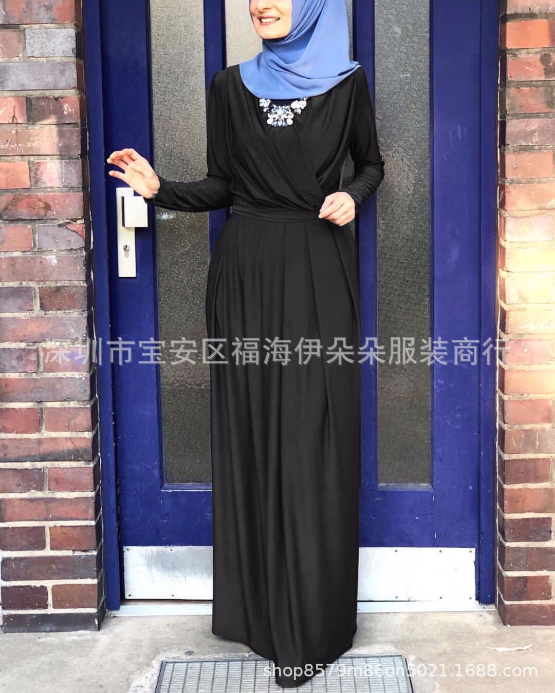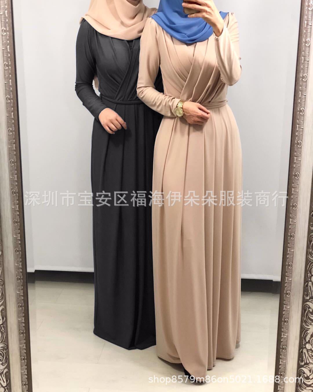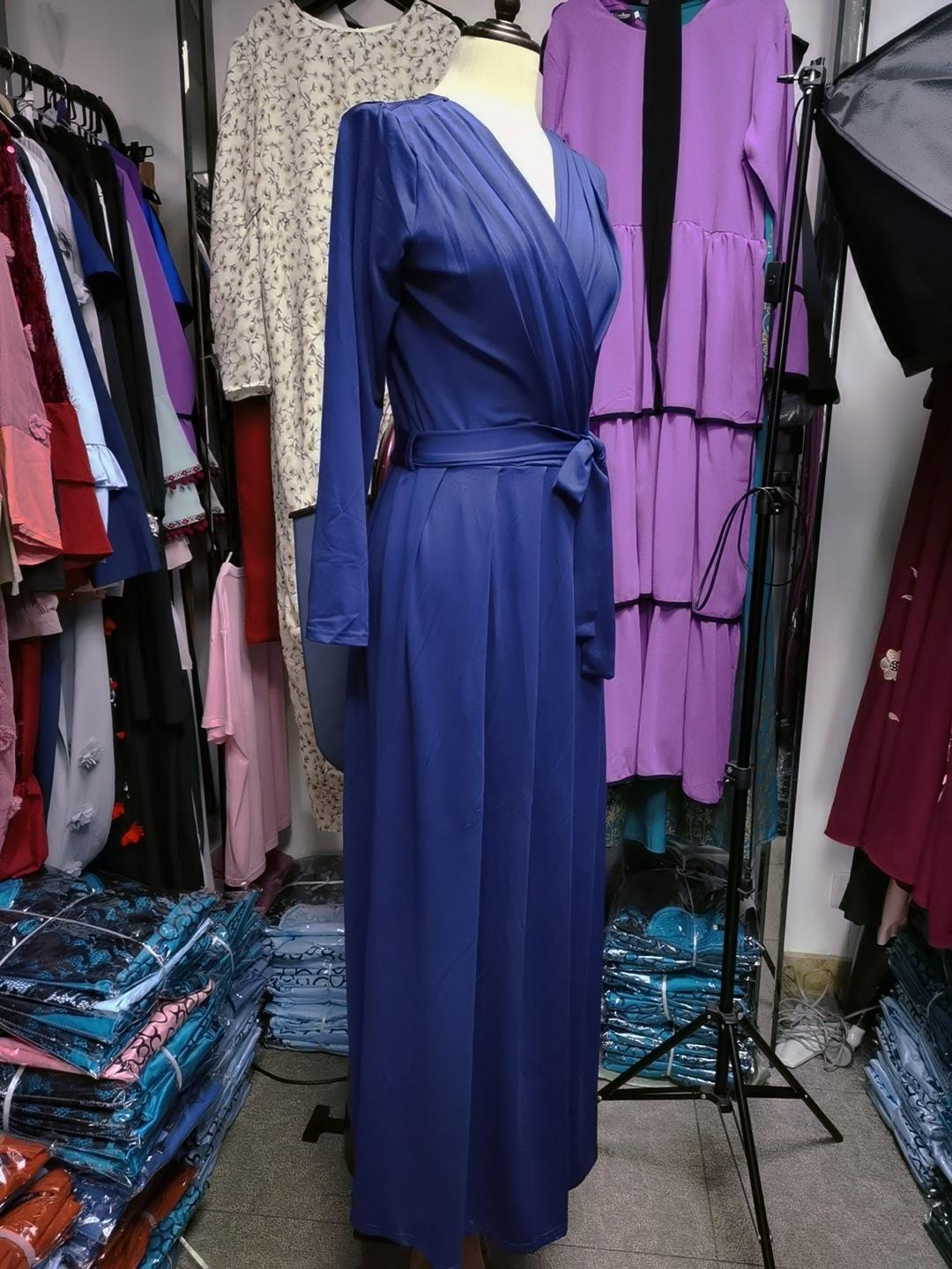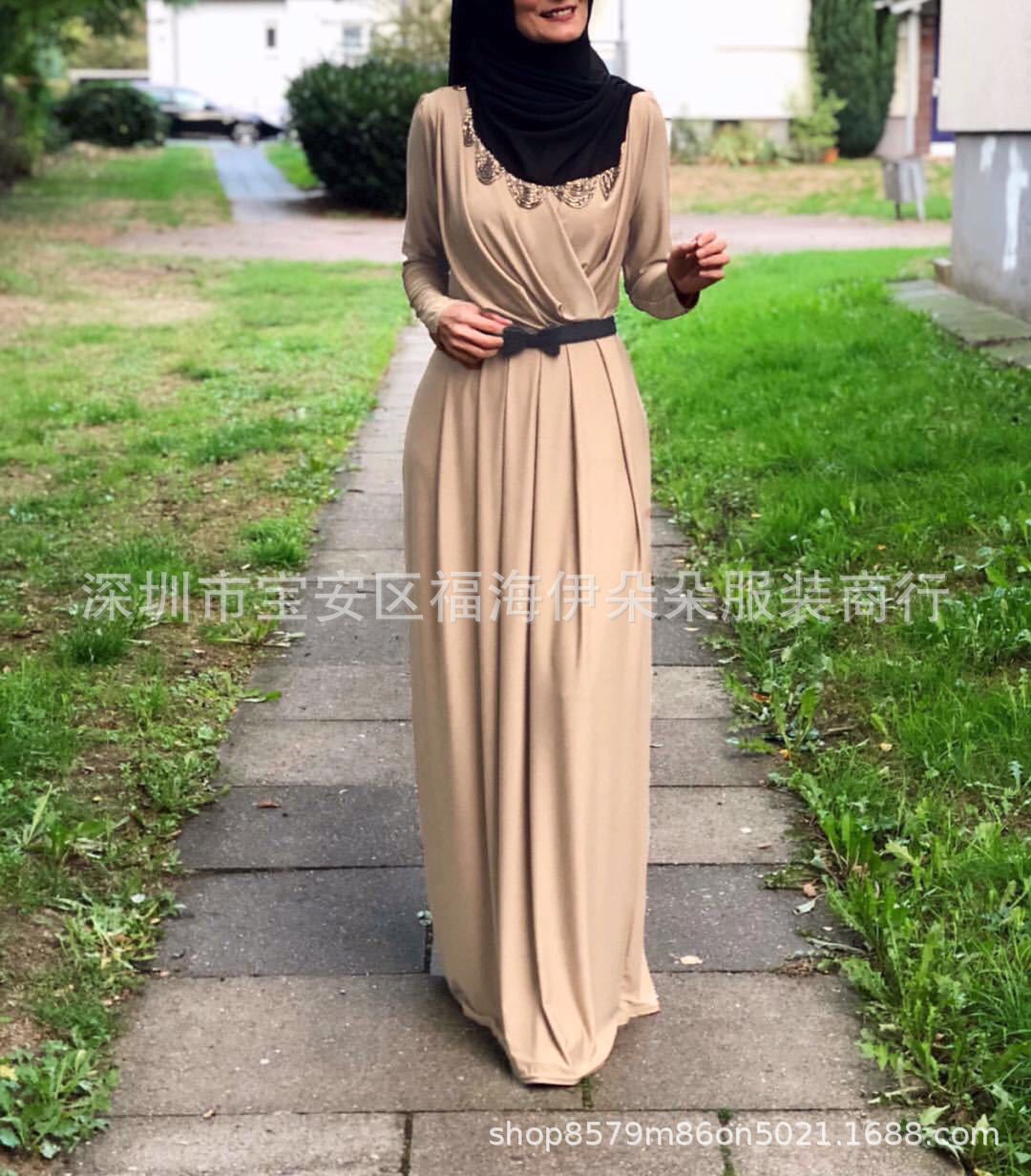 Yiduoduo Europeo y Americano Nuevo Vestido Bata Cuello en V Cordones Plisado Falda Larga hasta el Piso 19206 Ropa de Trabajo