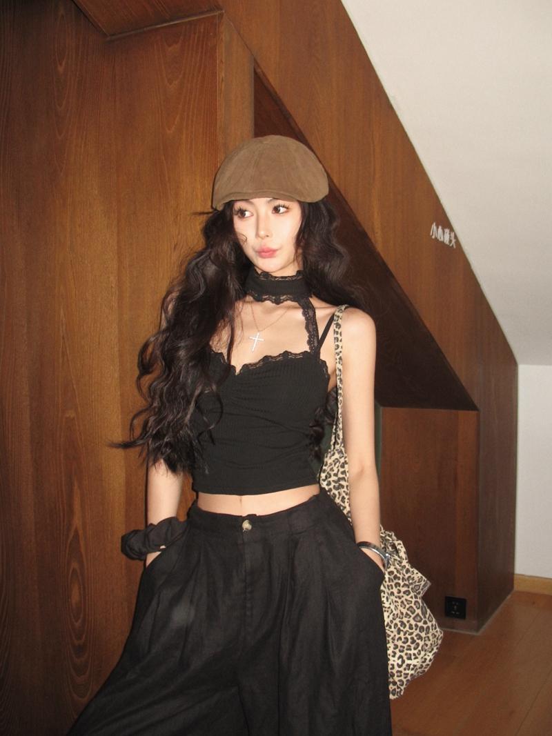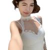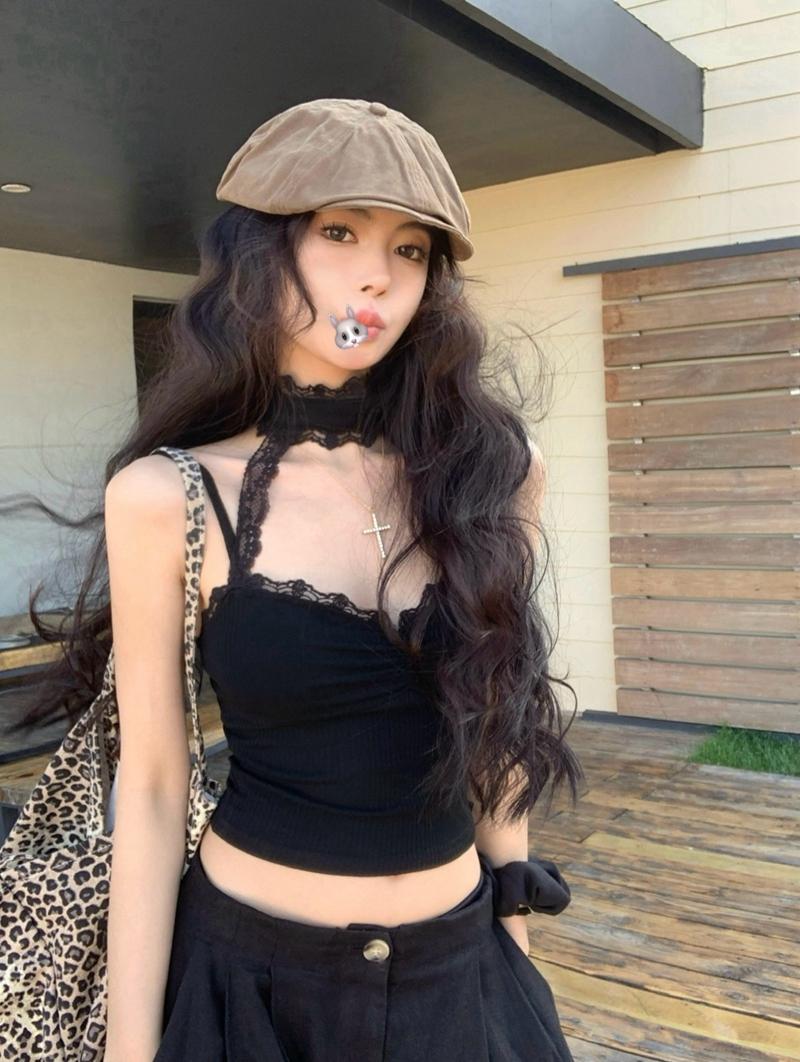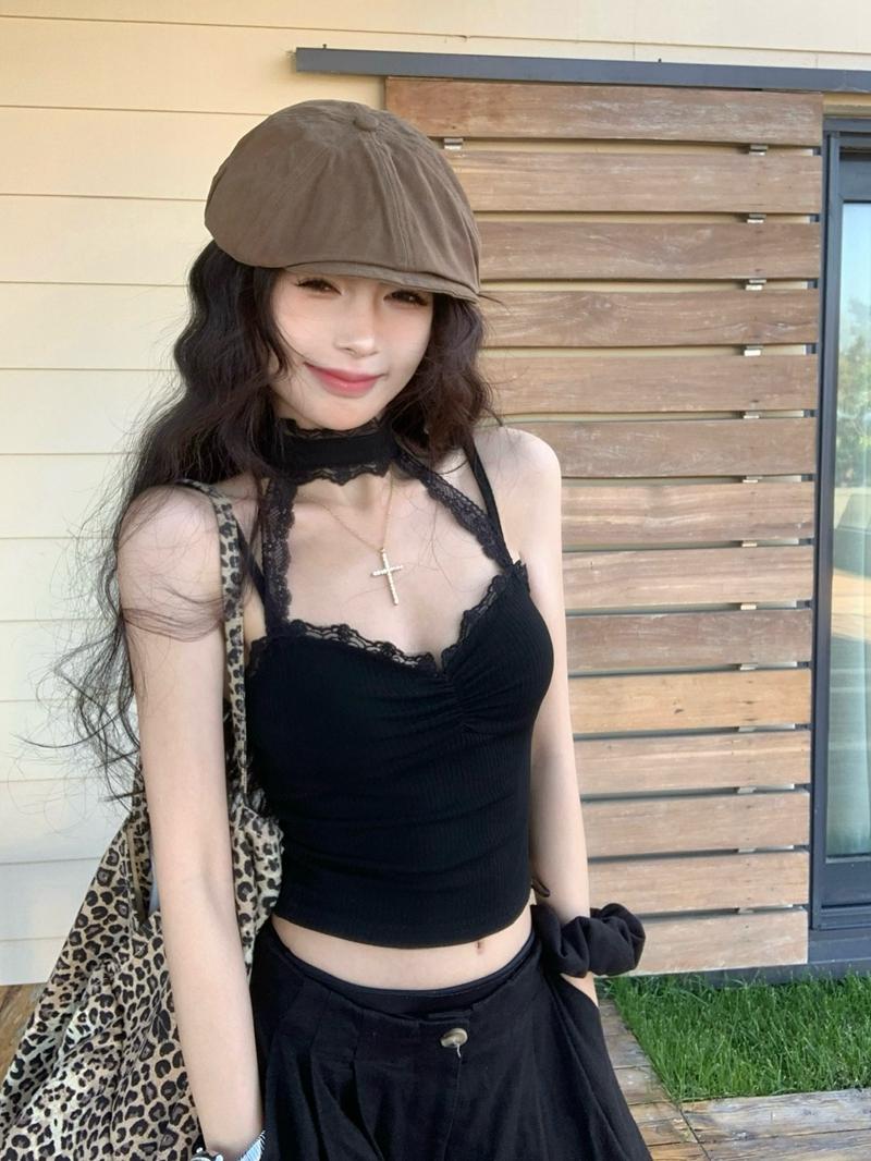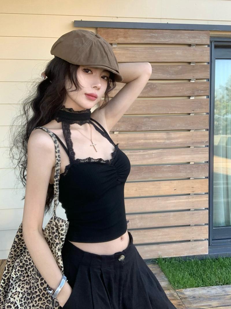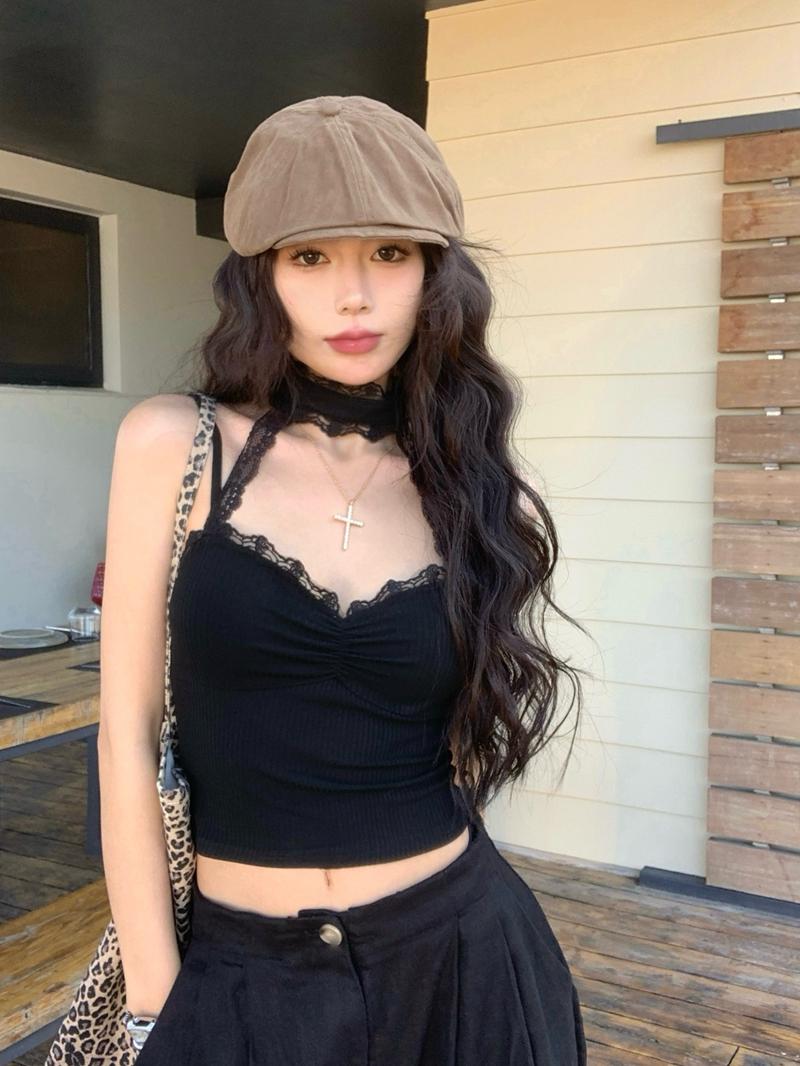 Camisola de cuello alto con tirantes finos para mujer, ropa interior de verano, top corto de encaje ajustado, estilo Spice Girl