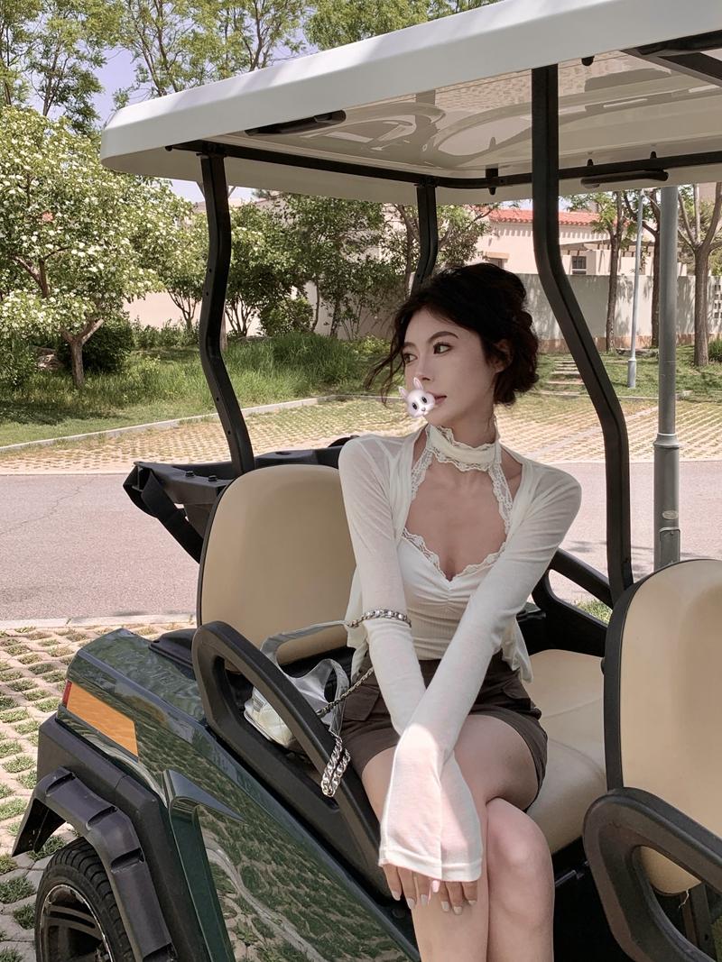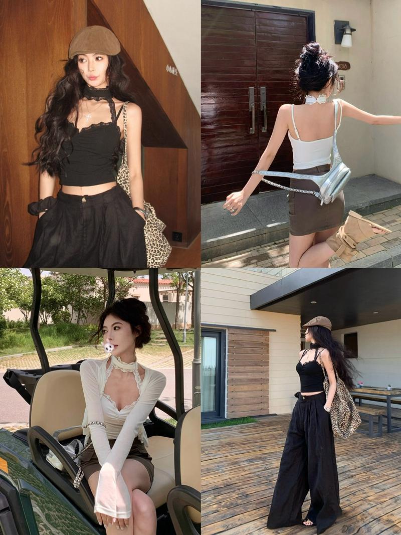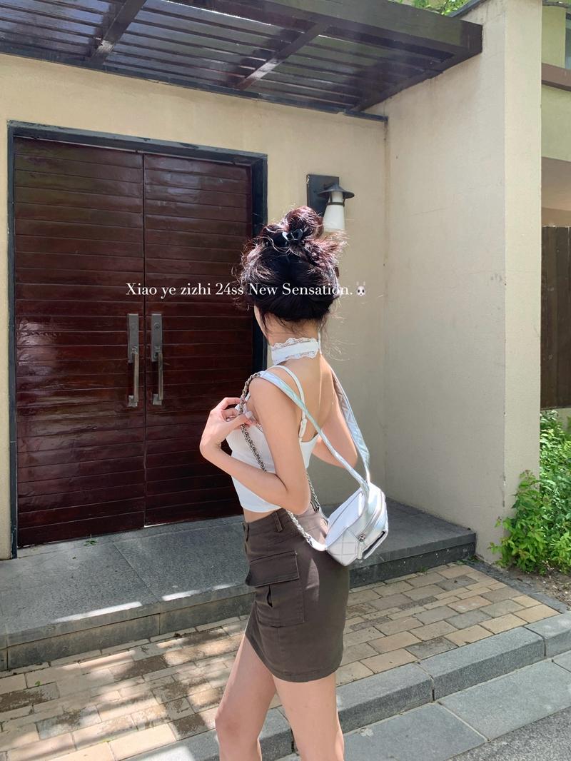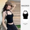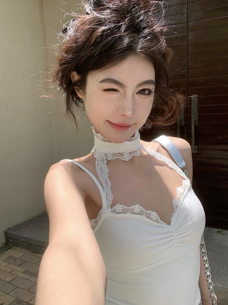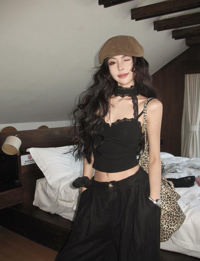 Camisola de cuello alto con tirantes finos para mujer, ropa interior de verano, top corto de encaje ajustado, estilo Spice Girl