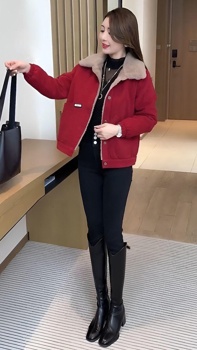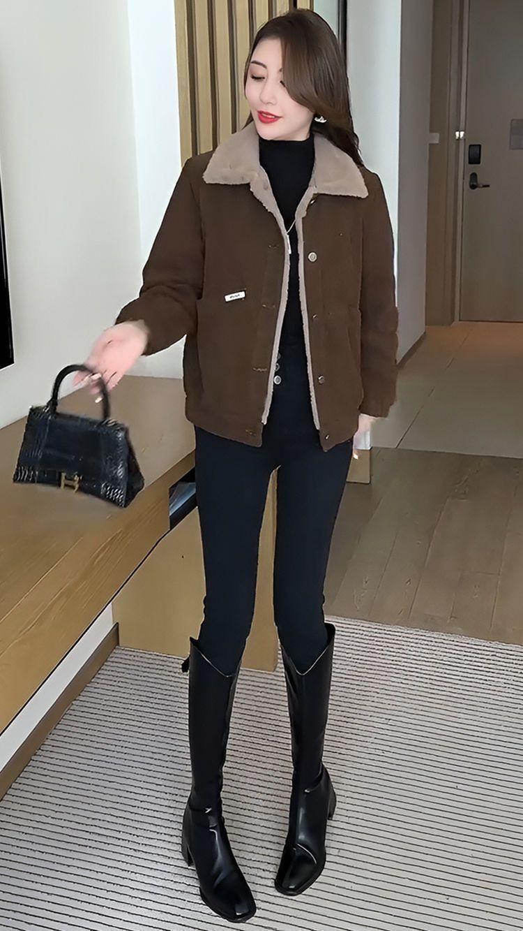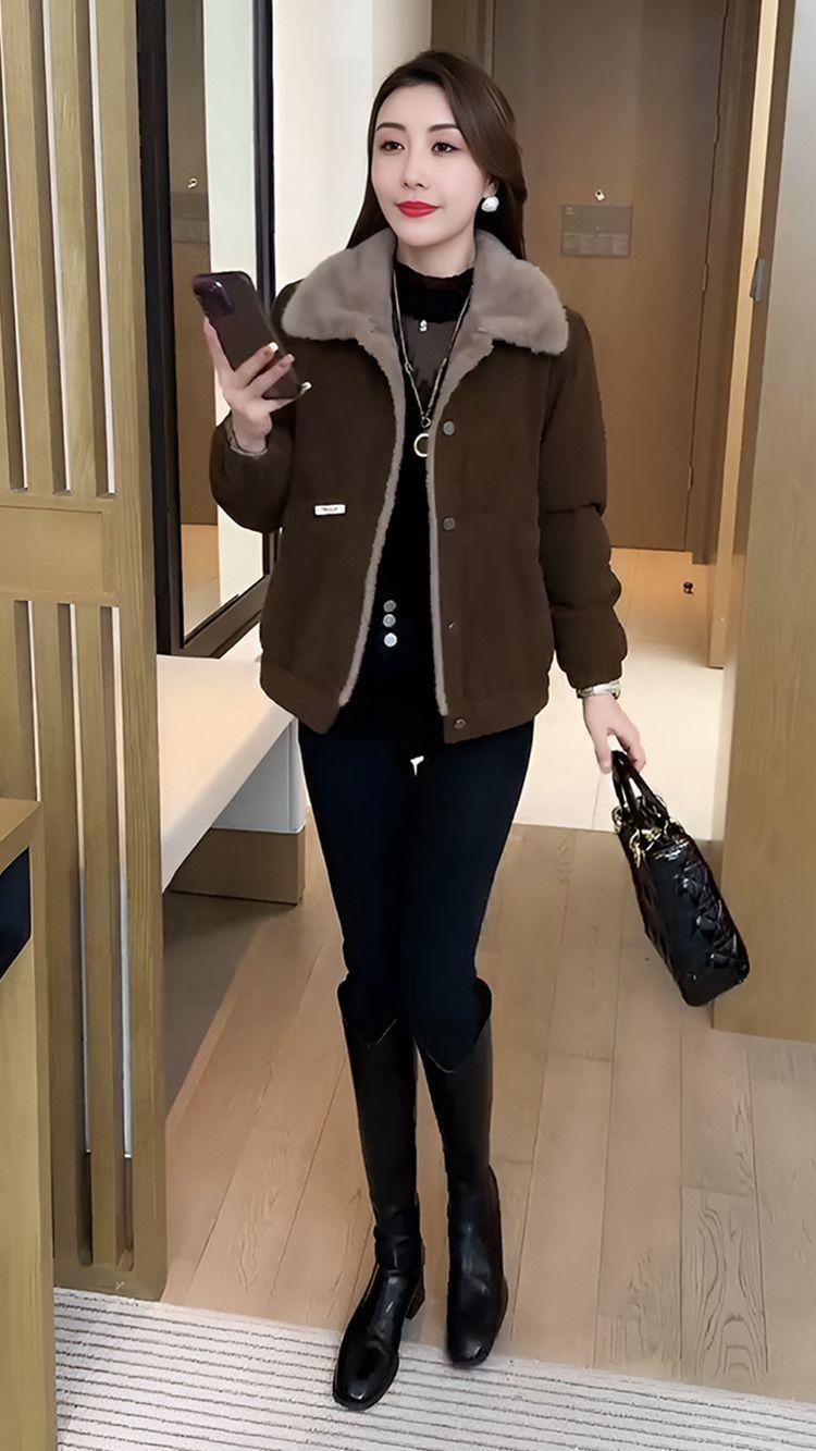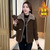 Chaqueta Corta de Terciopelo para Mujer Pequeña 2024 Invierno Nueva Moda Versátil Suelta Gruesa Cálida