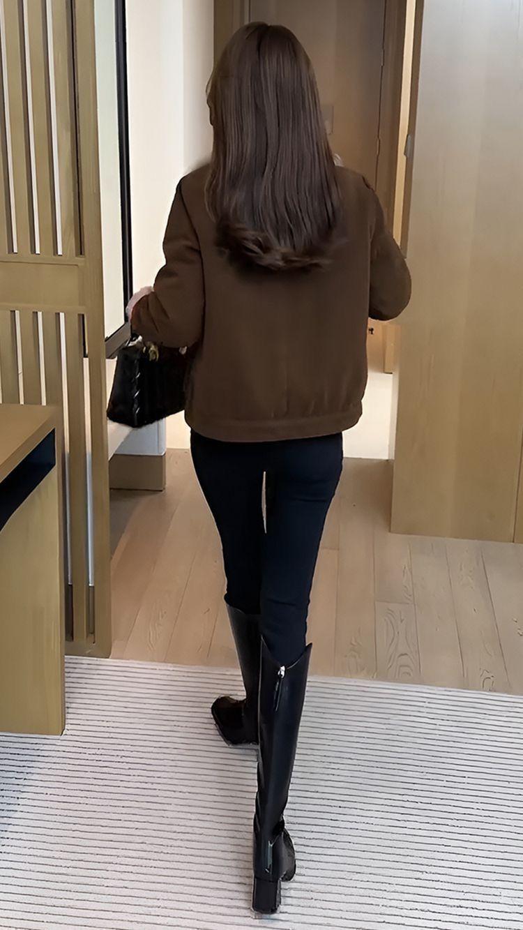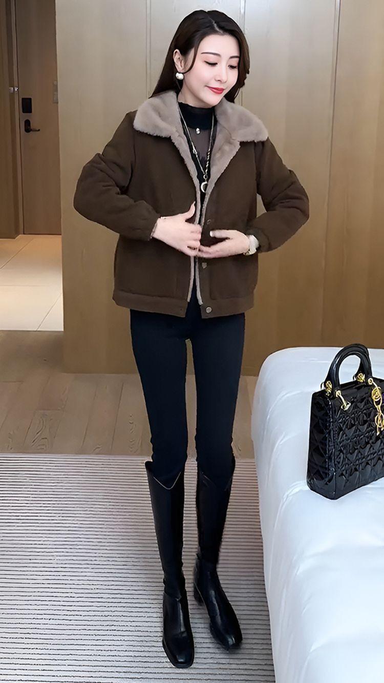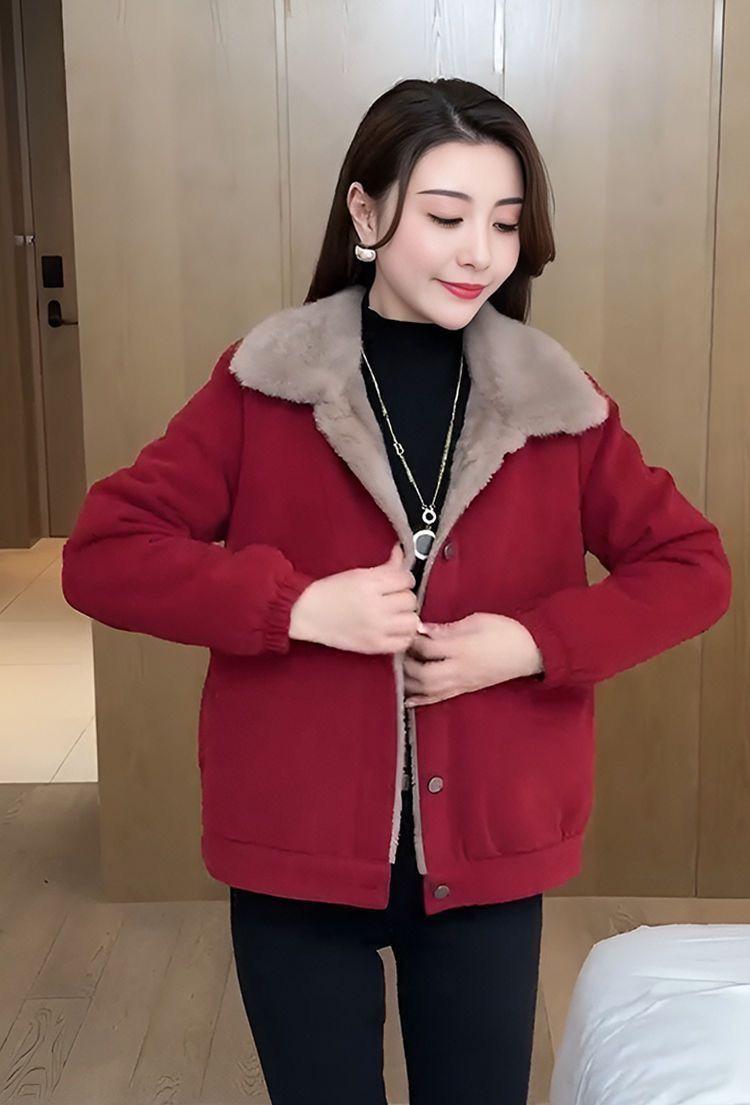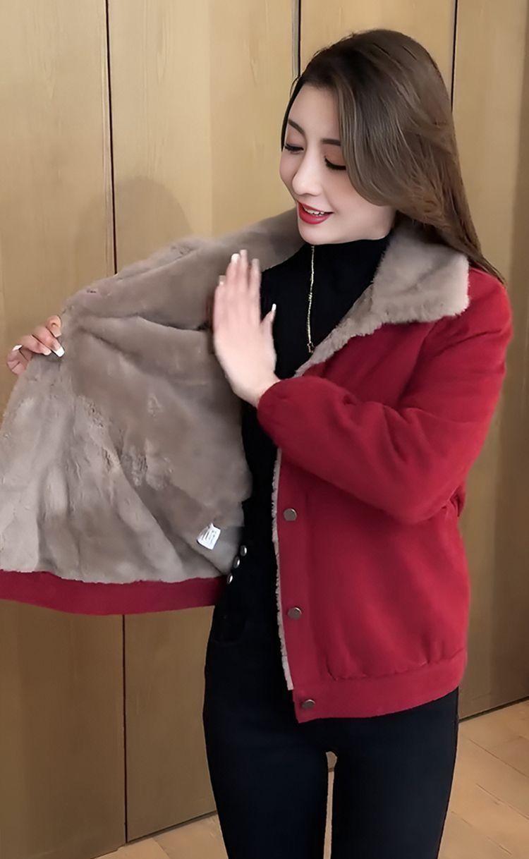 Chaqueta Corta de Terciopelo para Mujer Pequeña 2024 Invierno Nueva Moda Versátil Suelta Gruesa Cálida