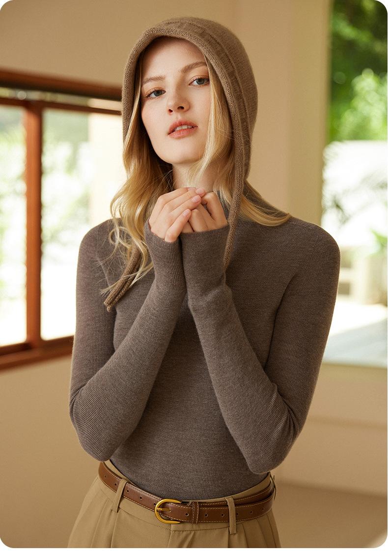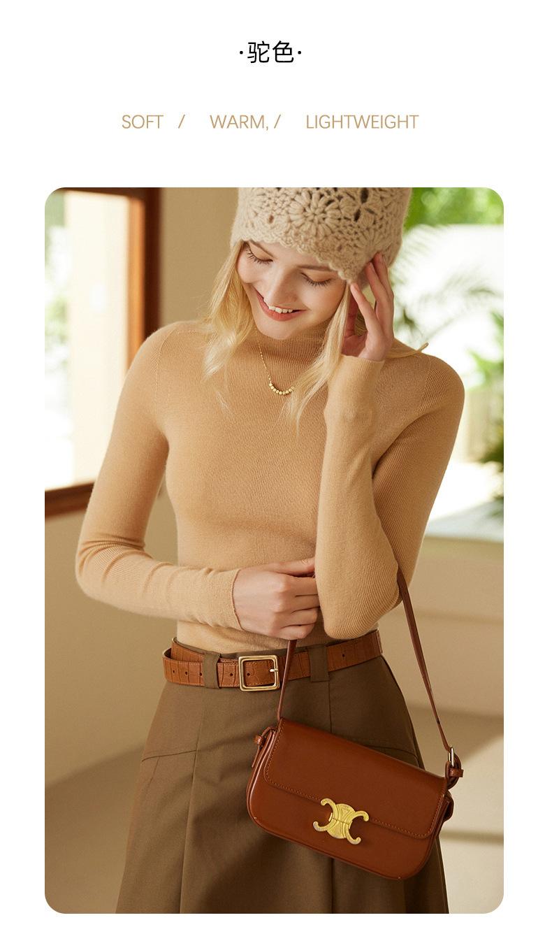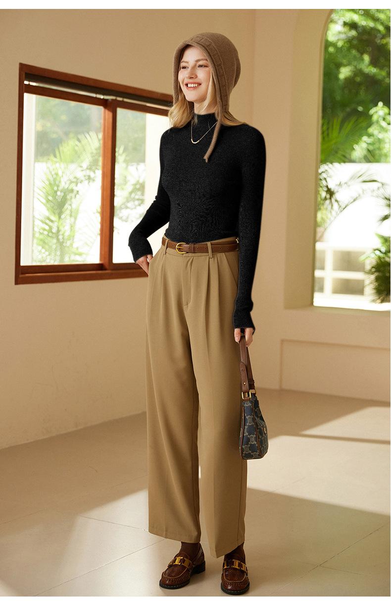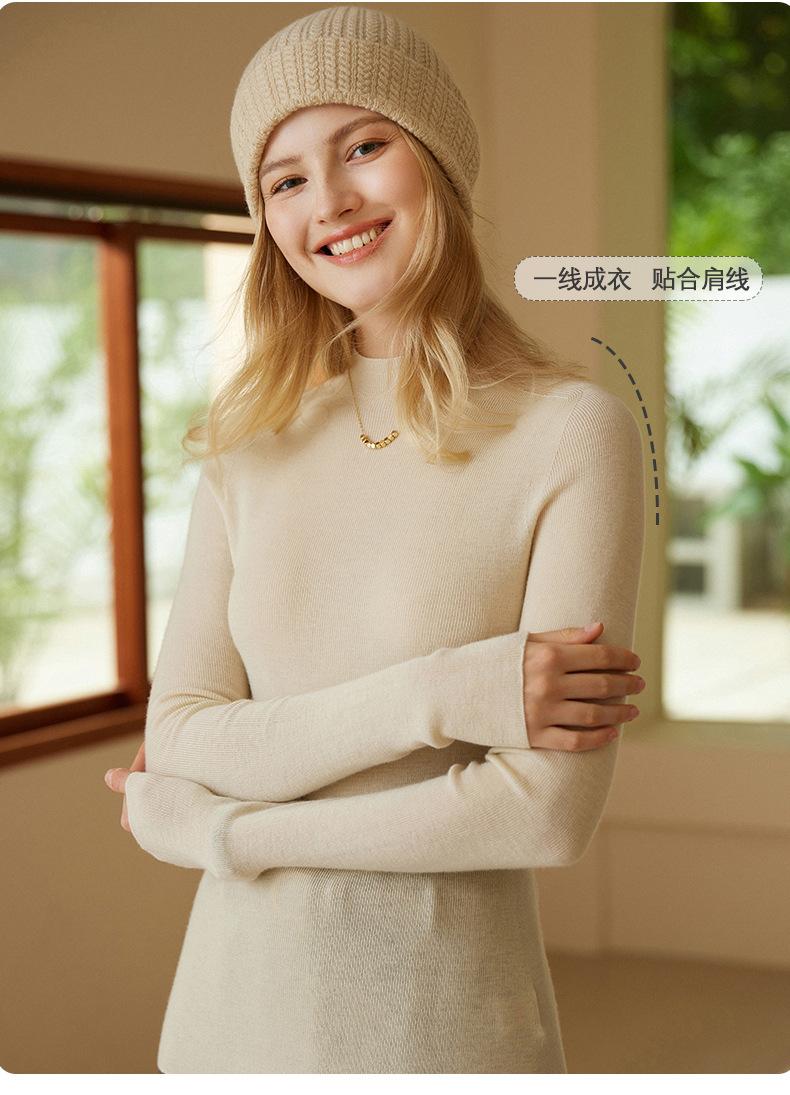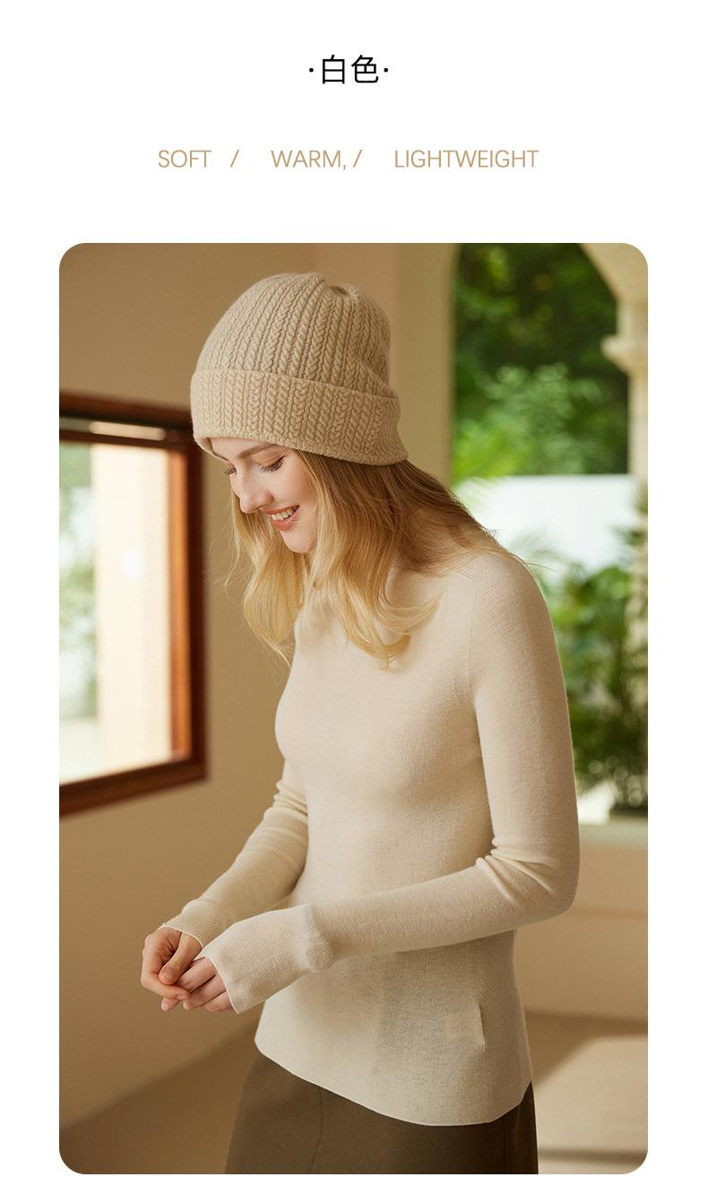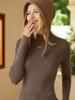 Suéter de Cachemira de Montaña Worsted 68 para Mujer de Cuello Alto Delgado Ropa Refinada de Primera Línea Tejido Ajustado Suéter Básico de Punto para Otoño e Invierno